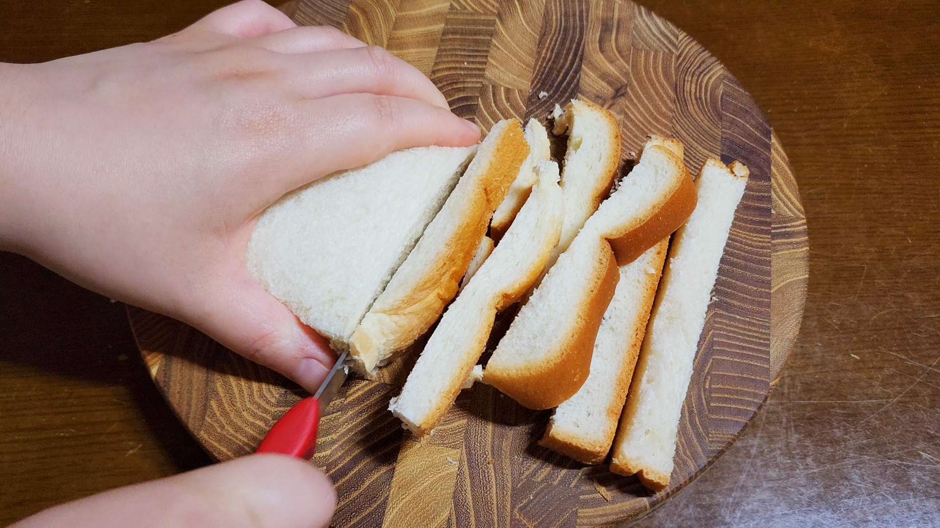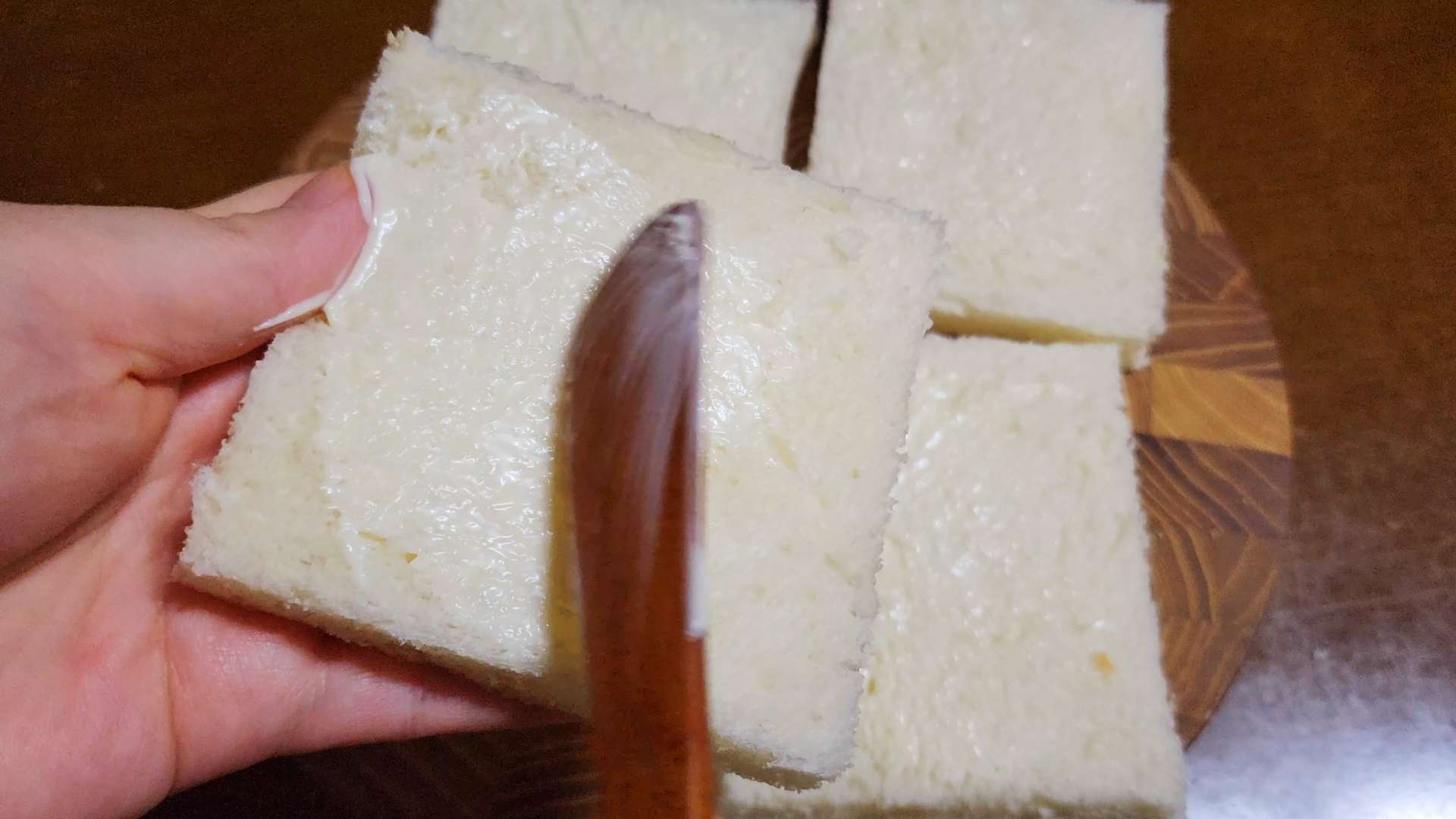 식빵 가장자리를 잘라줍니다.