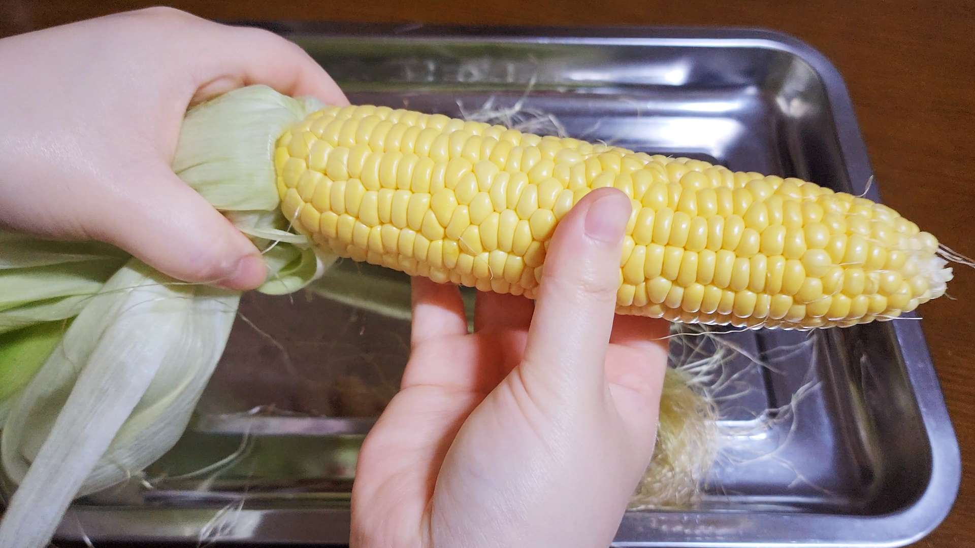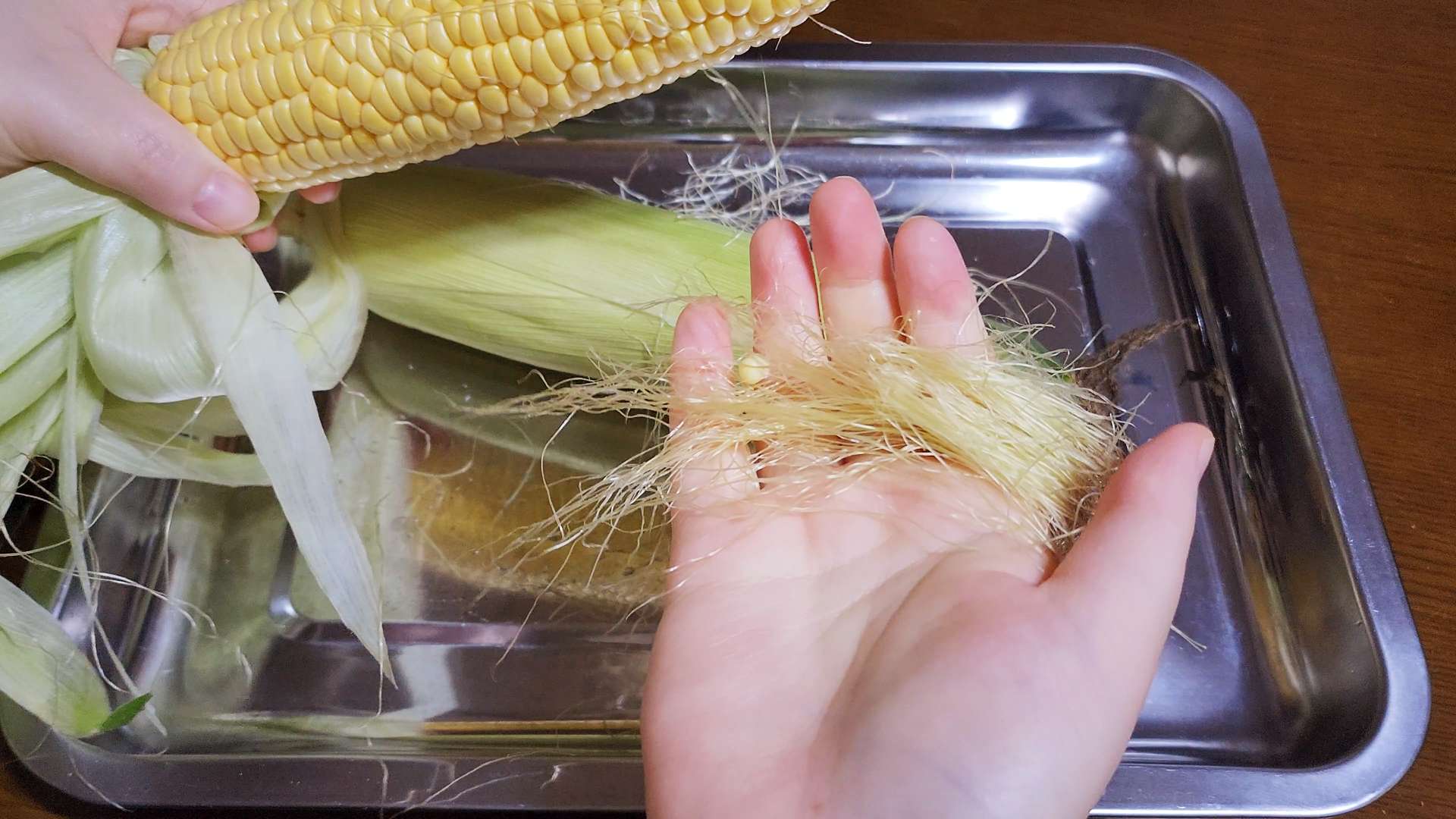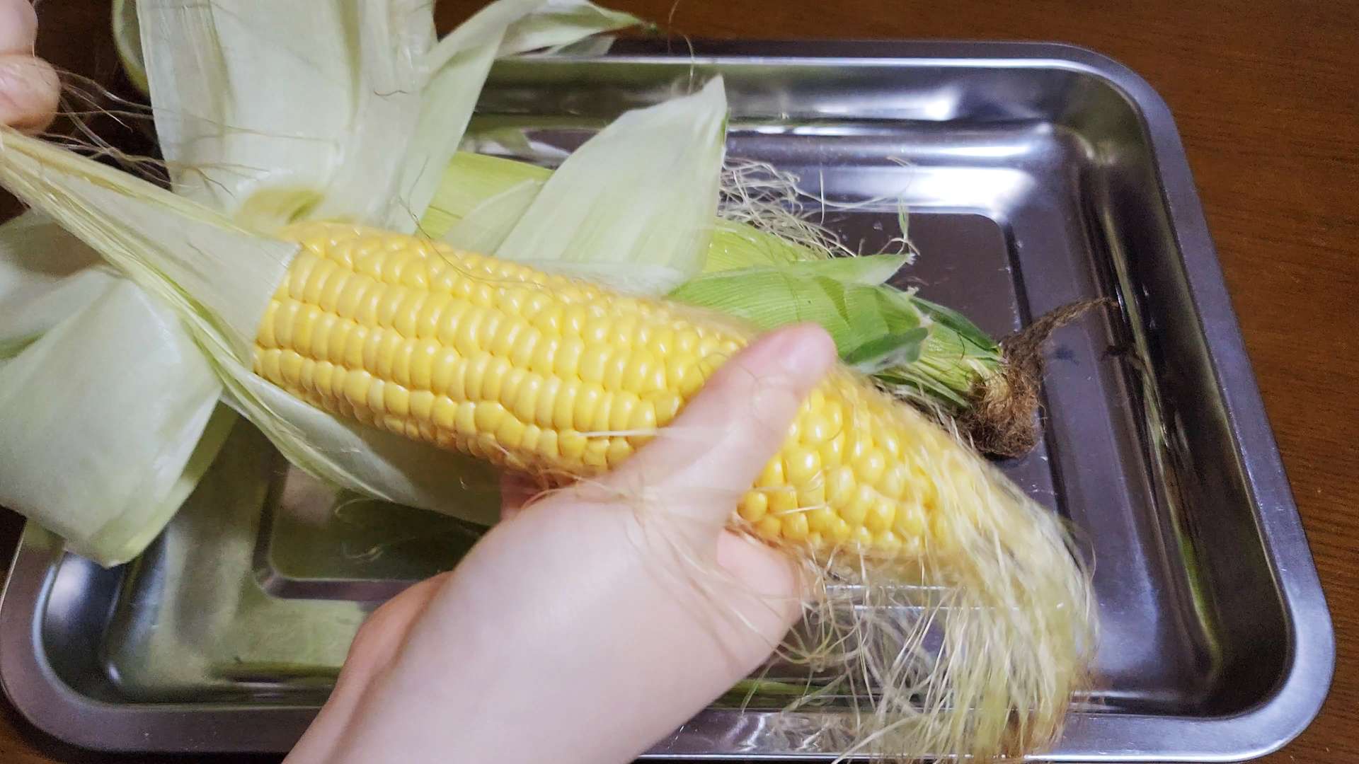 옥수수 수염은 제거해줍니다.