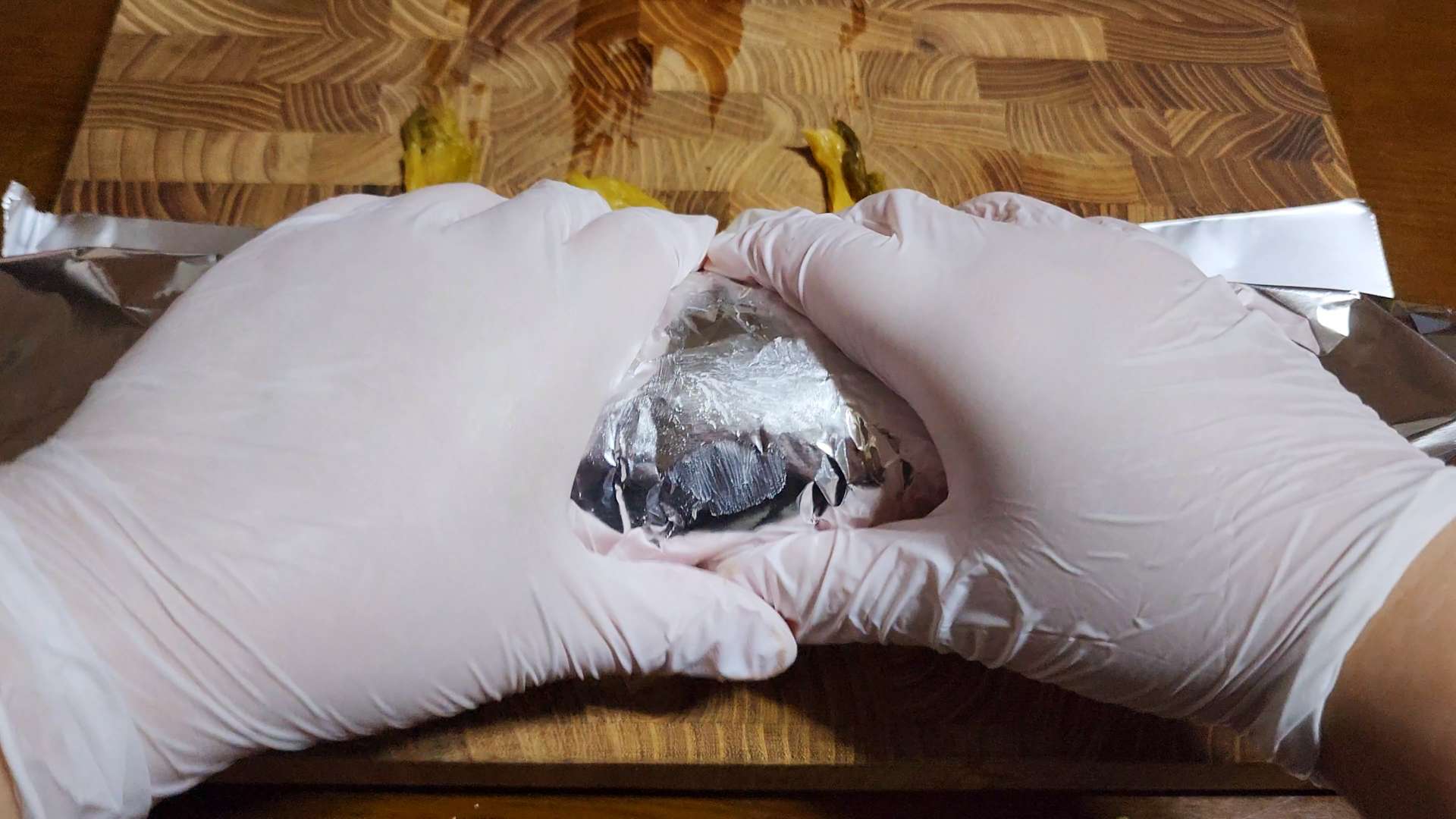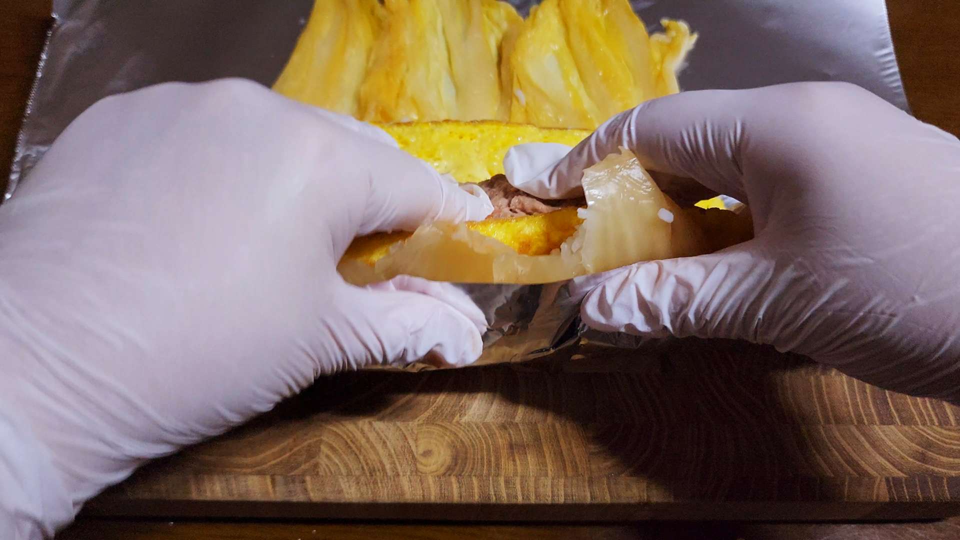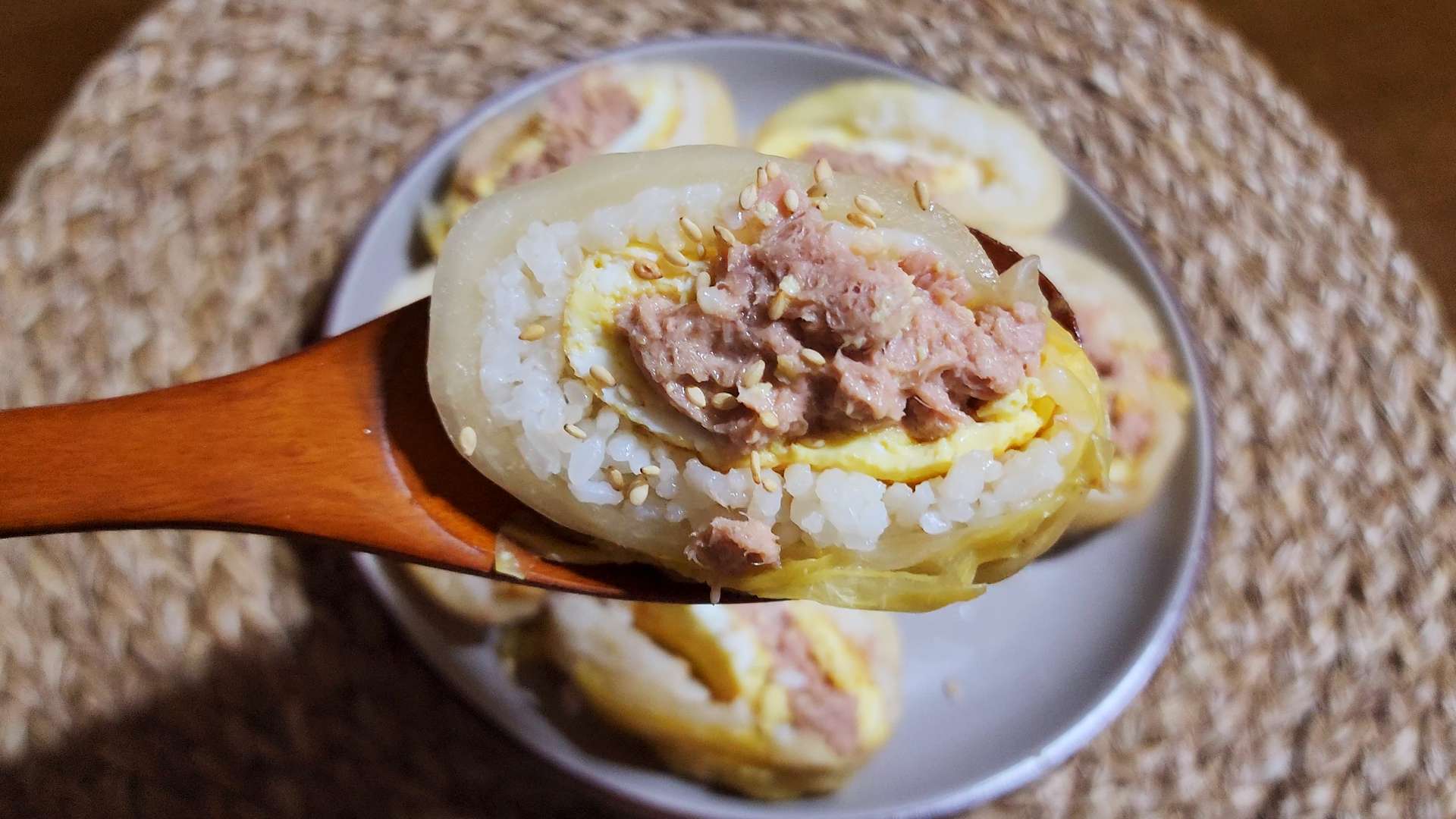 재료: 밥 180g, 참치 150g, 달걀 2개, 배추김치 3장, 마요네즈 1T, 케첩 1/2T, 쿠킹호일, 통깨