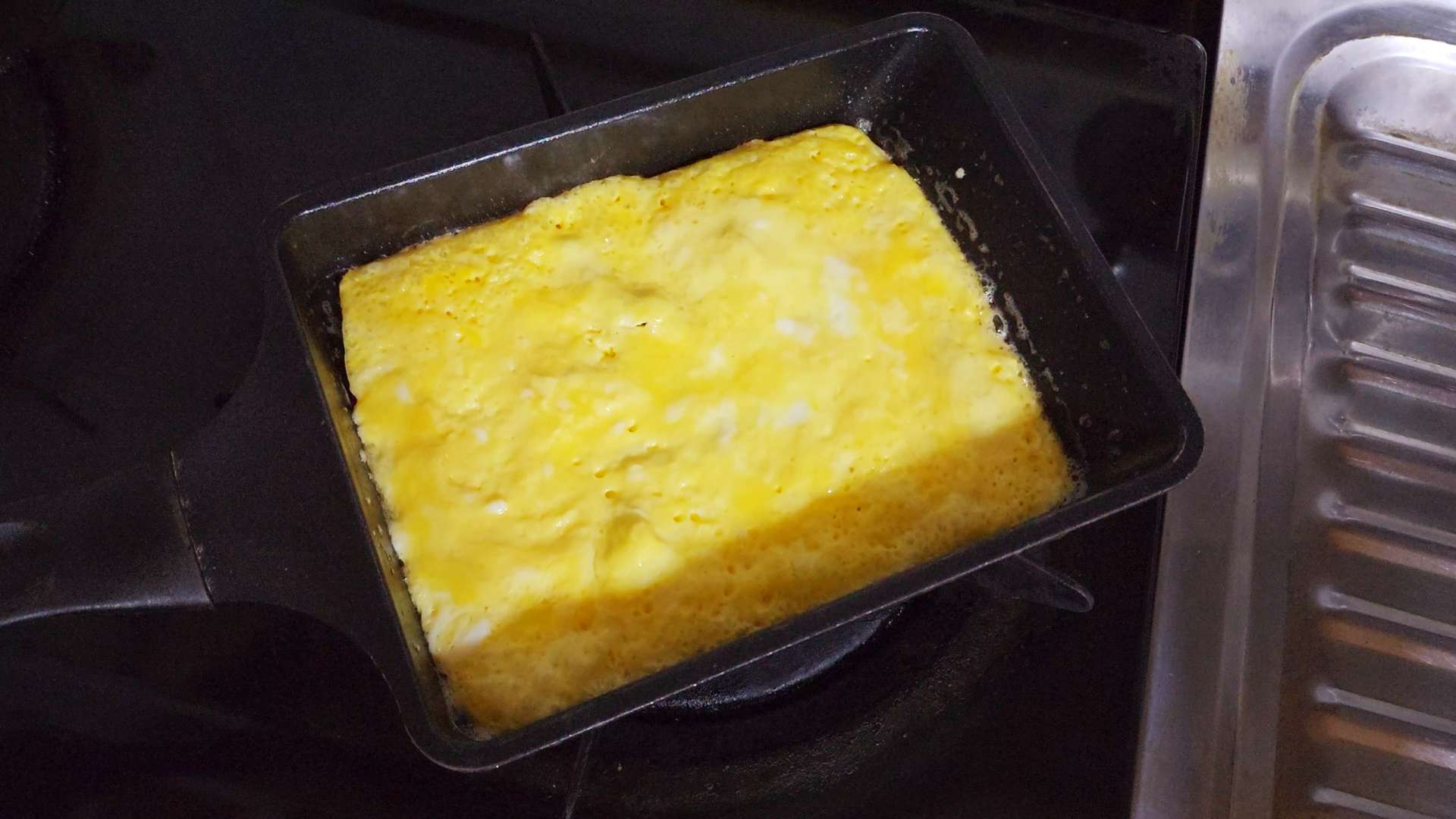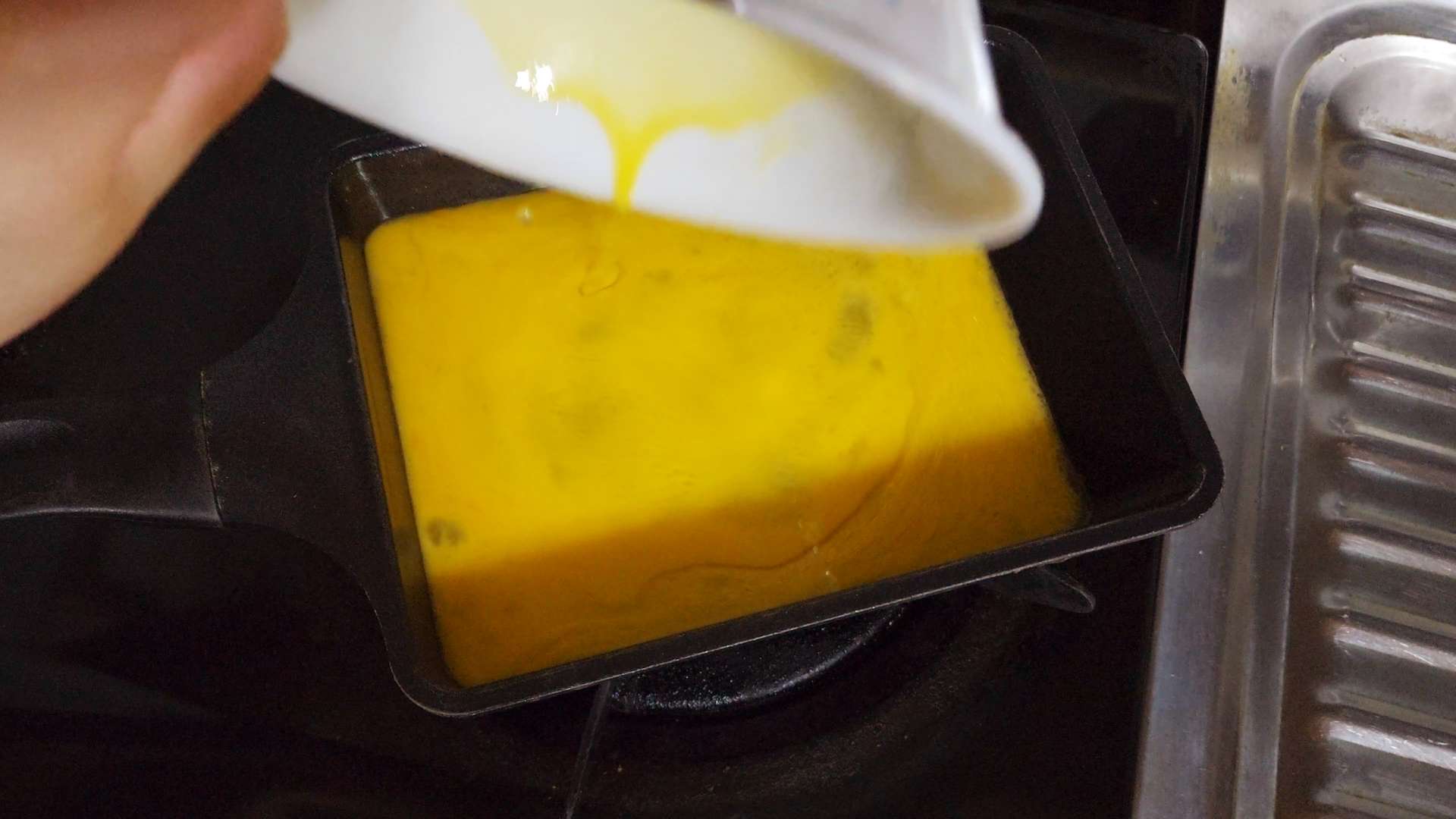 중불로 달군팬에 달걀물을 넣고 노릇하게 구워줍니다.