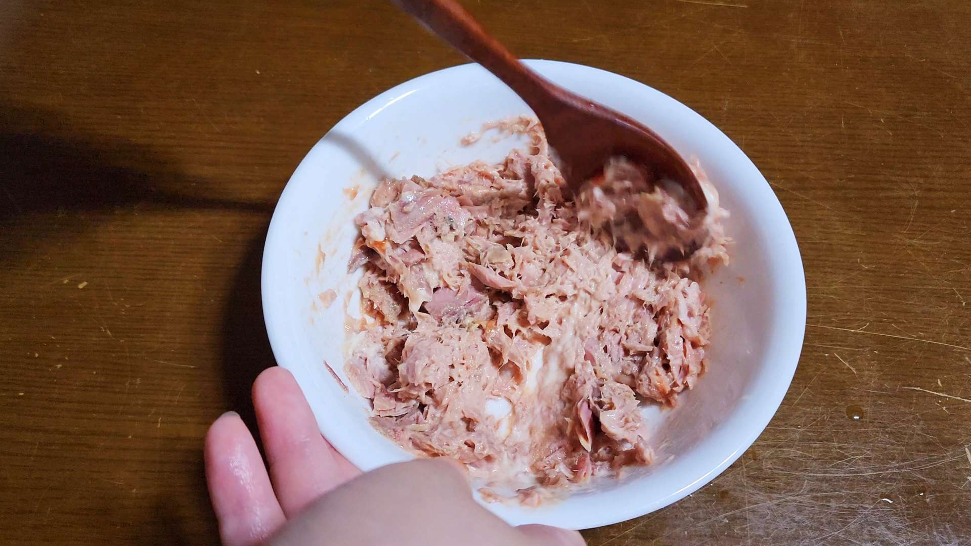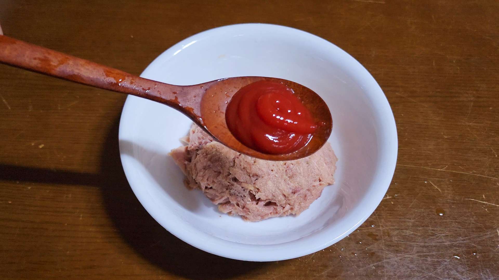 참치, 마요네즈 1T, 케첩 1/2T을 넣고 섞어줍니다.