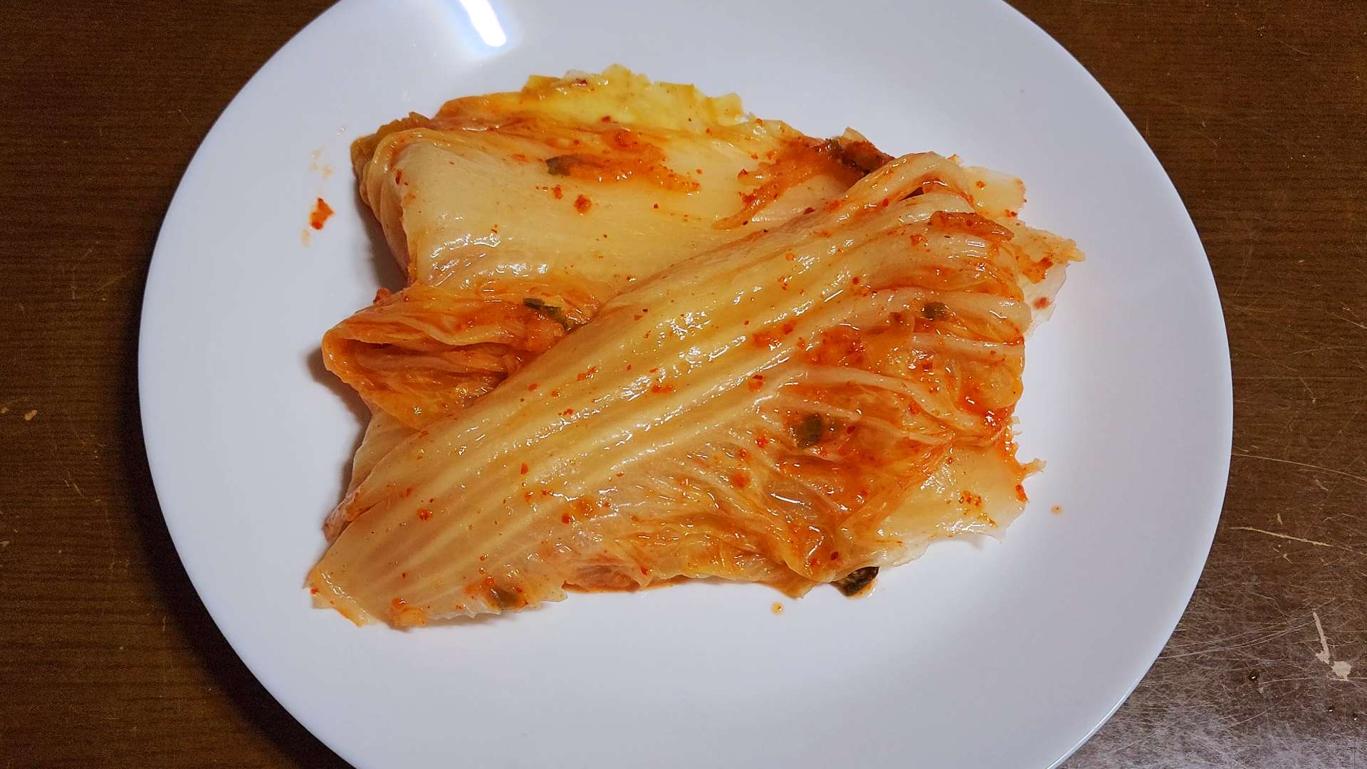배추김치 3장은 물에 깨끗하게 씻고 물기를 제거해줍니다.