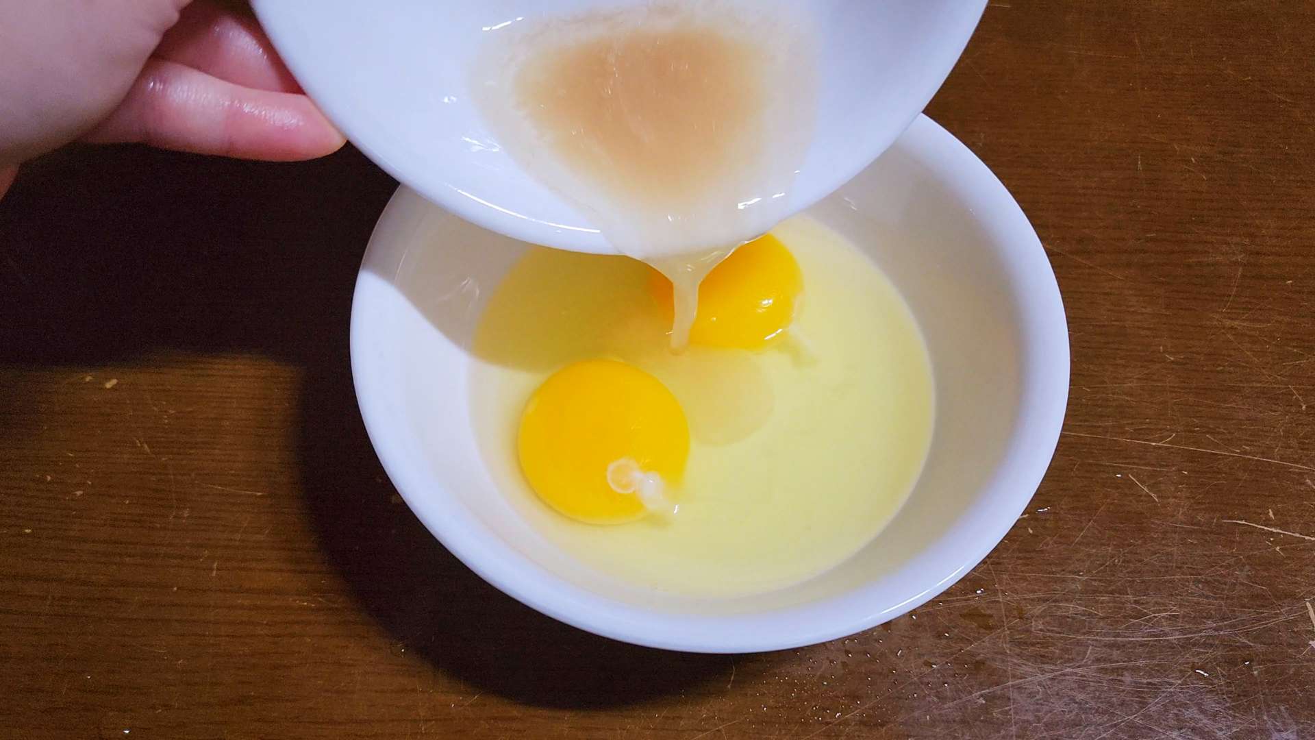 달걀2개, 참치 기름을 넣고 섞어줍니다.