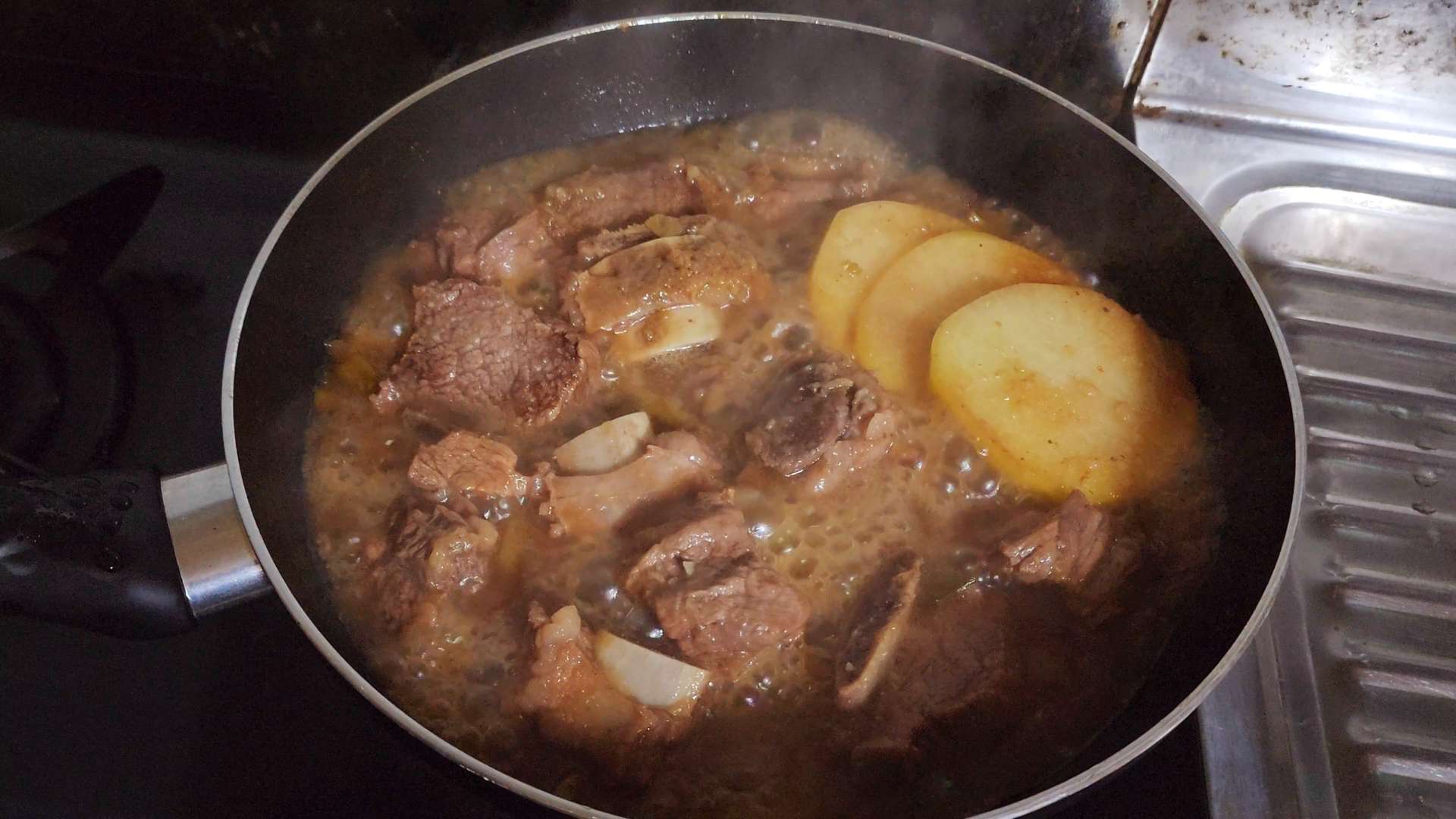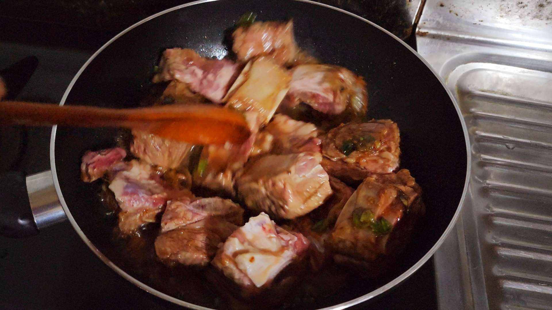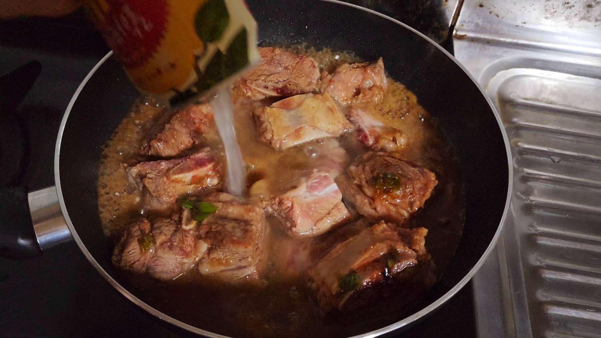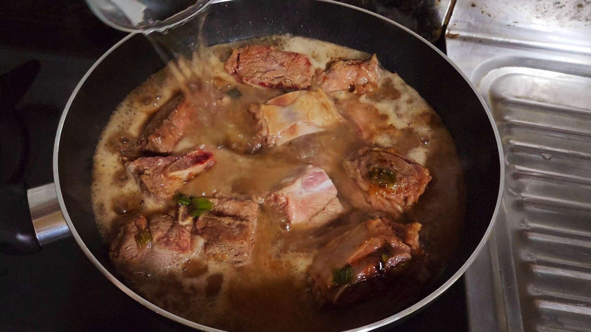 간장이 바글바글 끓으면 소갈비를 넣고 핏기가 사라질 때까지 졸여줍니다.
