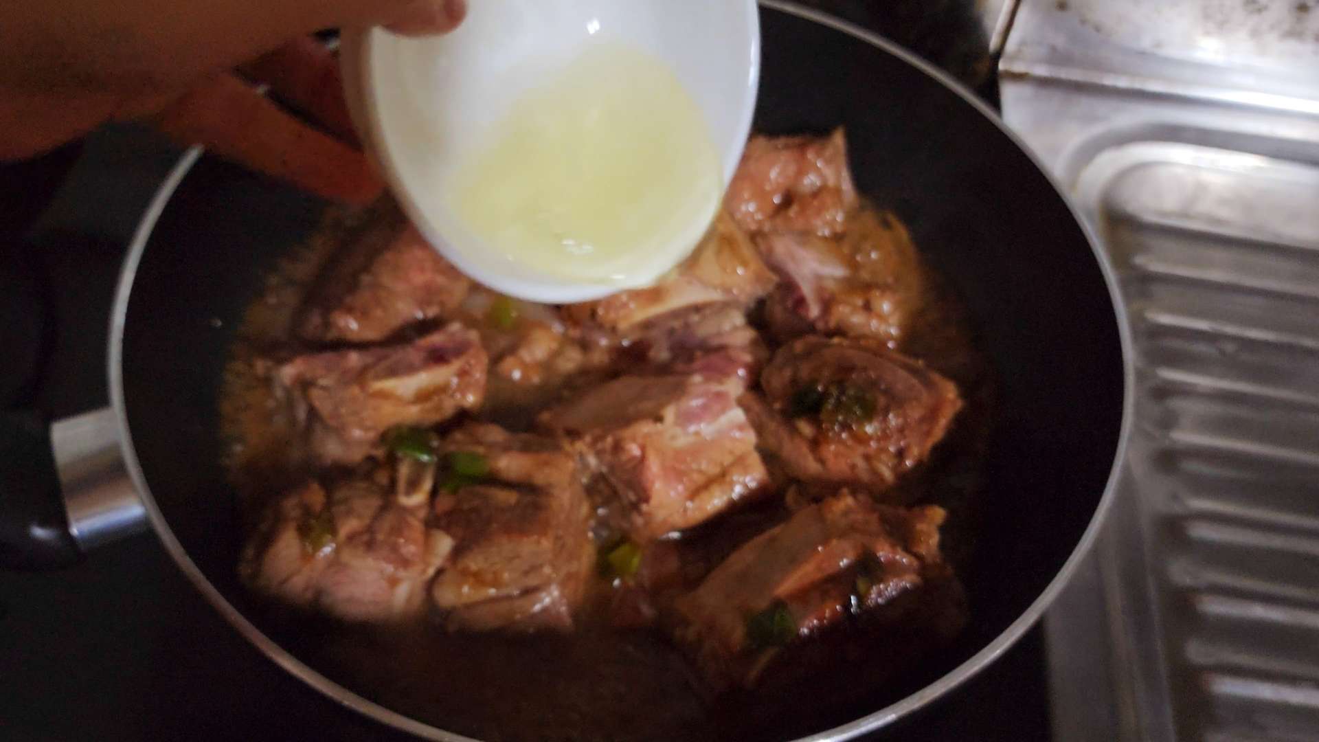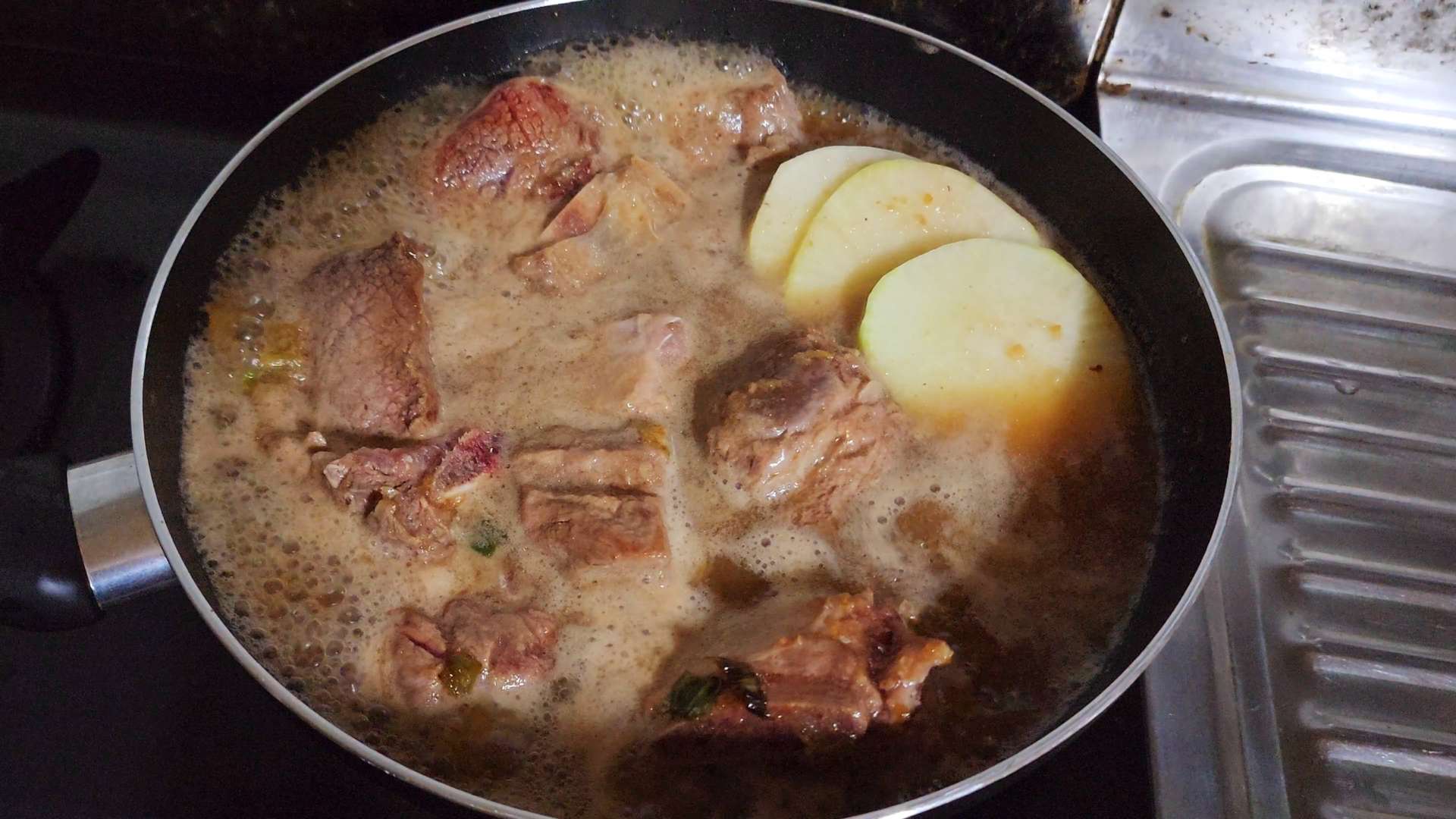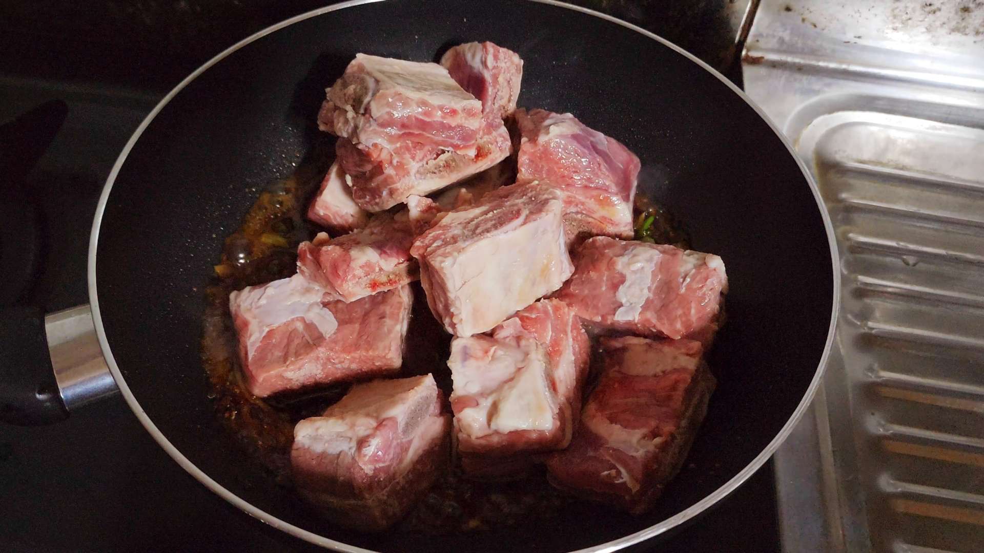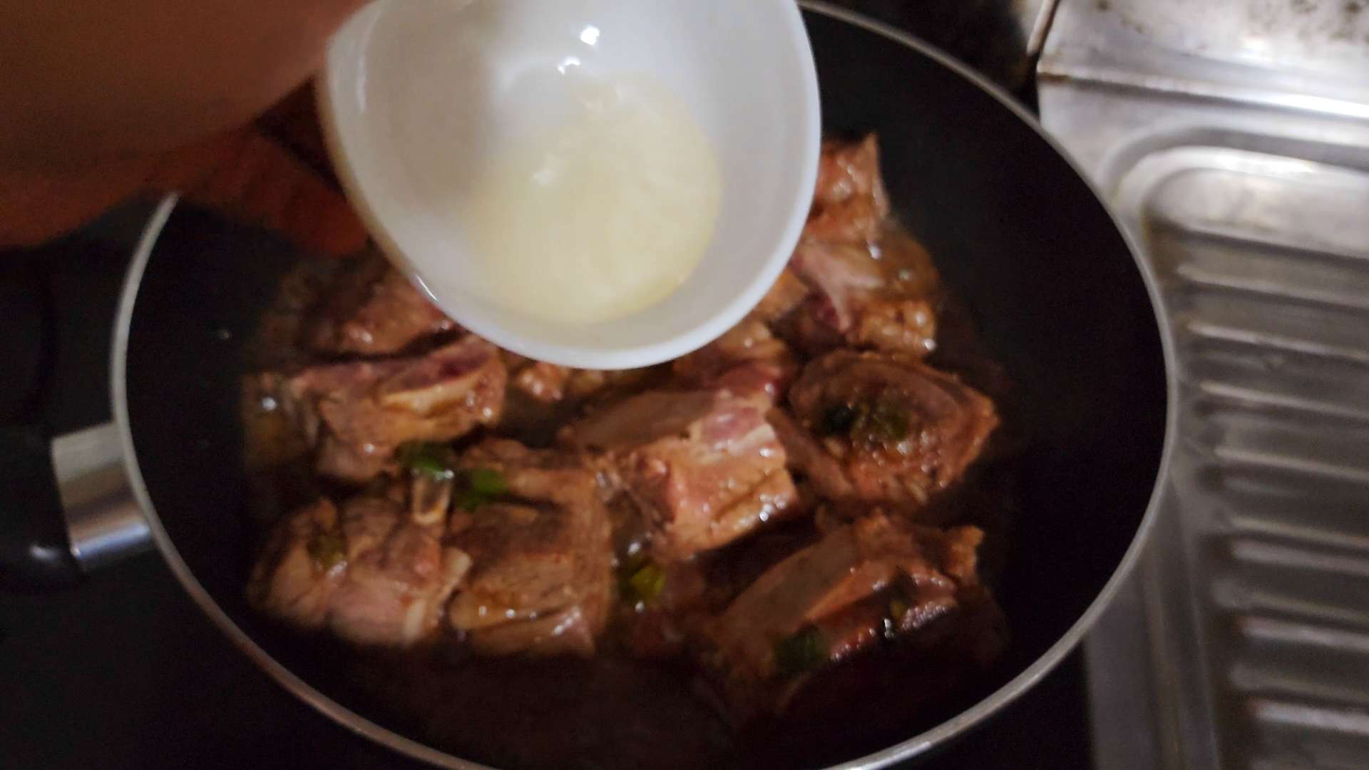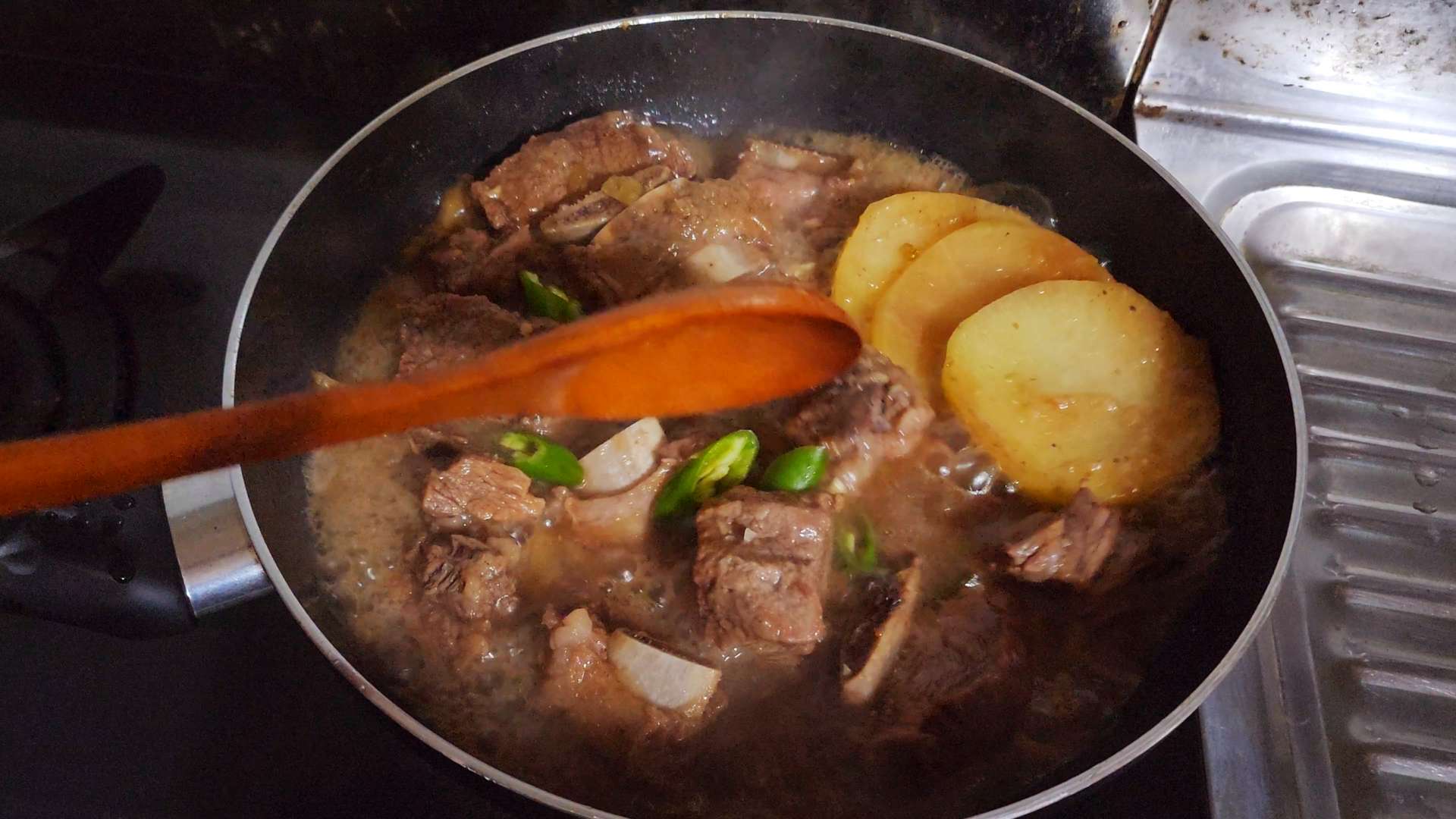 간장이 바글바글 끓으면 소갈비를 넣고 핏기가 사라질 때까지 졸여줍니다.