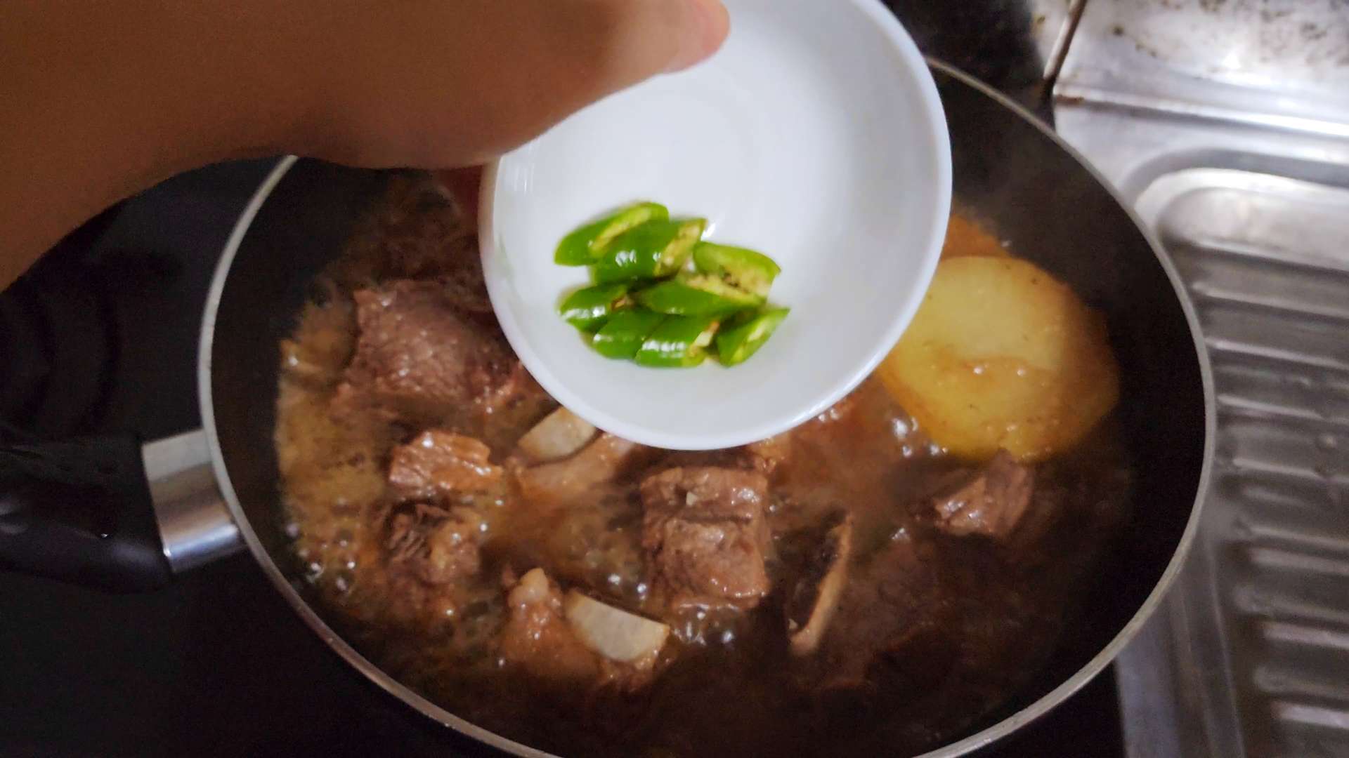 그릇에 갈비찜을 담고 홍고추를 올려줍니다.