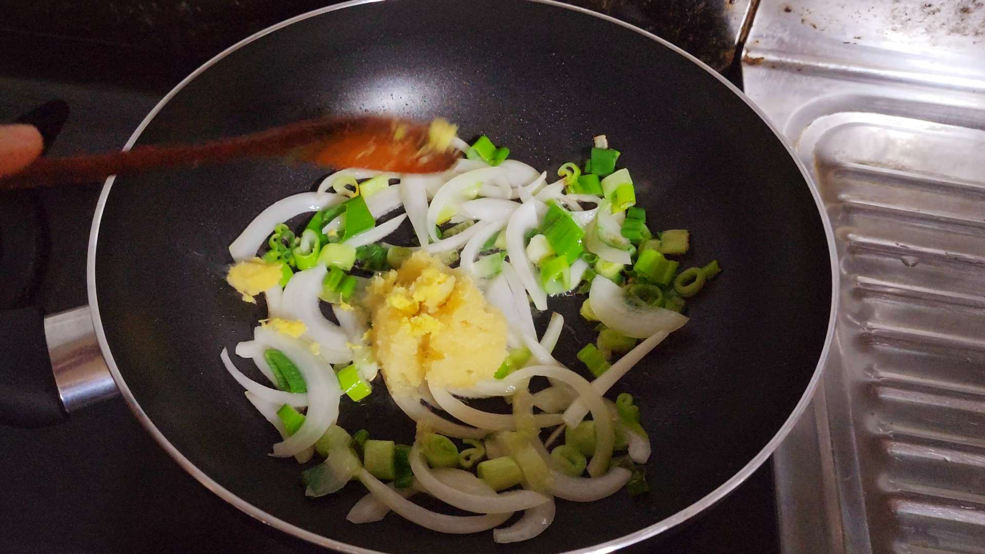 다진마늘 2T, 다진생강 1/2T를 넣고 볶아줍니다.