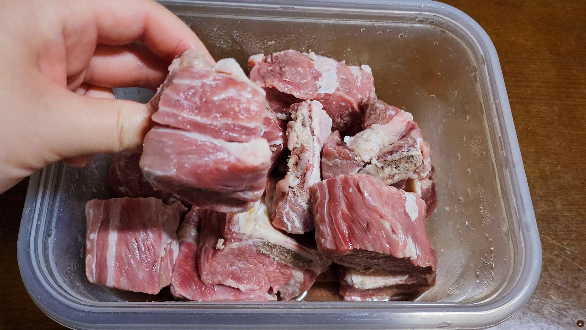 소갈비는 찬물에 2시간 동안 담가 핏물을 빼줍니다.