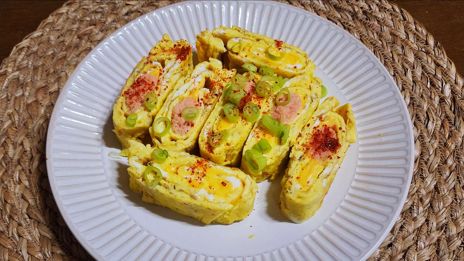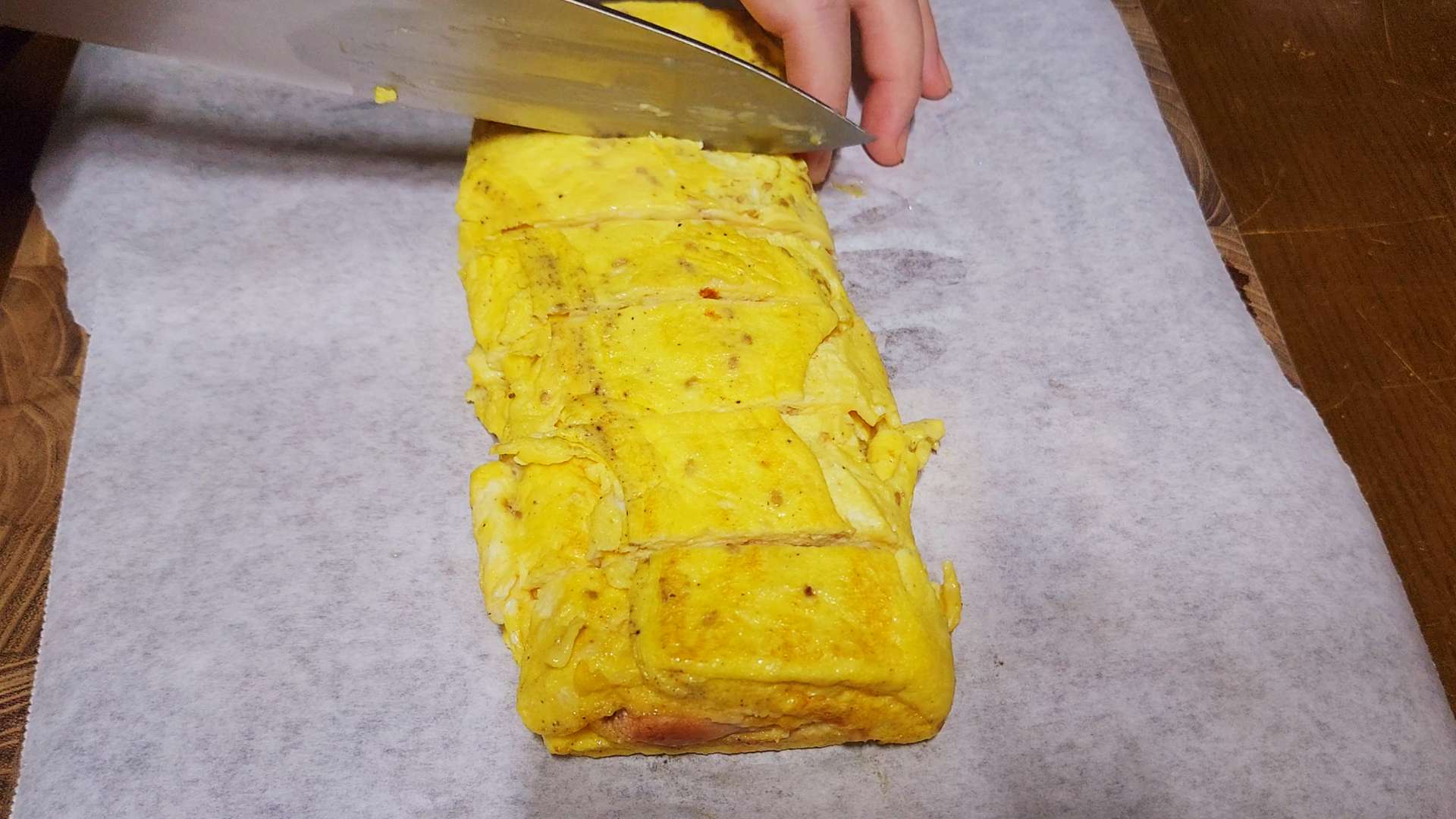 달걀말이는 먹기 좋은 크기로 잘라줍니다.