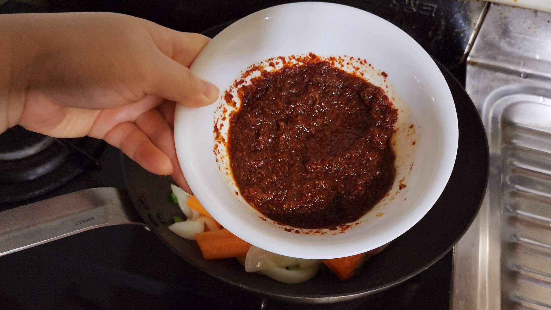 매콤달콤 양념과 쫄깃한 오징어를 밥 위에 올려