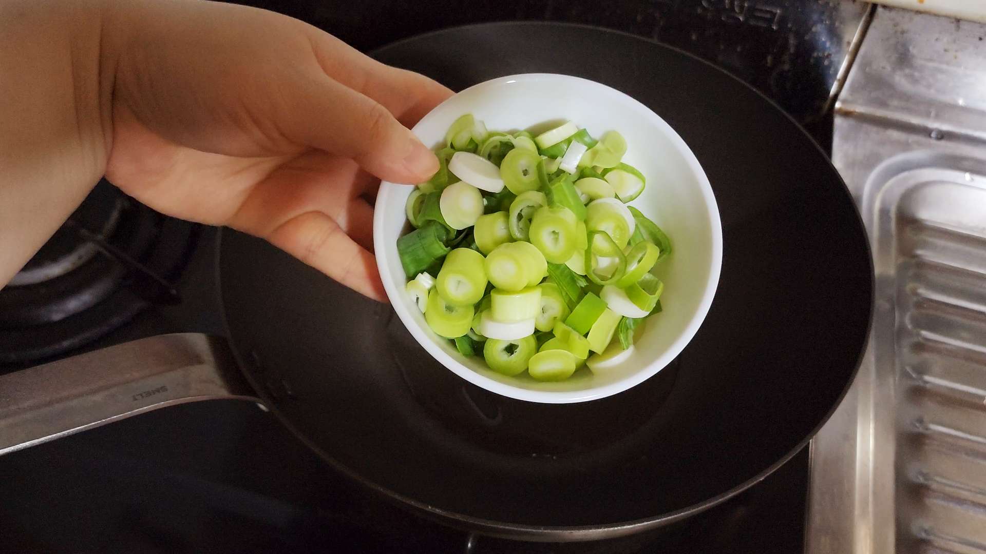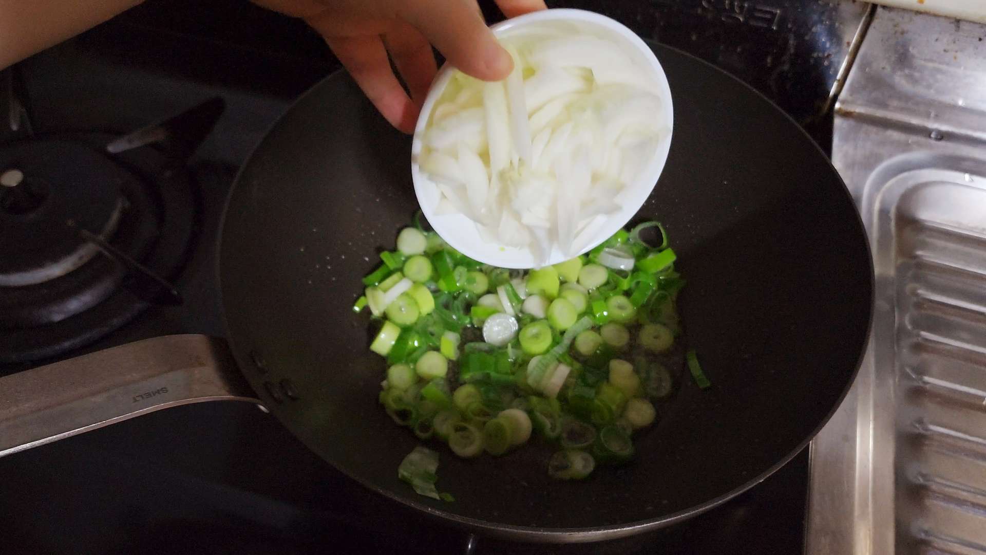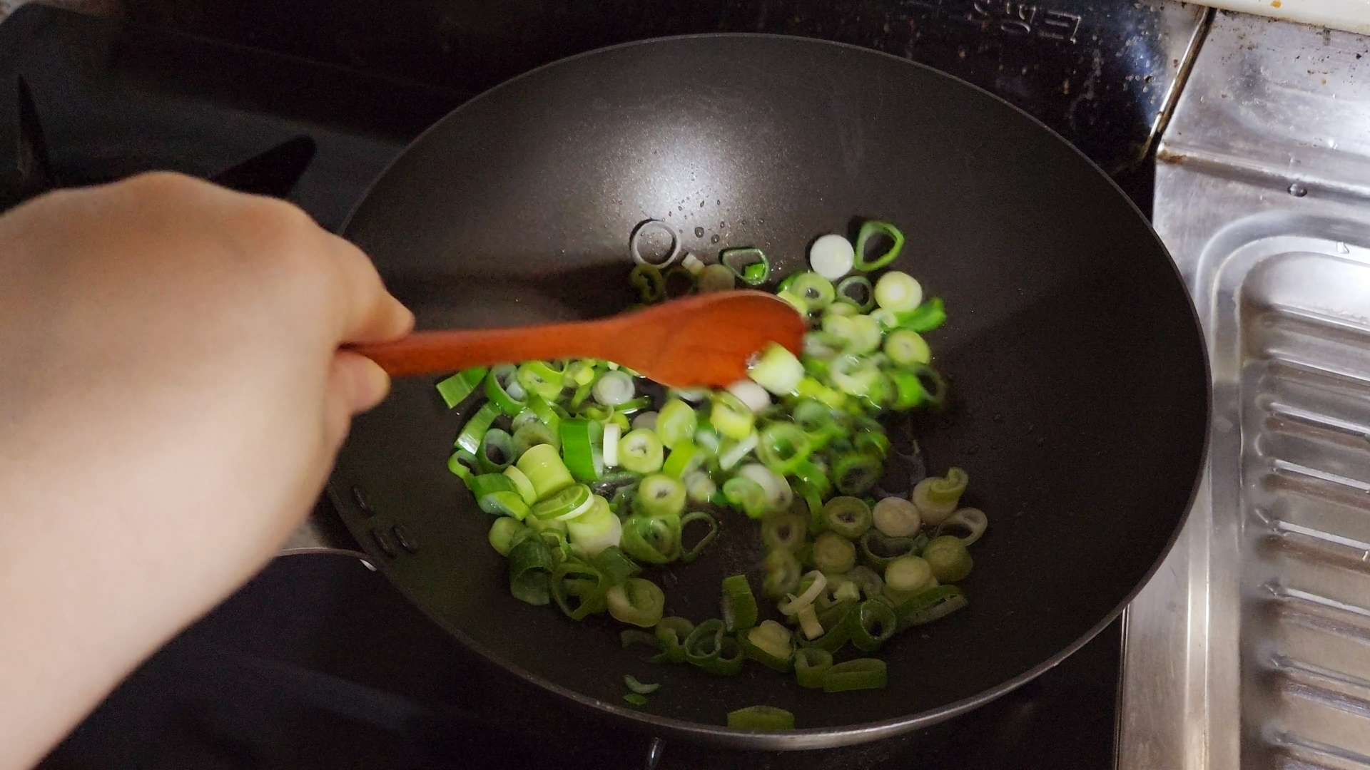 달군팬에 식용유를 넉넉히 두르고 대파를 넣어