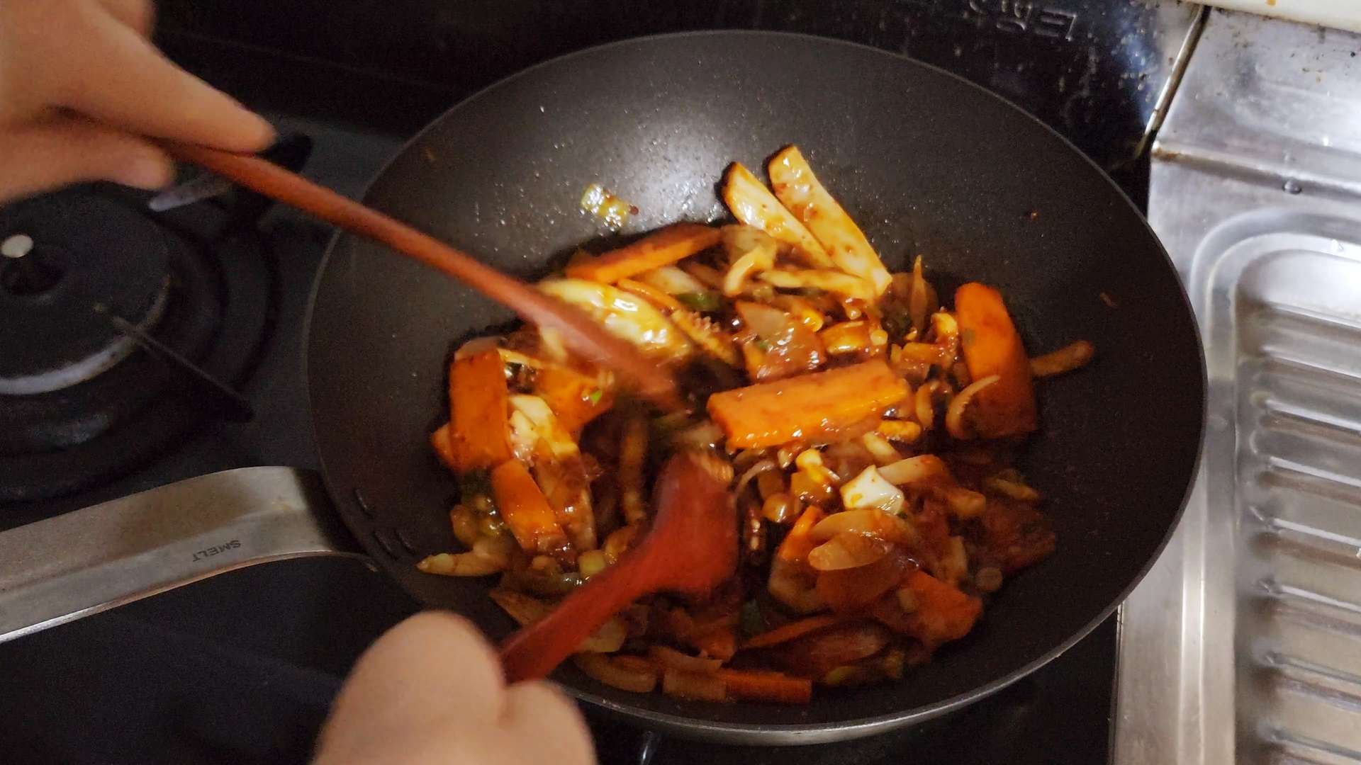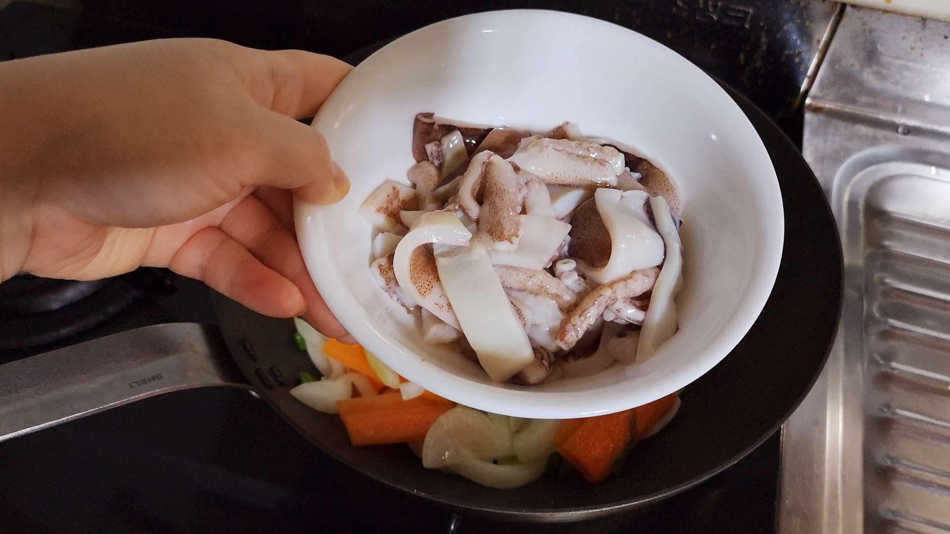 오징어가 하얗게 익을 때까지 볶아줍니다.