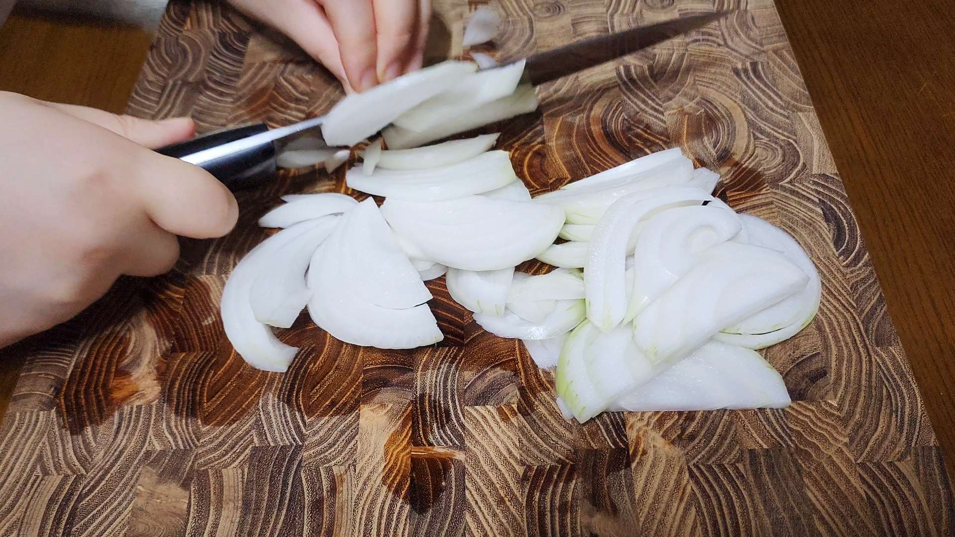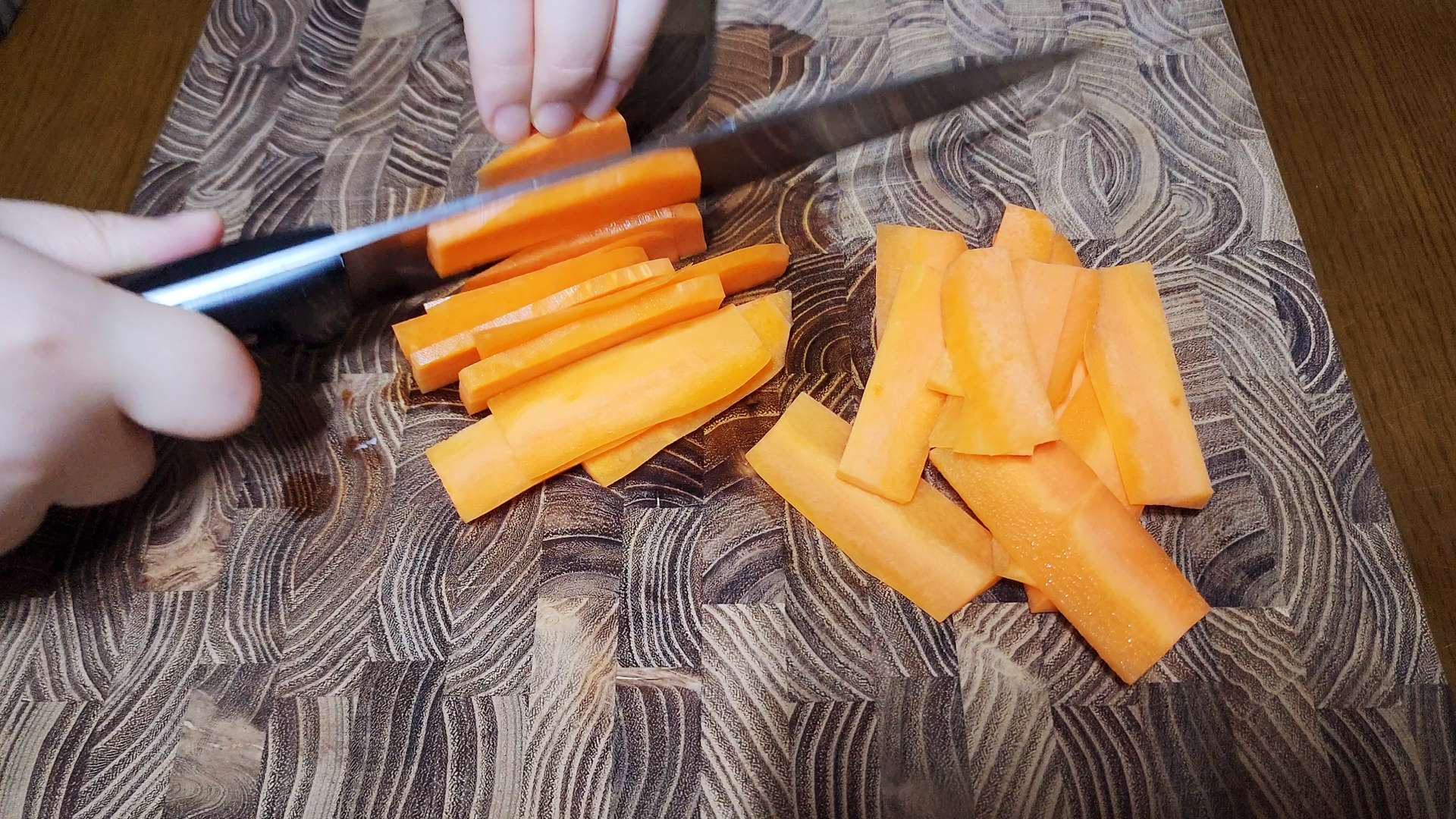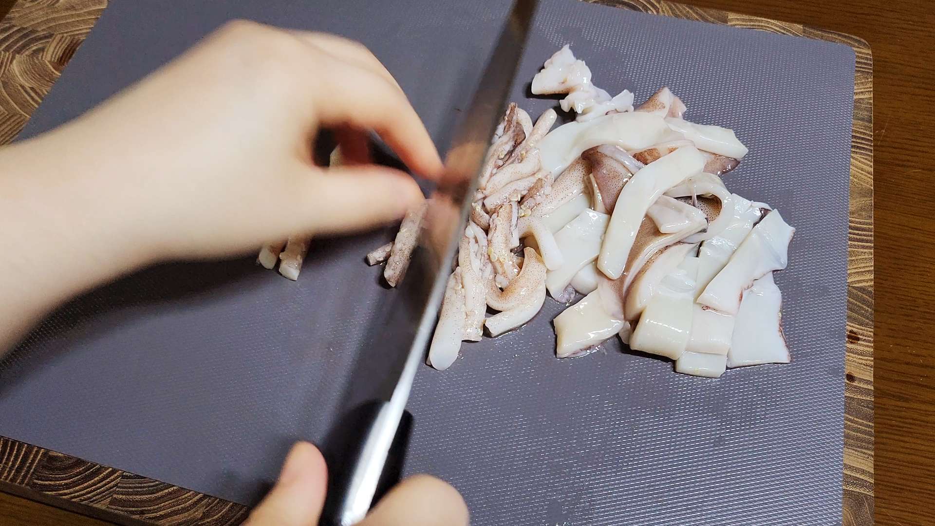몸통, 다리는 한입 길이로 잘라줍니다.
