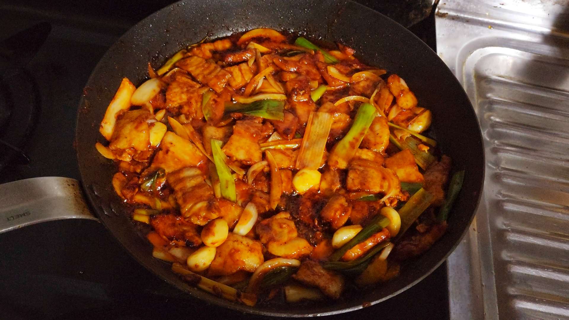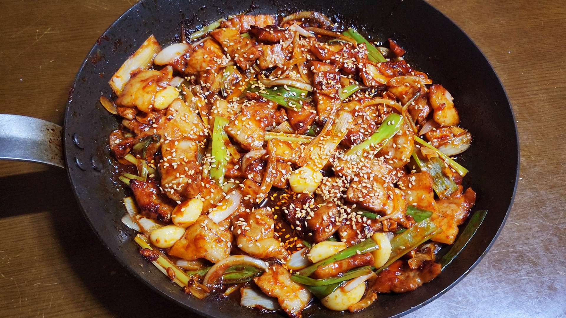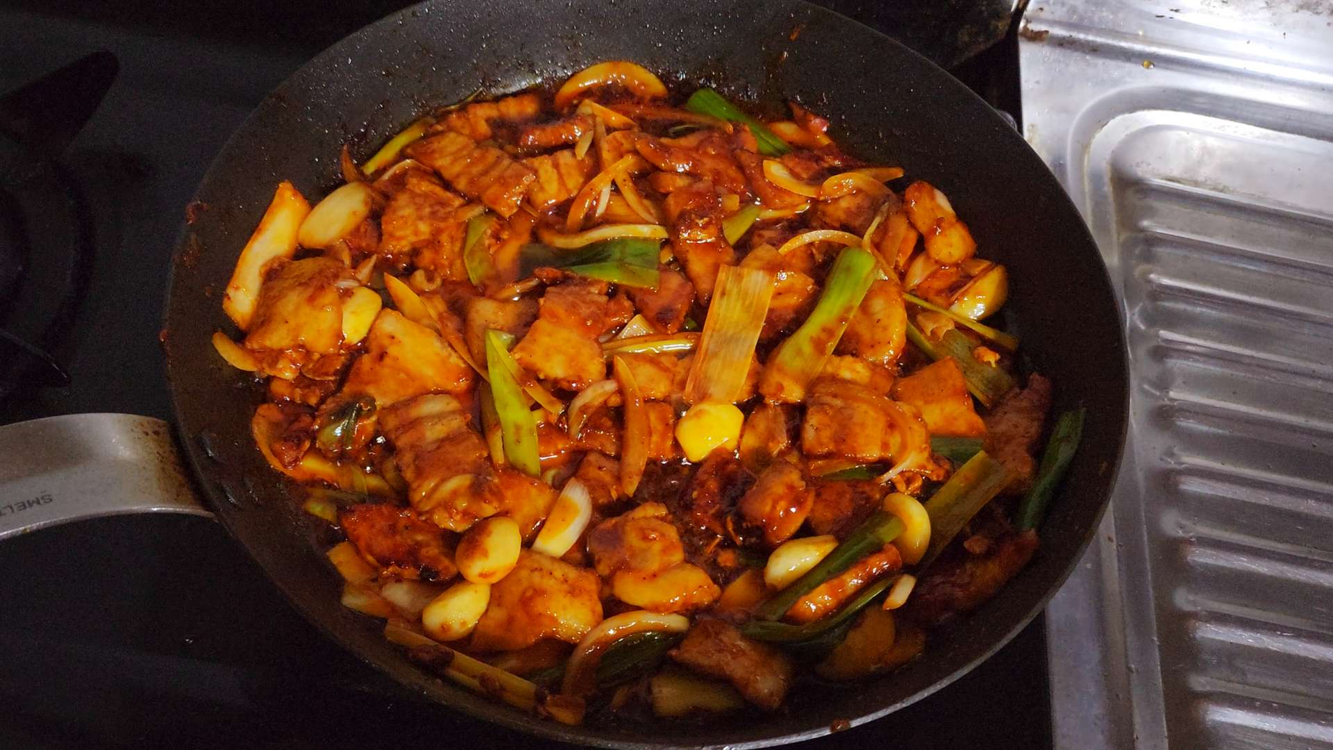 재료: 삼겹살 300g, 대파 1대, 양파 1/2개, 마늘 한 줌, 고추장 듬뿍 2T, 진간장 1T, 설탕 1.5T, 식초 1T,
