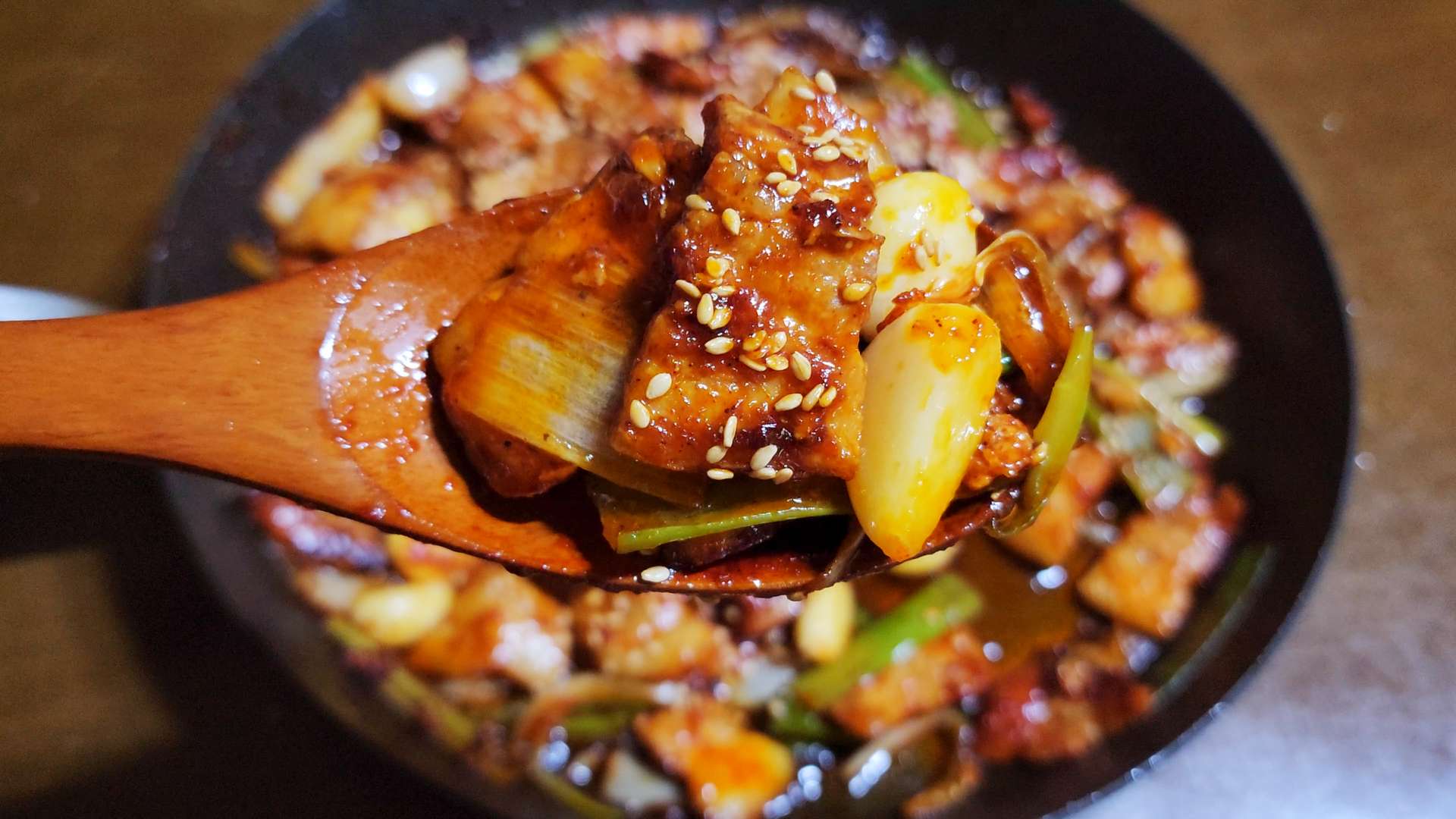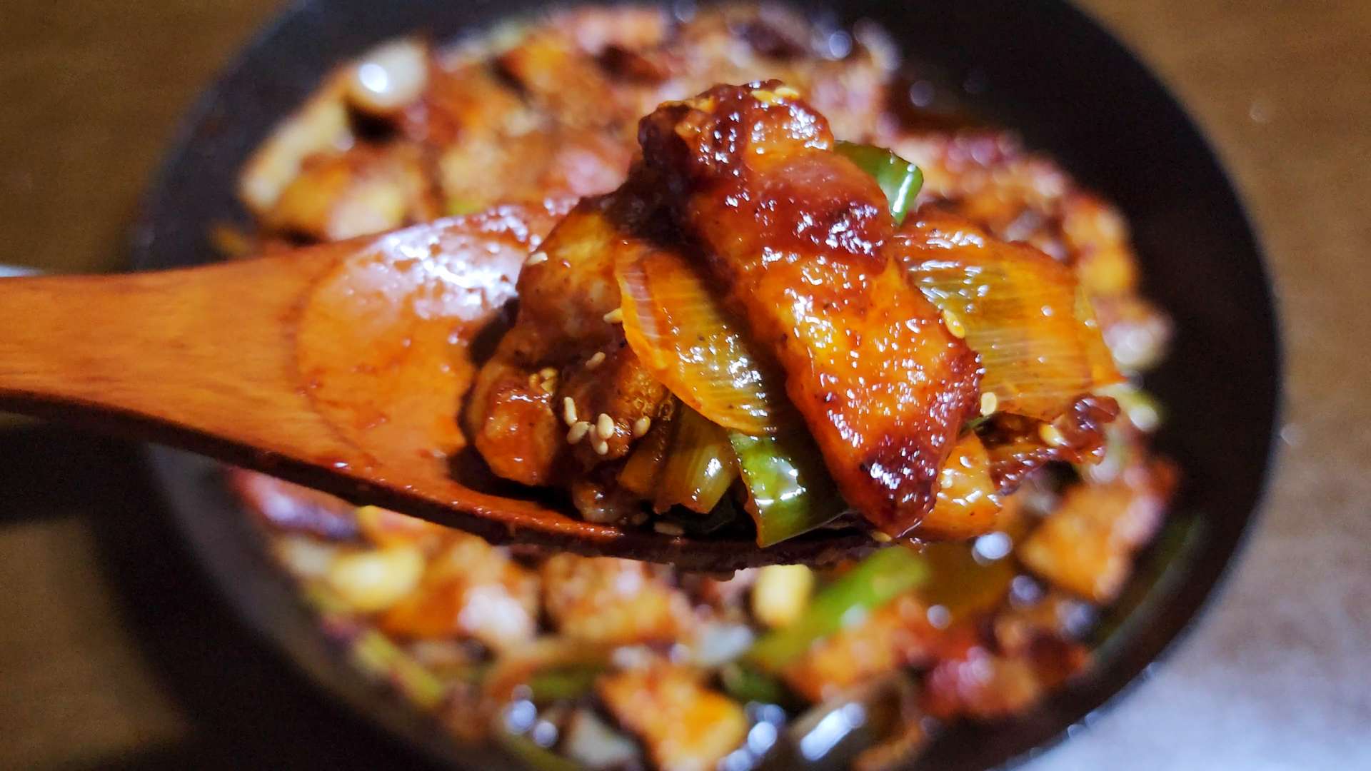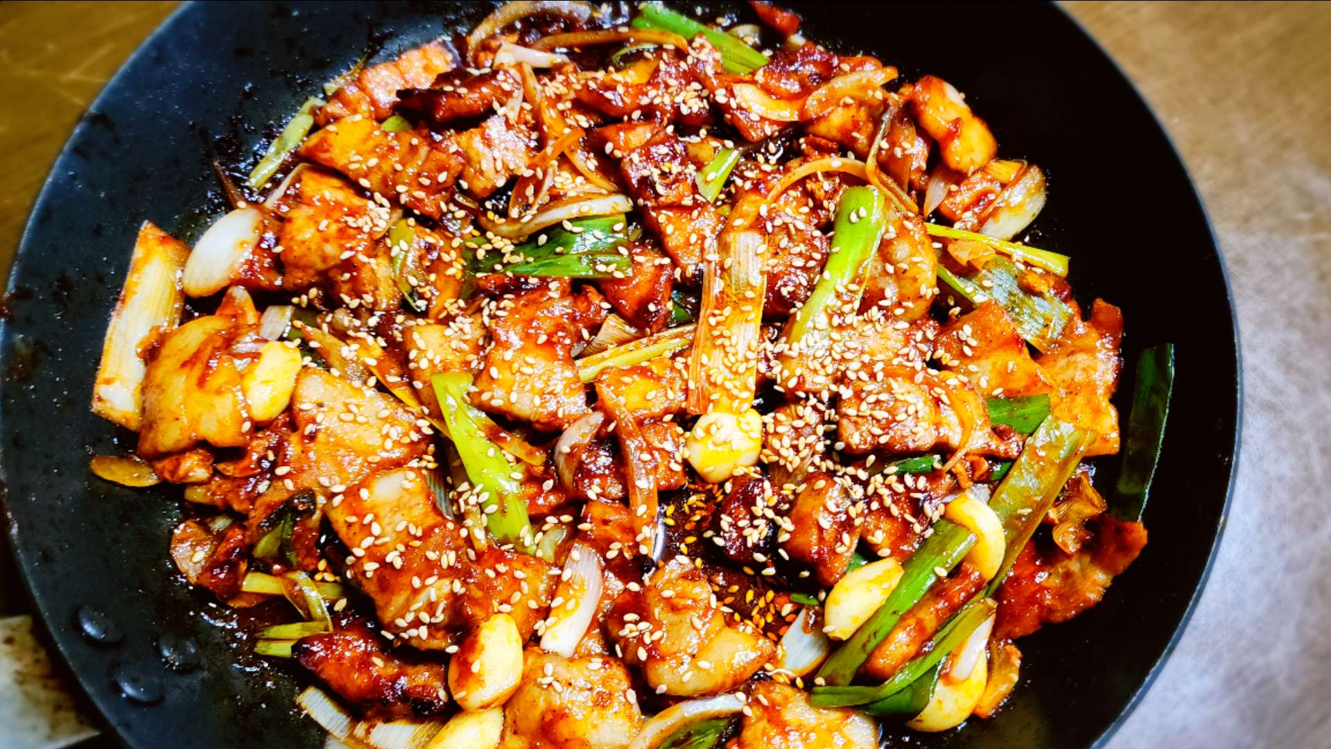 고소한 삼겹살에 매콤달콤한 양념이 잘 베어 있어 맛있답니다.