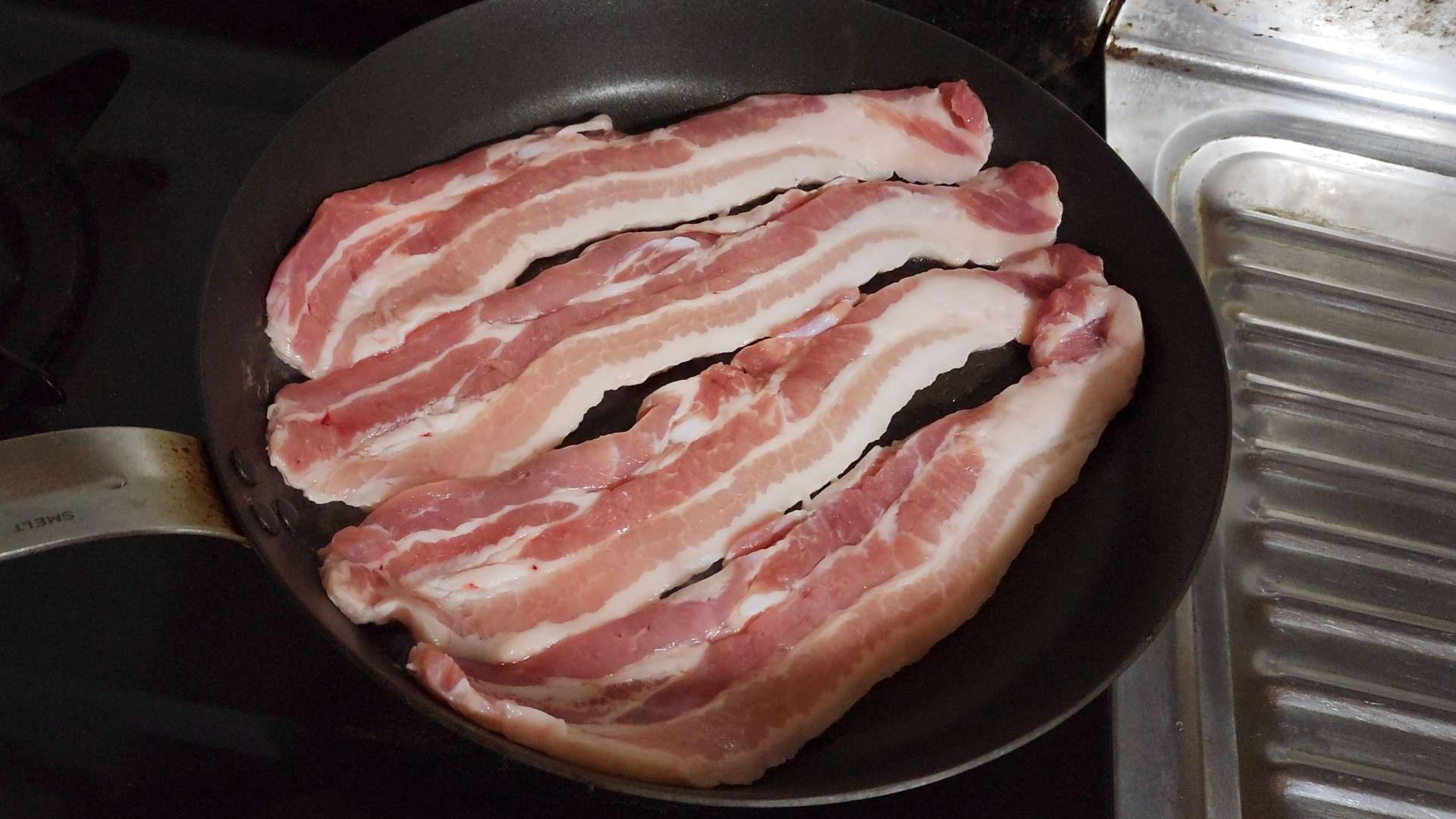 강불로 달군팬에 삼겹살 300g을 올려 강불에서 구워줍니다.