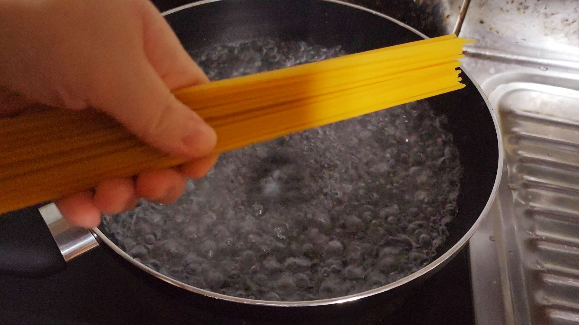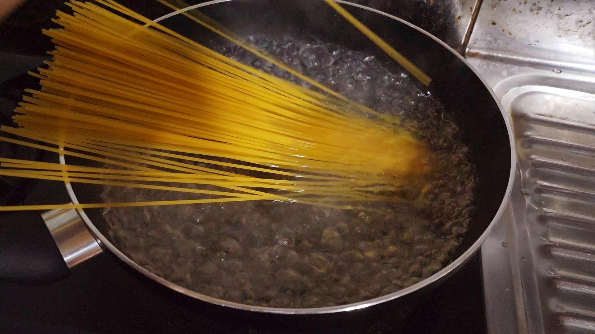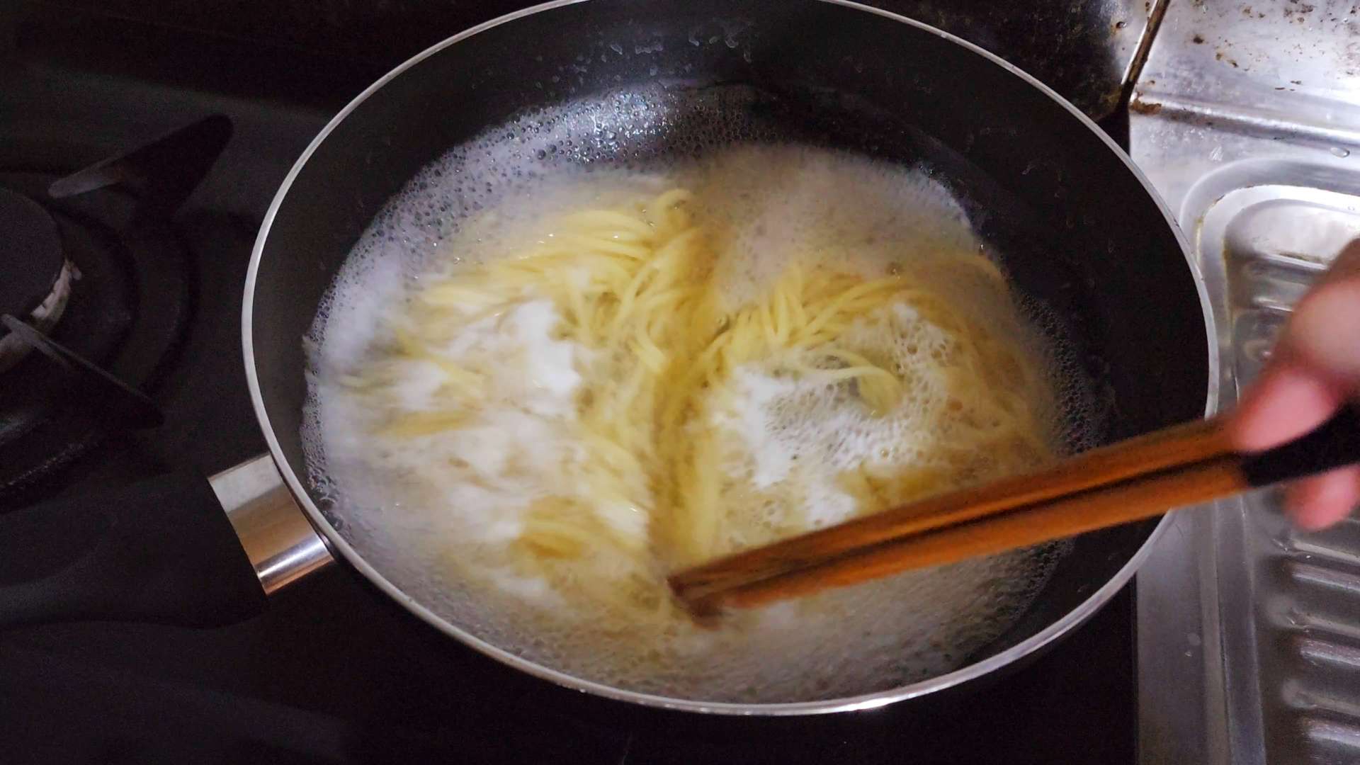 물이 끓으면 파스타면 1인분을 넣고 10분 정도 삶아줍니다.