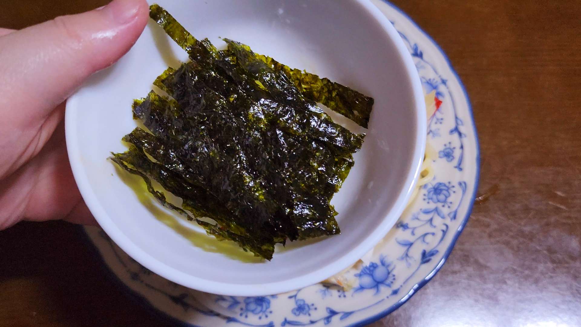 오이, 신김치, 자른 조미김을 순서대로 올려줍니다.