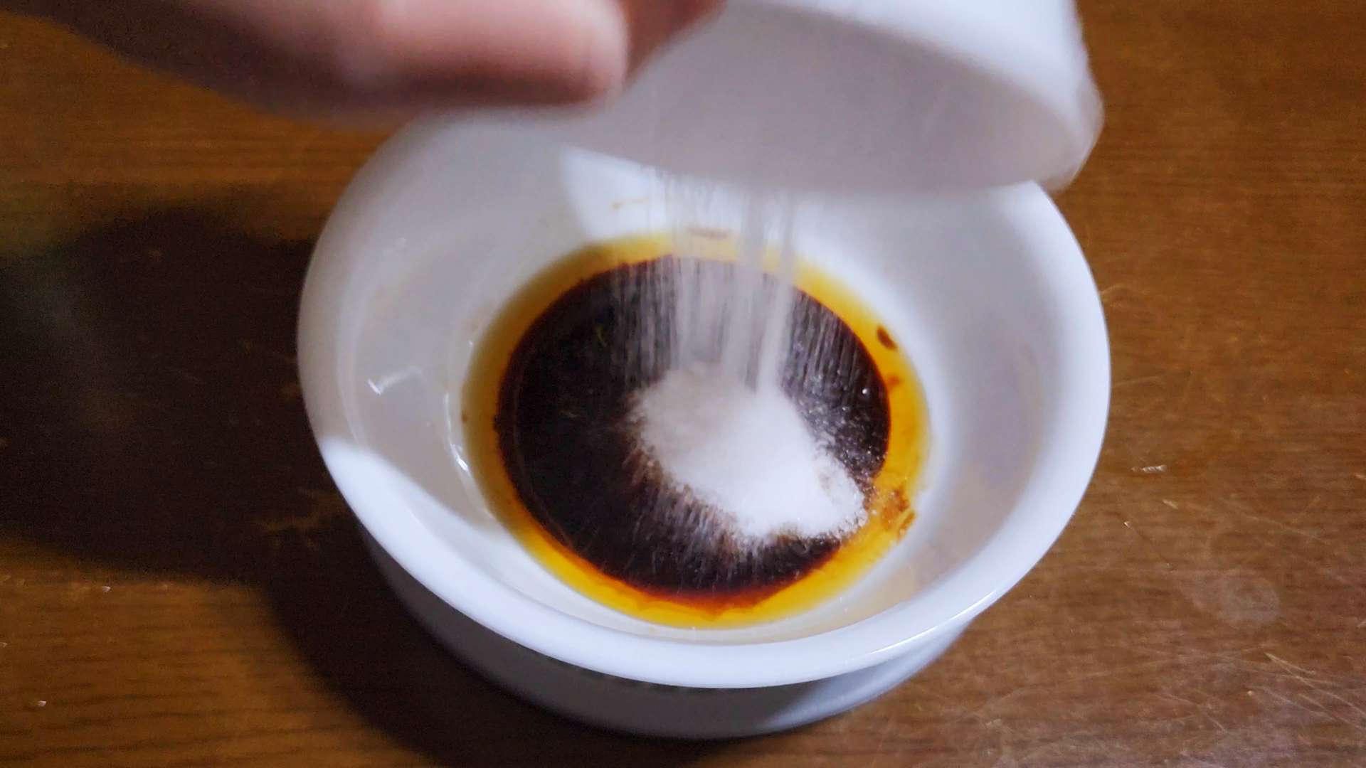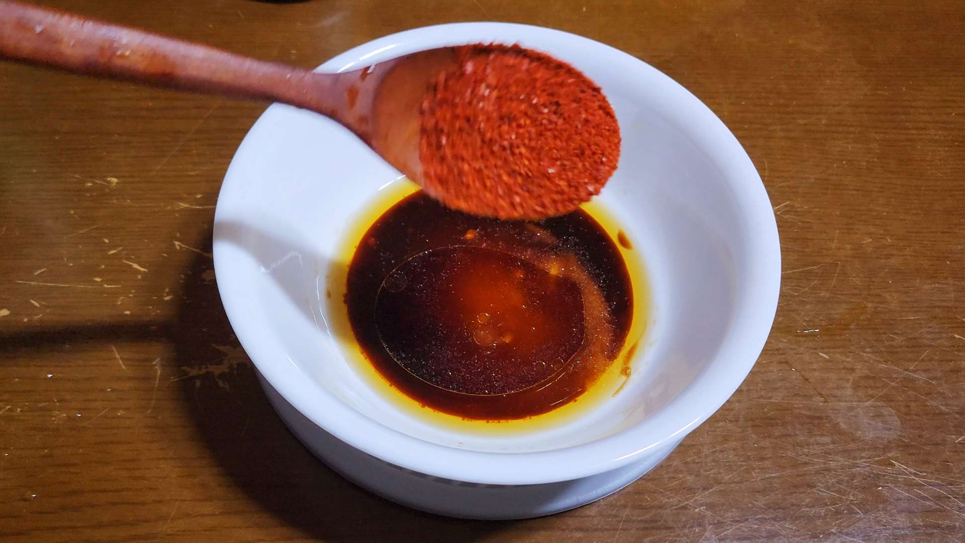 설탕 2T, 고춧가루 1T, 통깨 1T, 물 1T