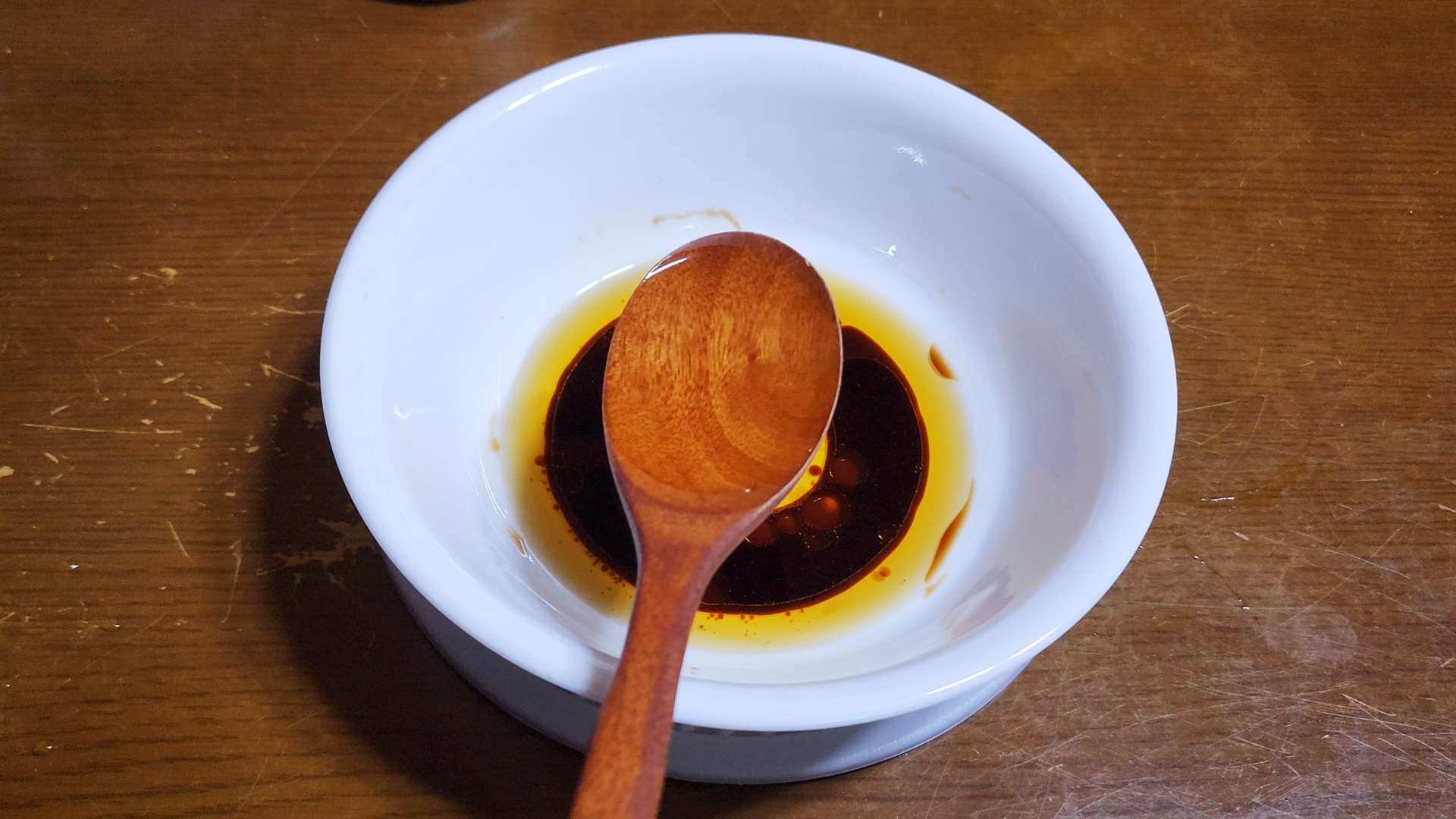 볼에 참기름 3T, 양조간장 3T, 식초 1T, 설탕 2T,