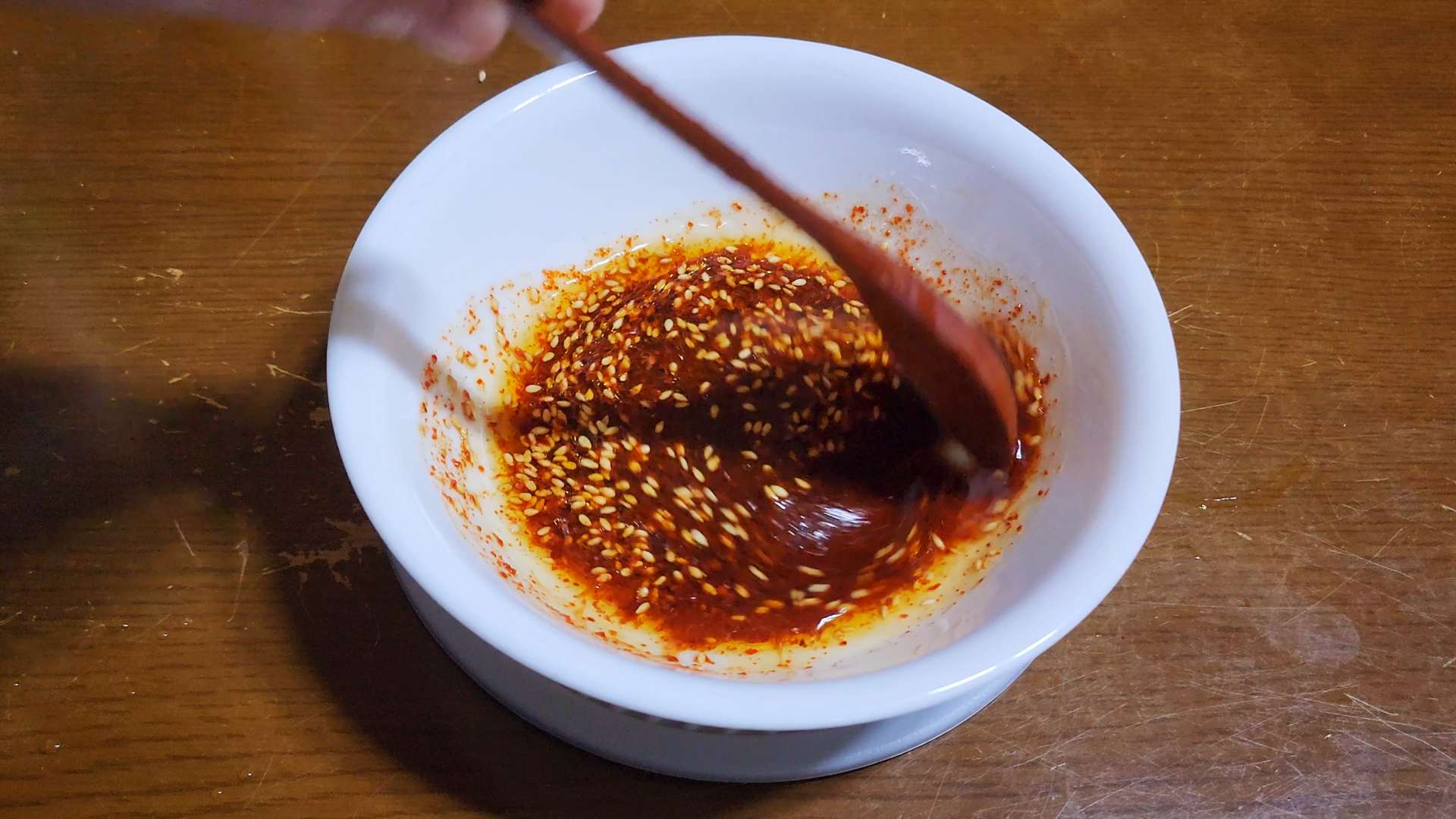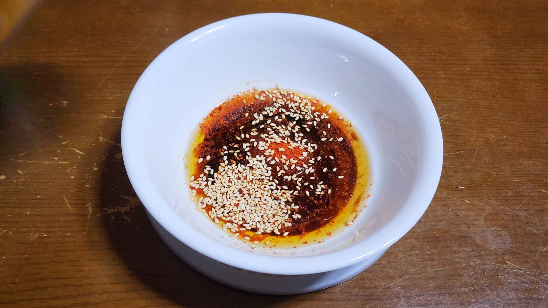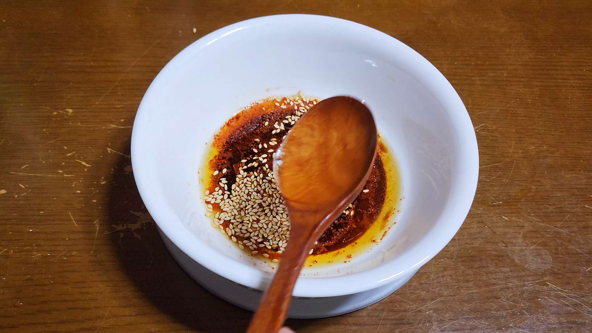 고춧가루 1T, 통깨 1T, 물 1T 넣고 섞어서 냉장고에 넣어줍니다.