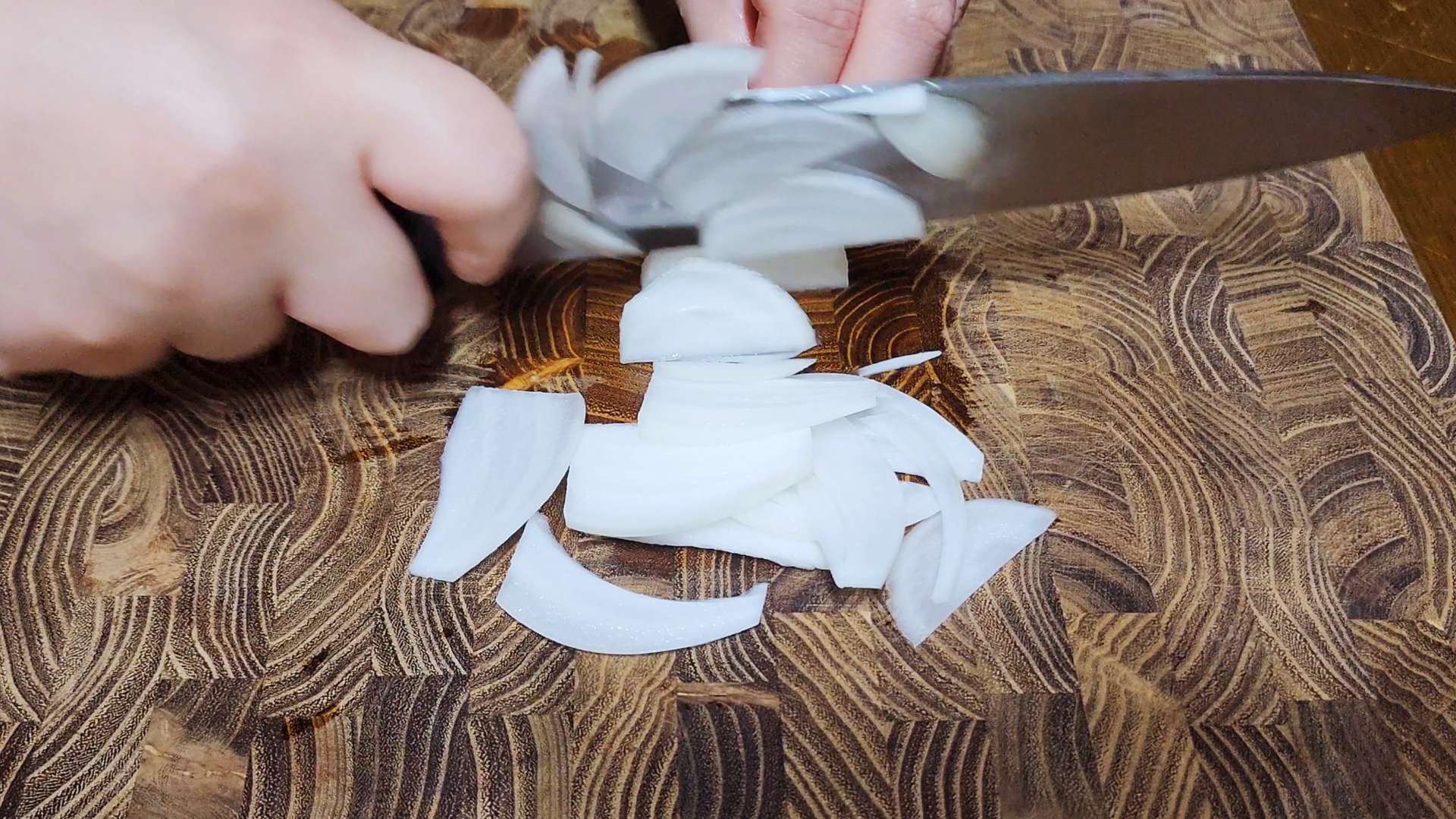 양파 1/2개, 홍고추 1개, 얇게 자른 조미김