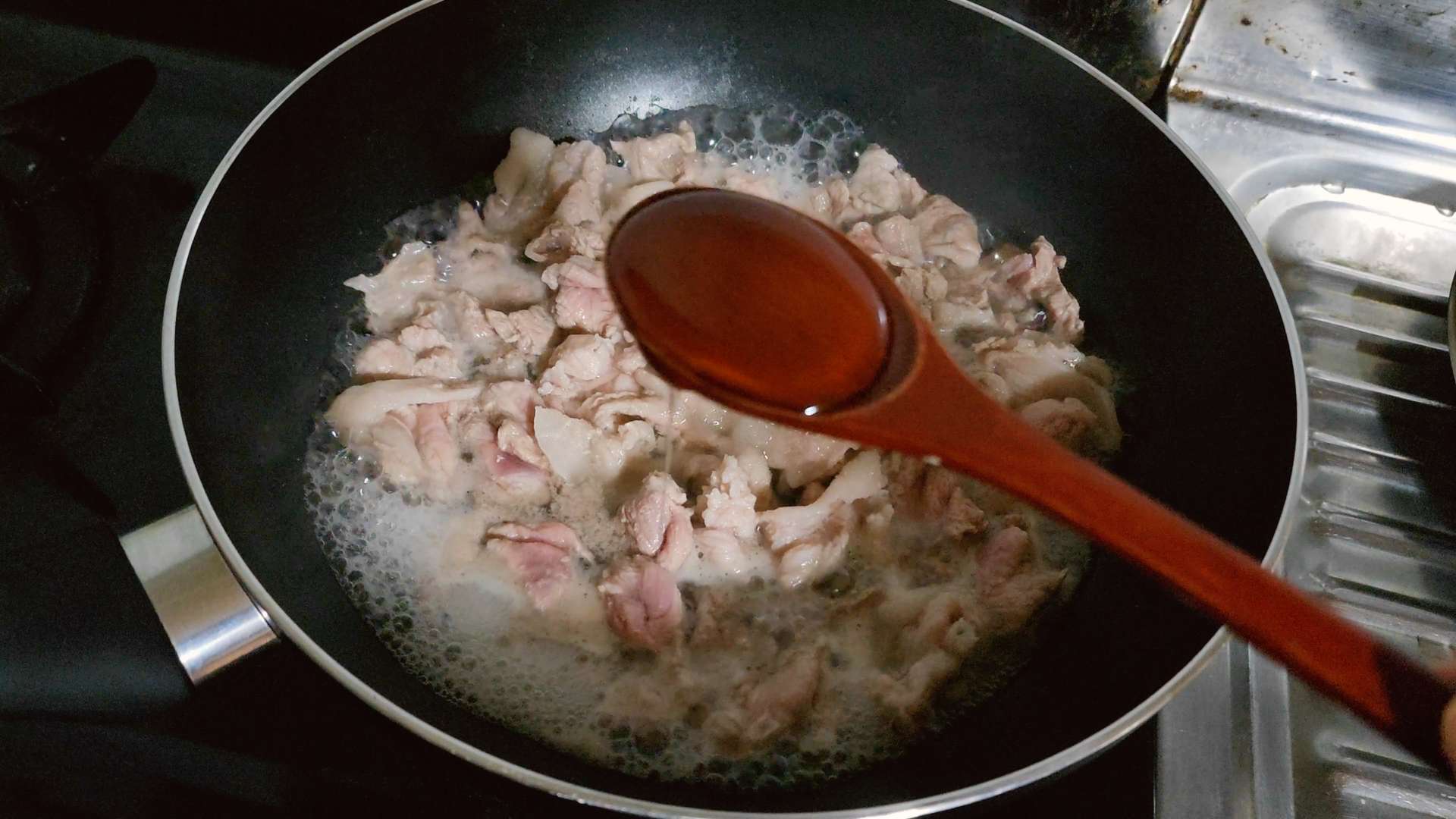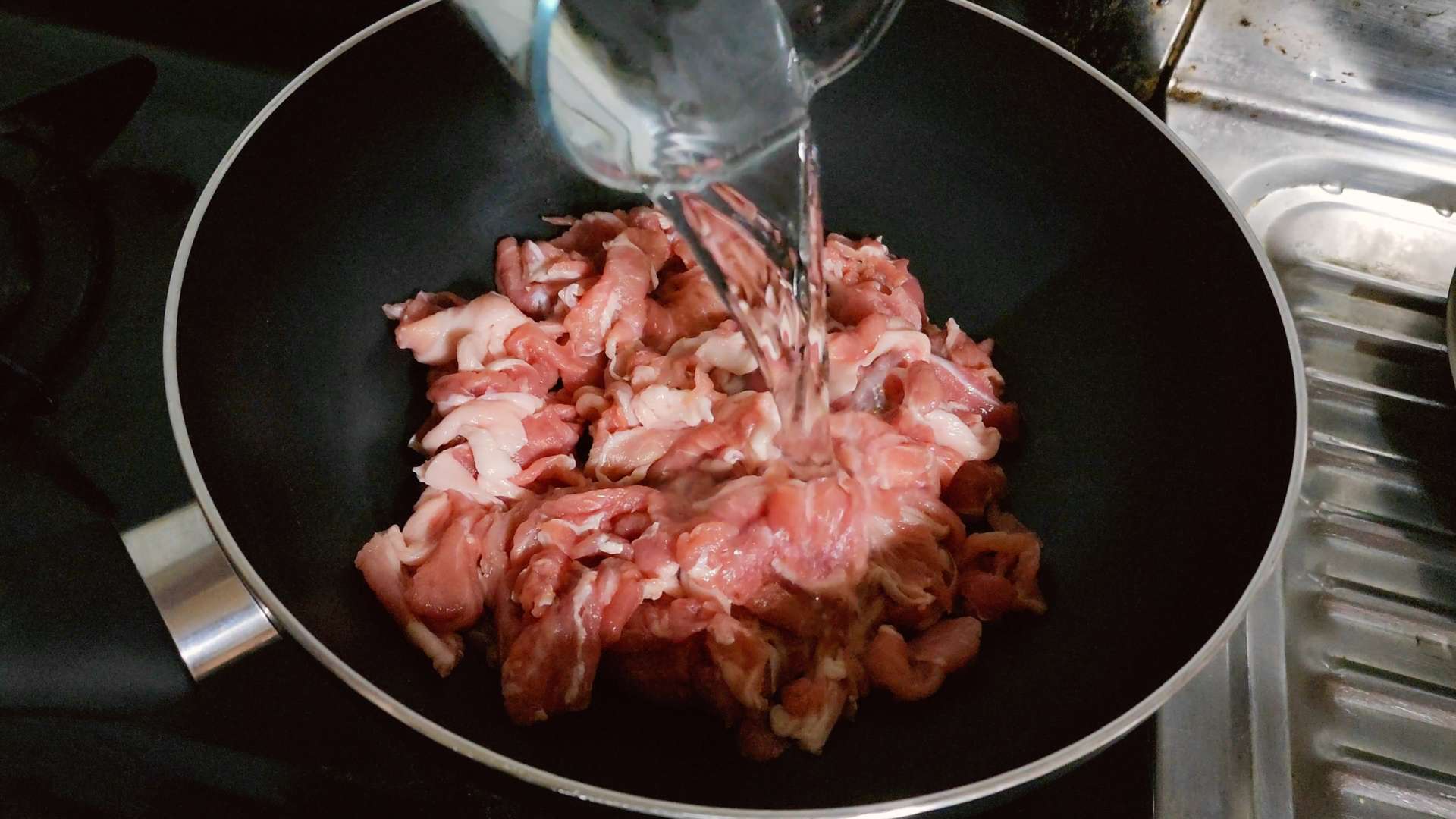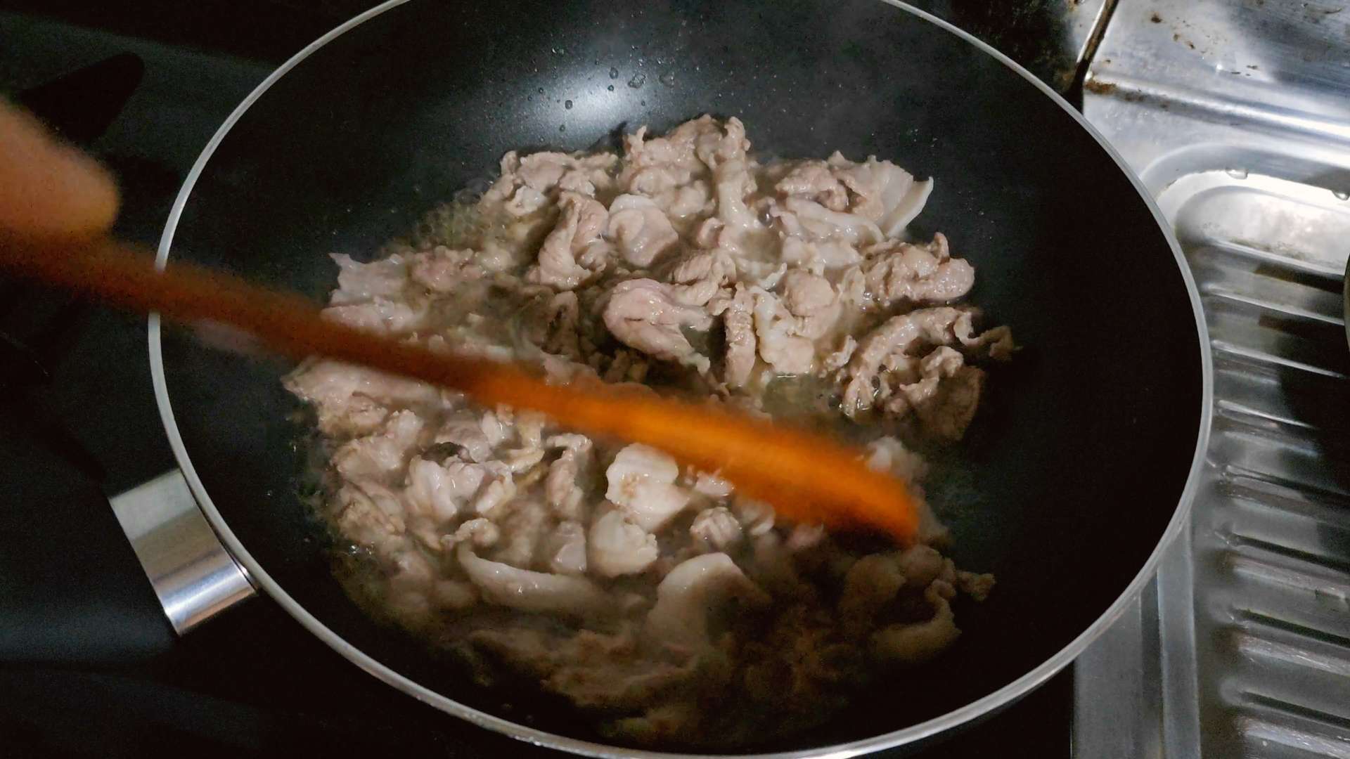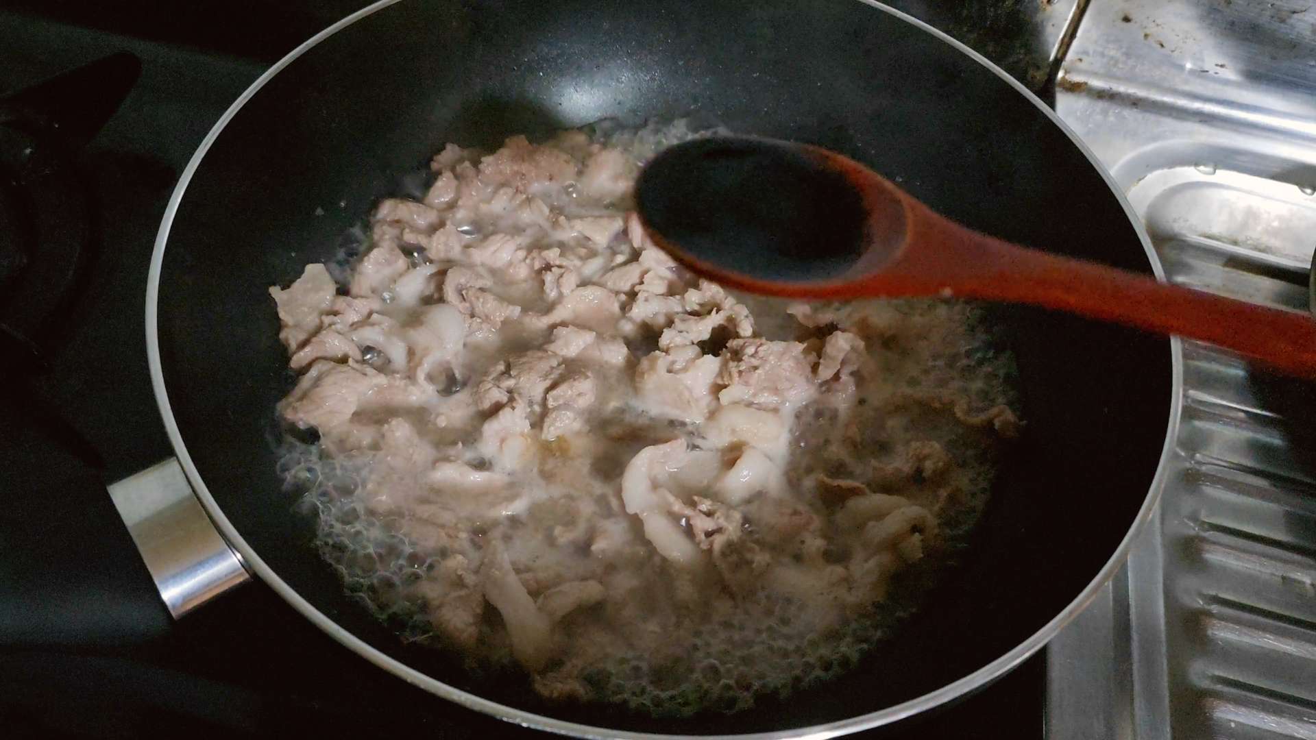 물 100ml 넣고 강불에서 고기가 반 정도 익을때까지 볶아줍니다.