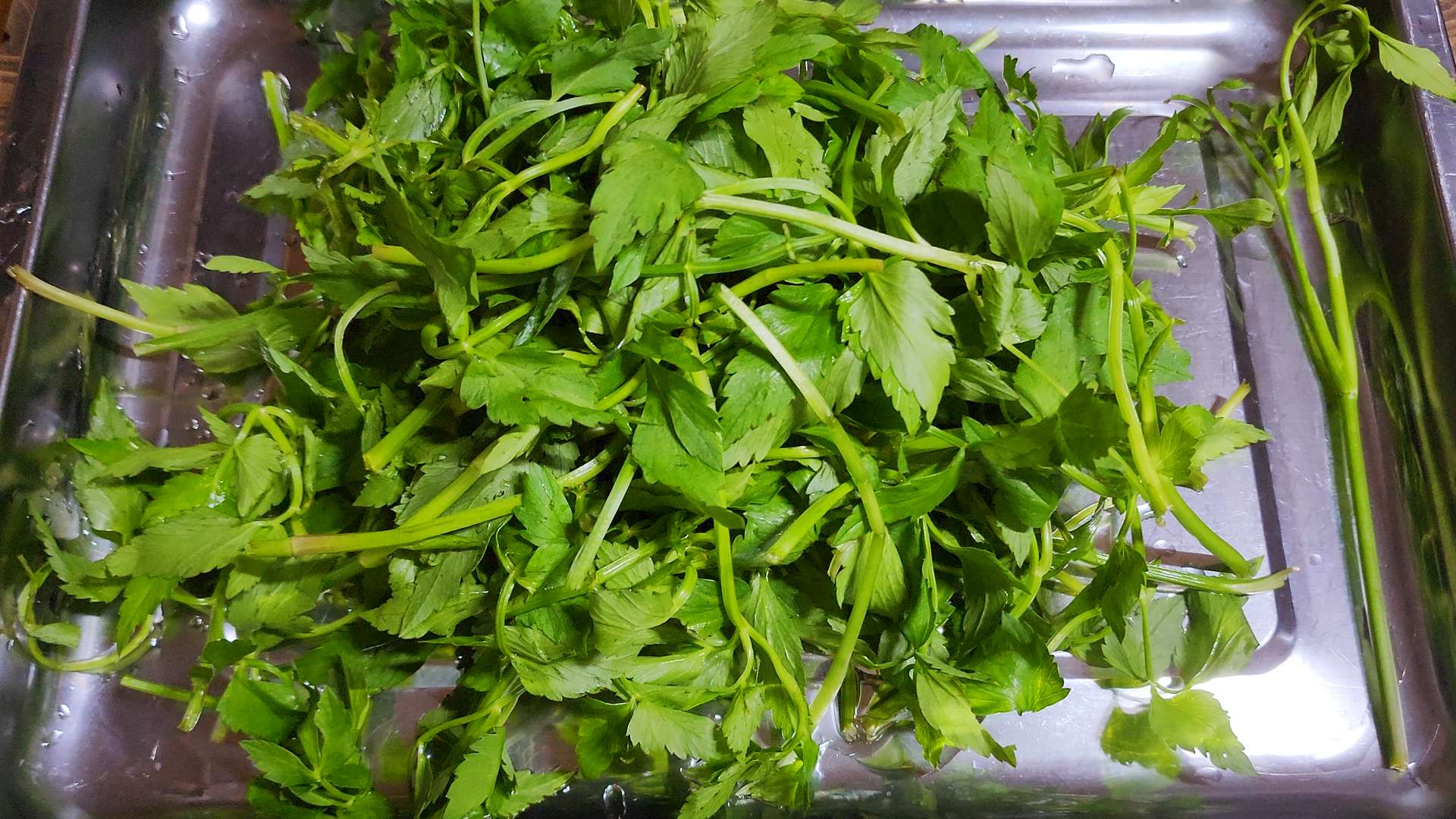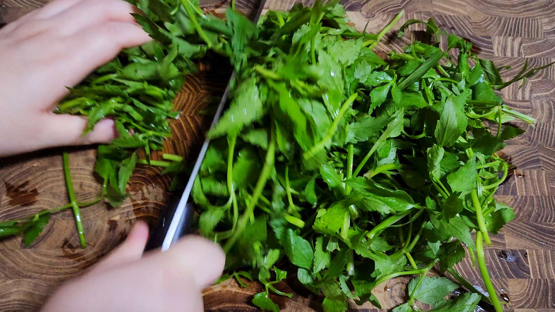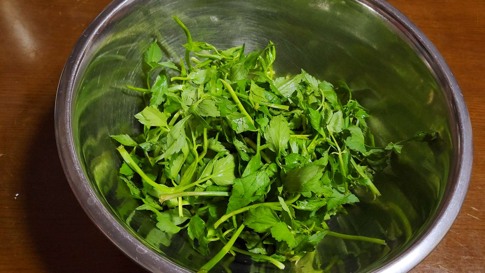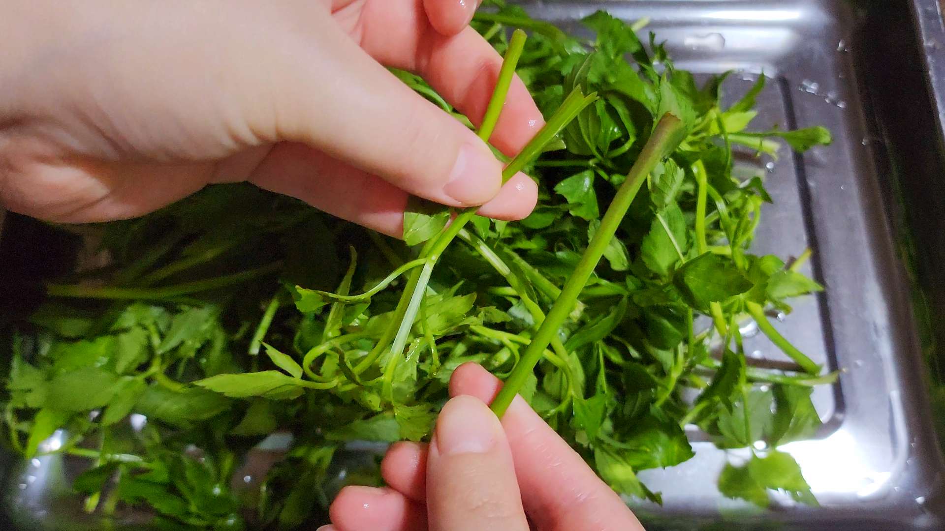 미나리는 질긴 줄기를 자르고 10cm 길이로