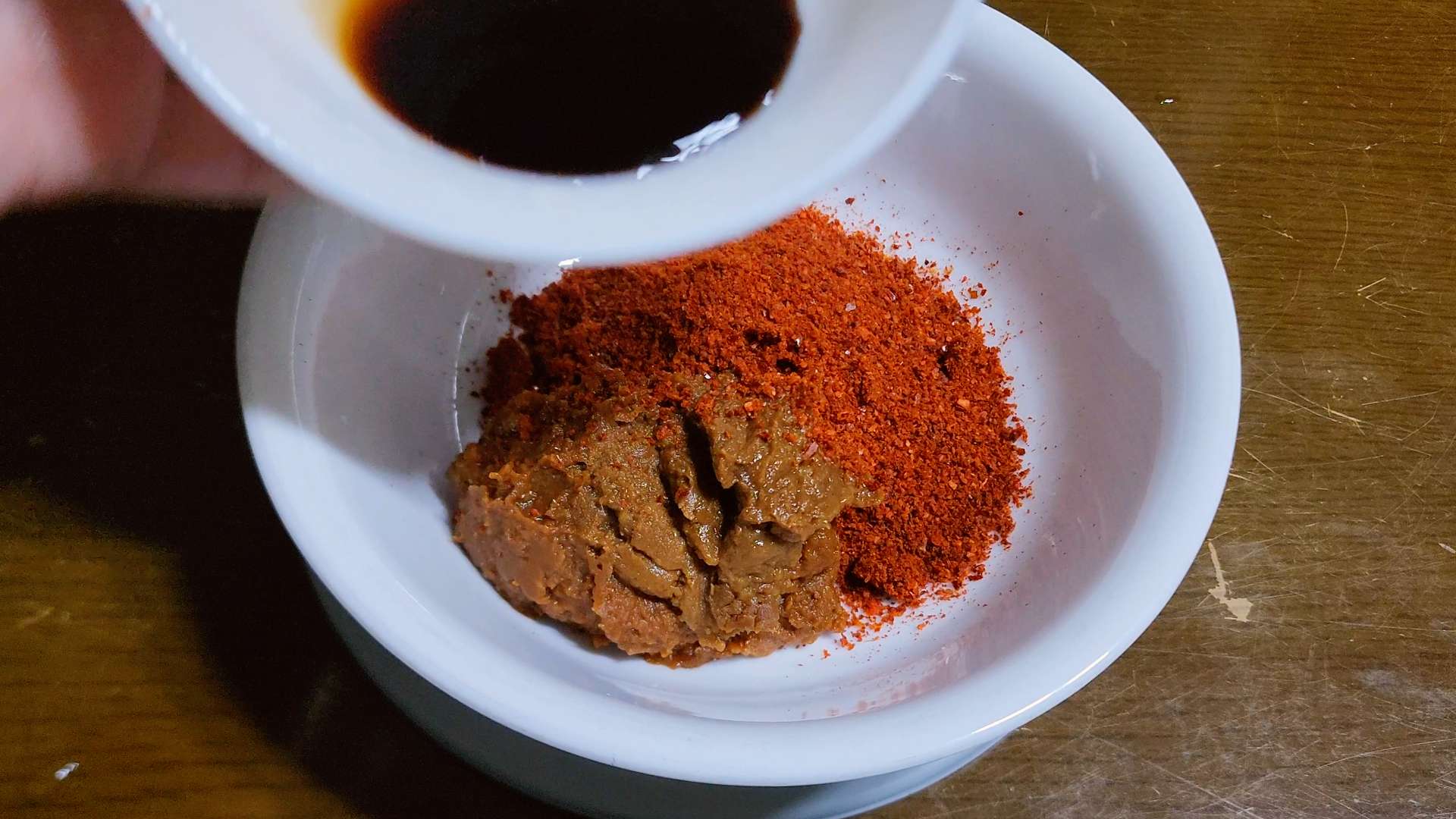 양념장: 된장 3T, 고춧가루 3T, 진간장 3T, 참치액젓 3T, 설탕 2T, 맛술 4T, 다진마늘 2T, 다진생강 1/2T, 후추