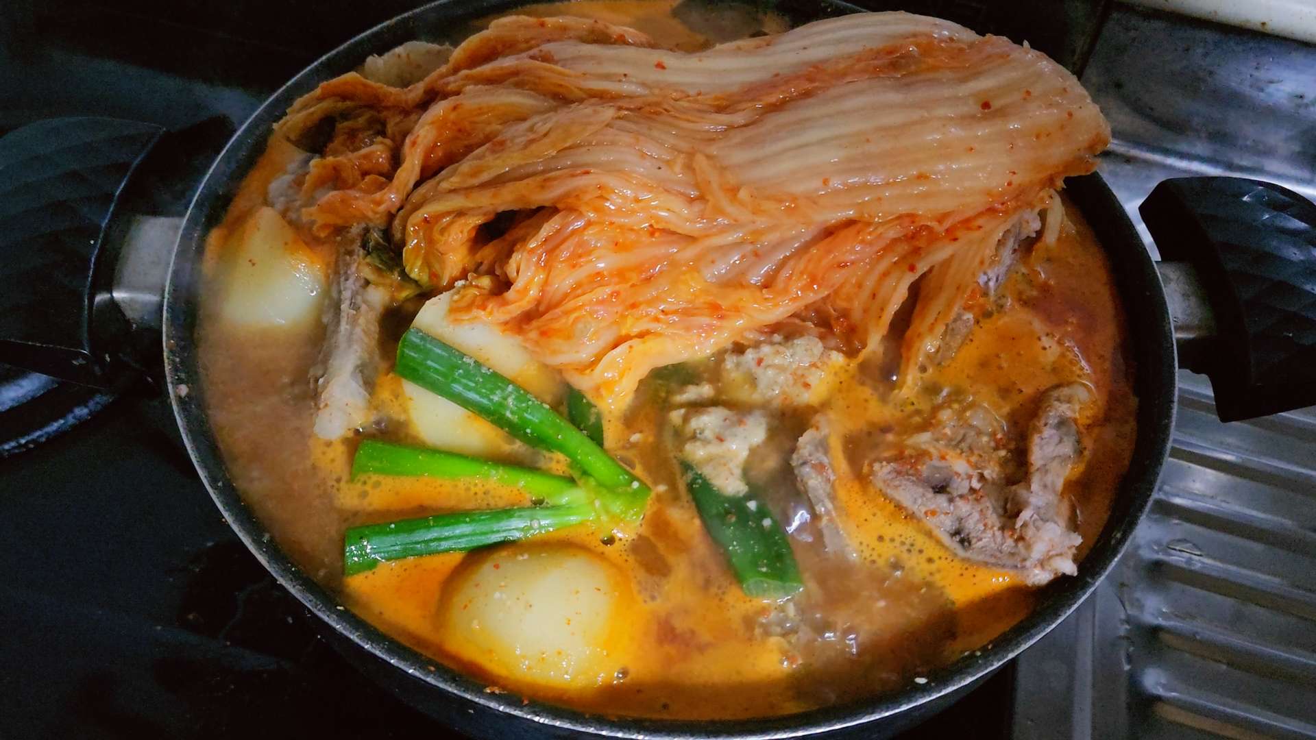 오늘 만들어 본 음식은 편스토랑에 나온 이찬원의 묵은지 감자탕 입니다.