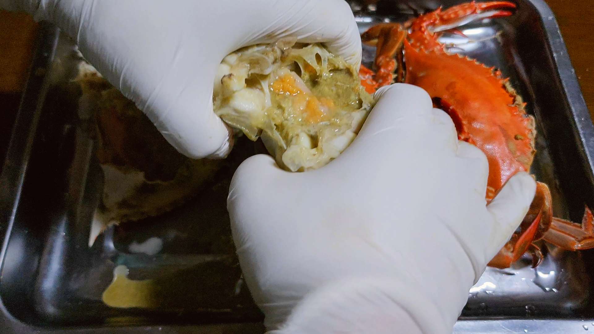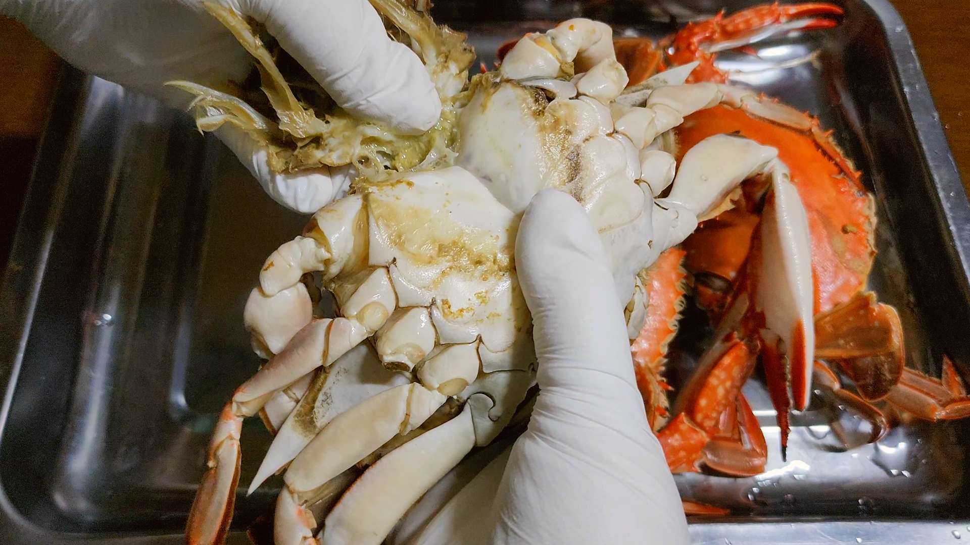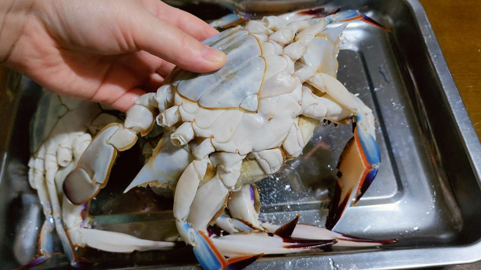 꽃게는 몸통과 등딱지 사이에 손을 넣고 분리해줍다.