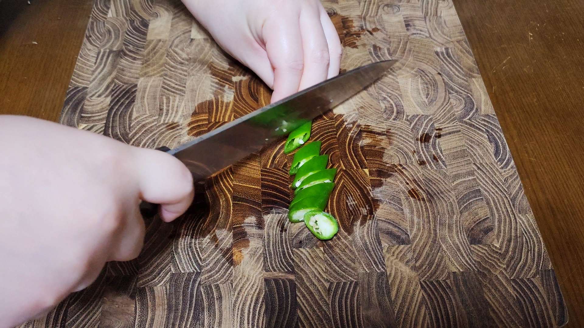 청양고추는 어슷 썰어줍니다.