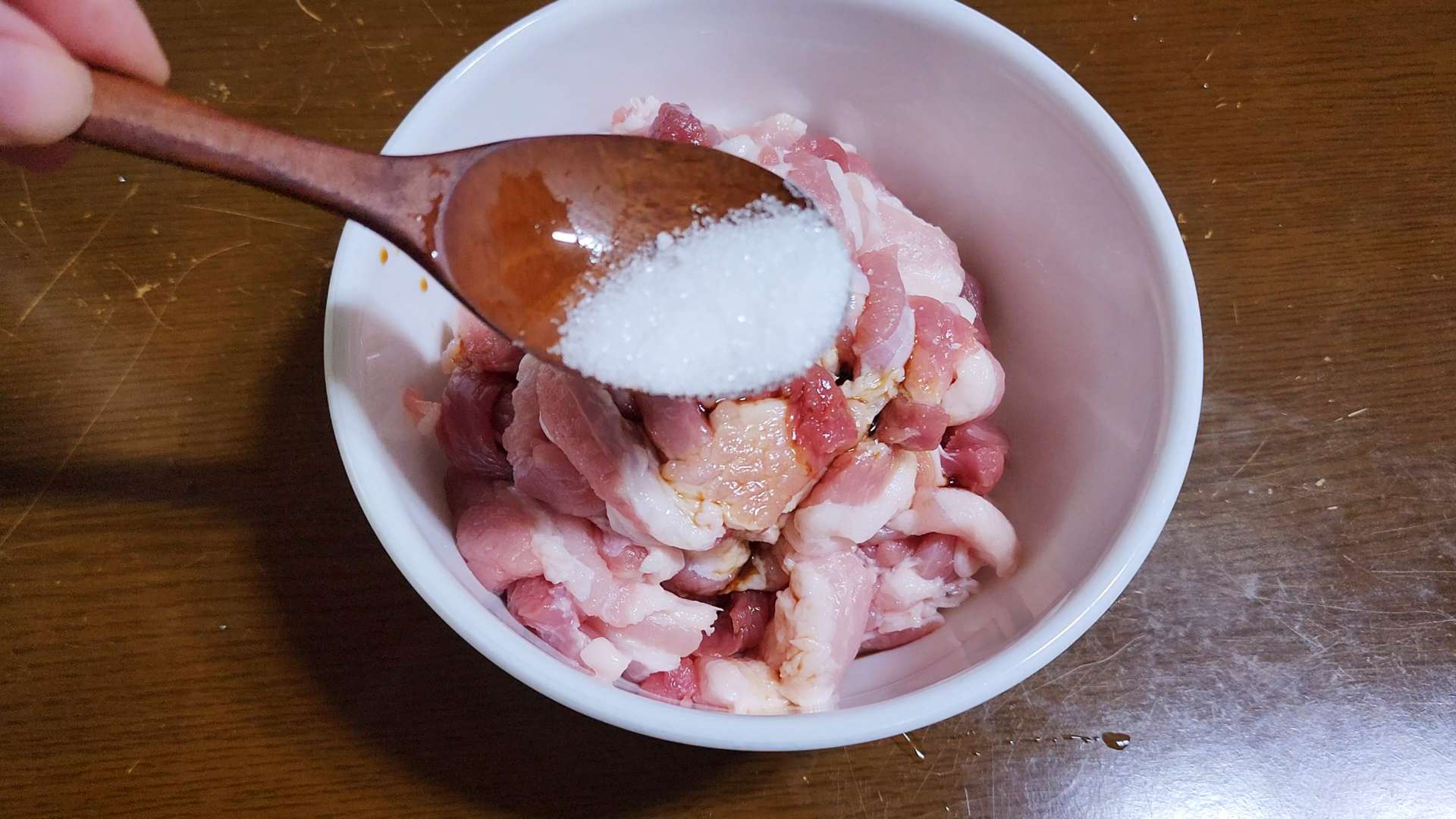 고기밑간: 간장 2T, 설탕 1/2T, 맛술 1T, 다진마늘 1T, 후추