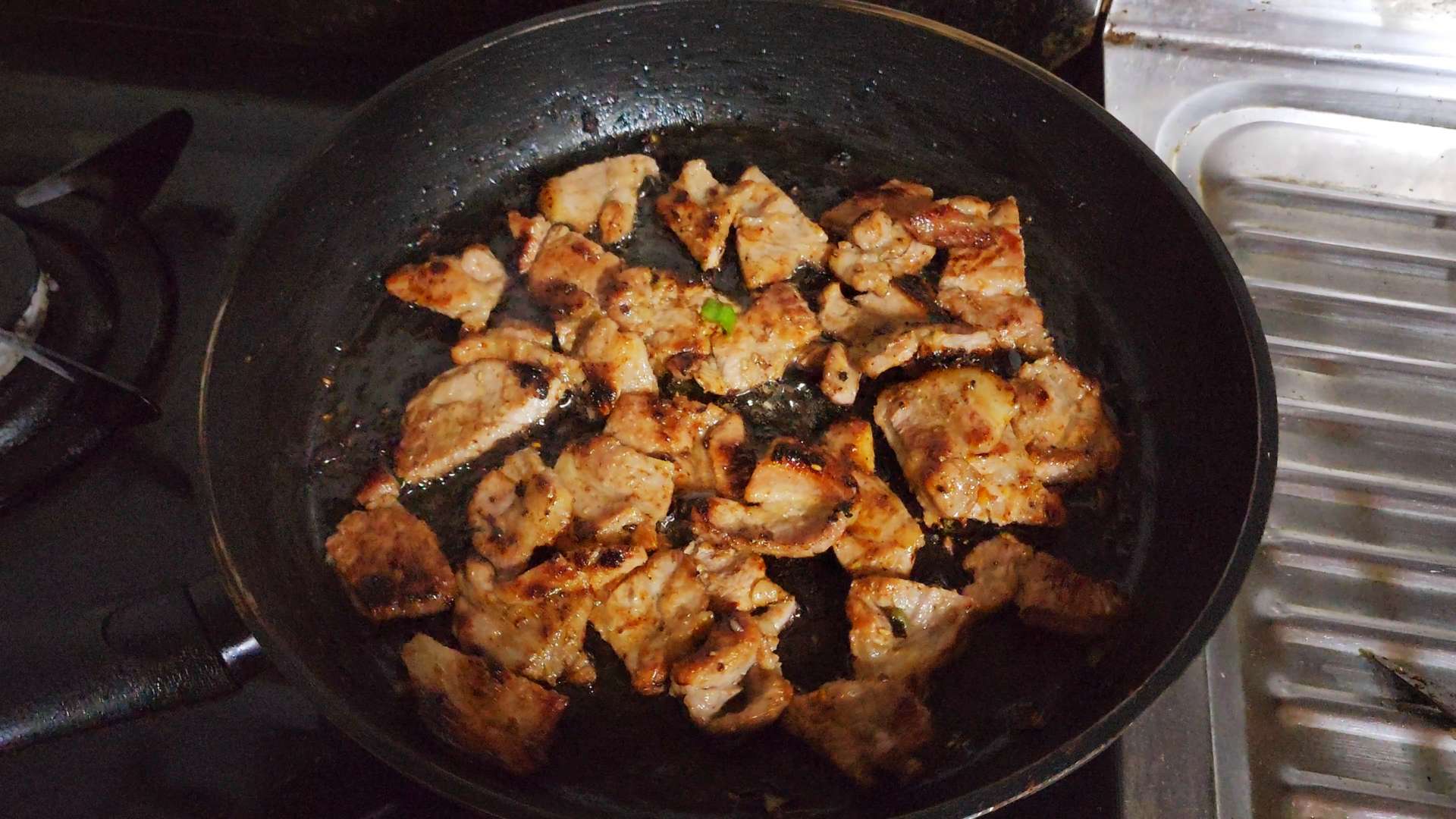 고기를 먹기 좋은 크기로 자르고 강불로 올려 10초 볶아줍니다.