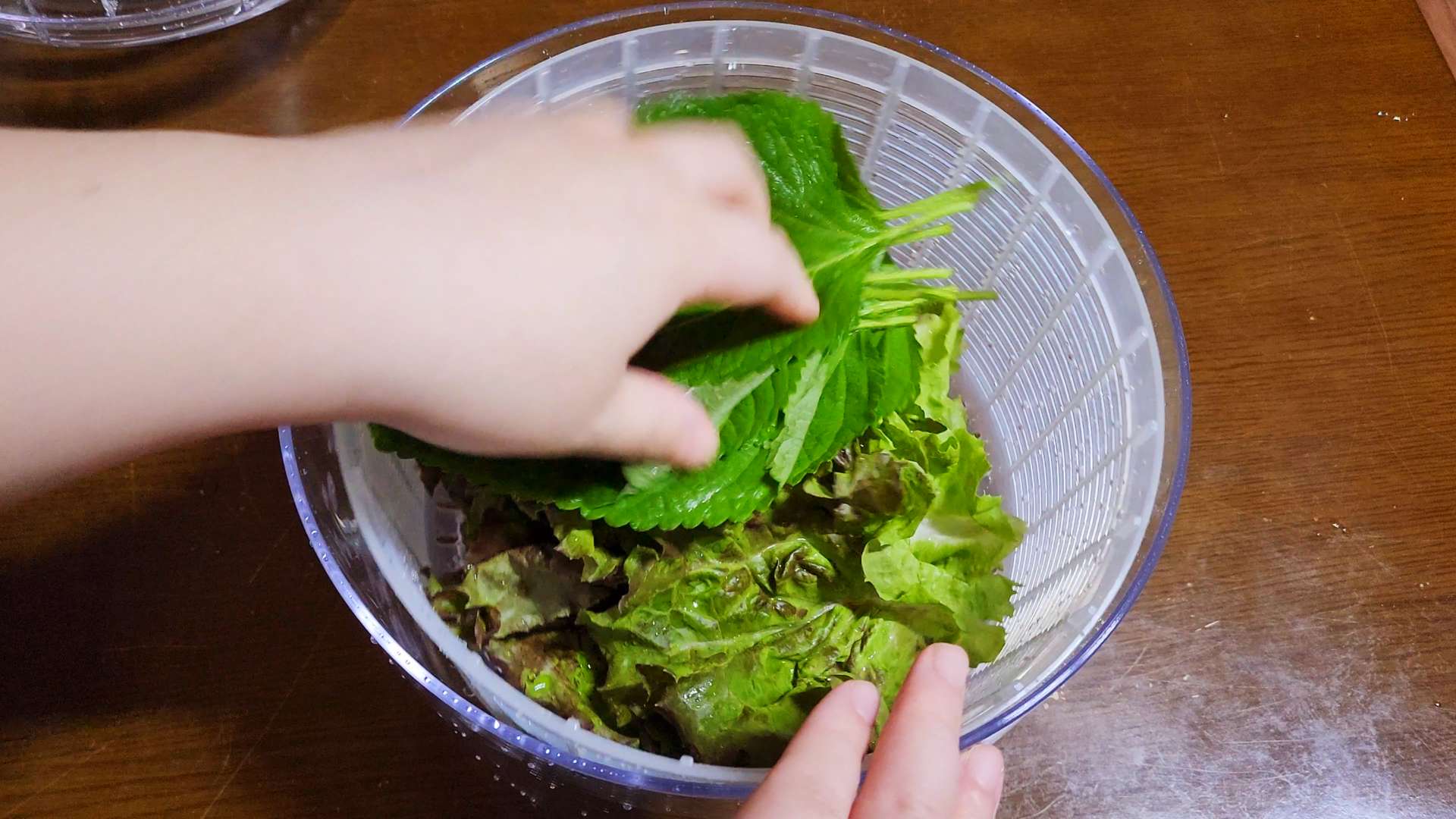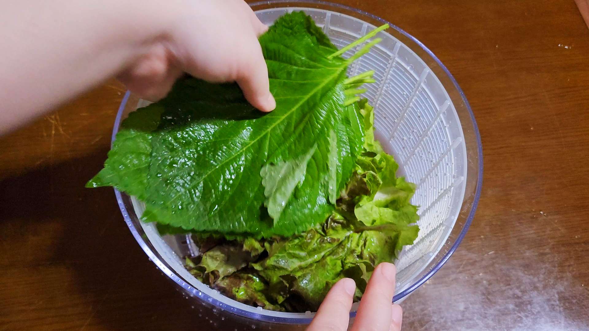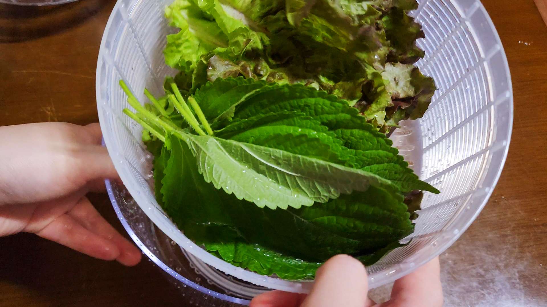 상추, 깻잎도 씻어서 물기를 제거해줍니다.