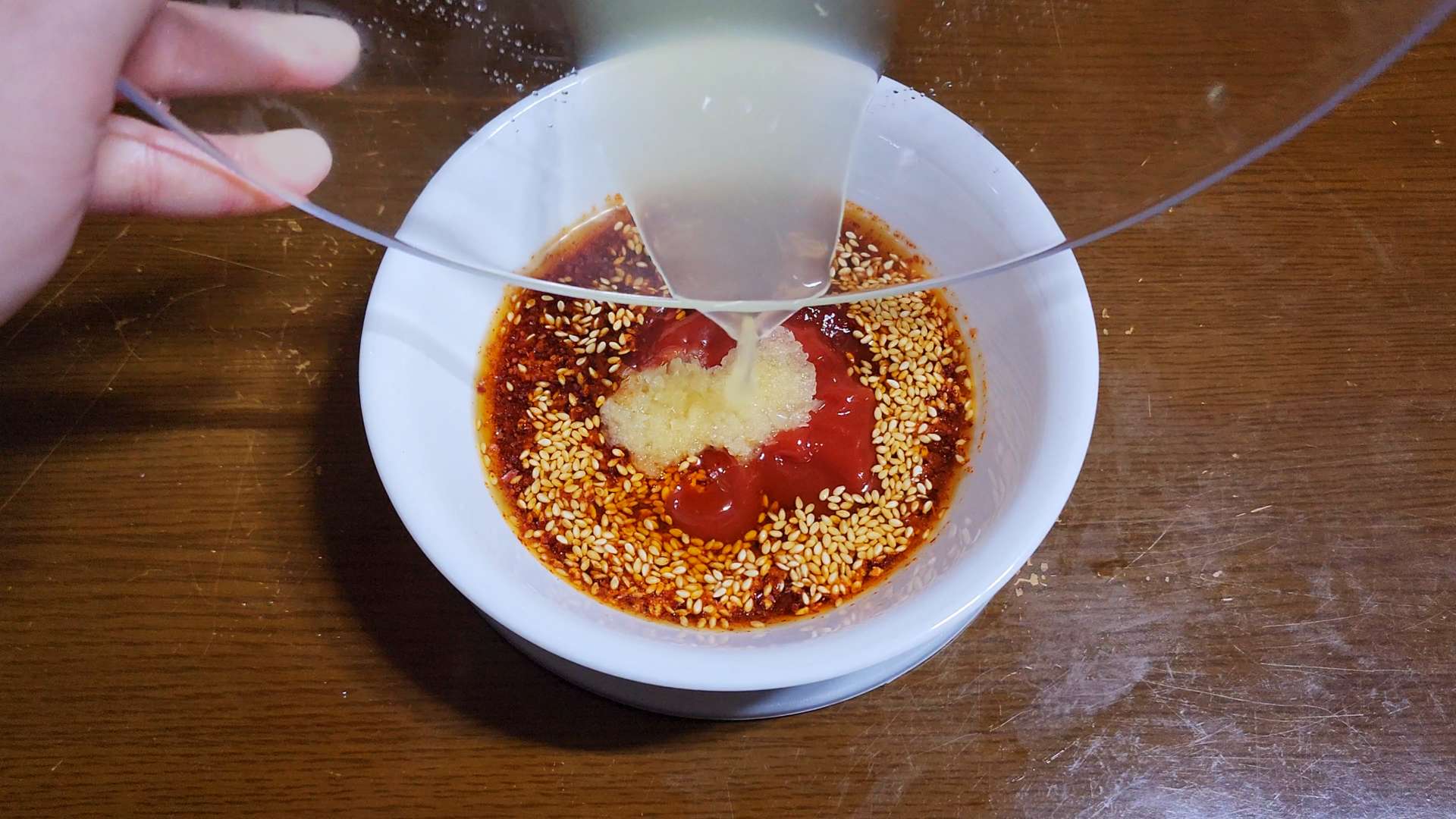 절임물은 버리지 말고 비빔양념장에 넣어줍니다.
