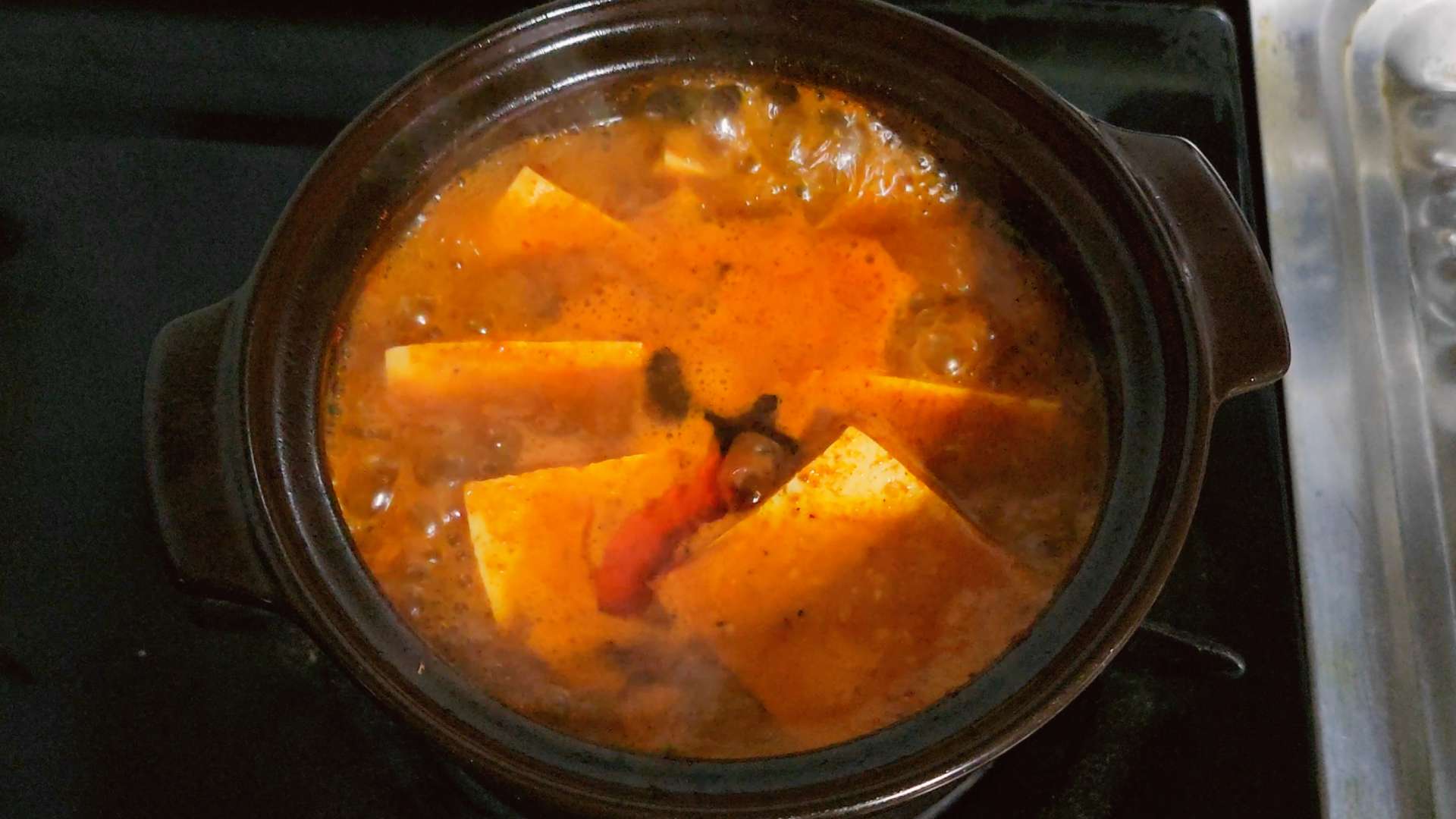두부를 넣고 국물이 반쯤 졸아들때까지 끓여줍니다.