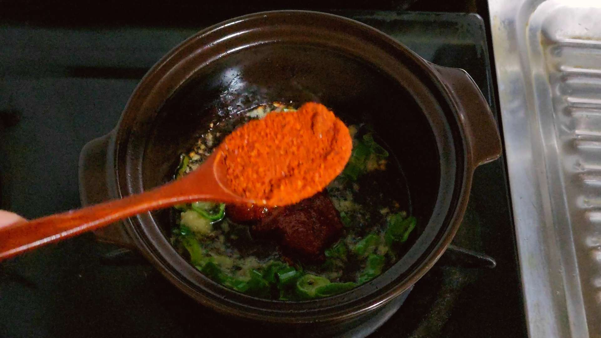 고추장 1T, 고춧가루 1T 넣고 중불에서 볶아줍니다.