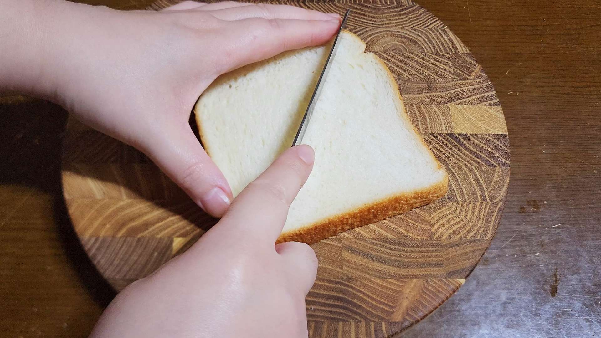 식빵 4장은 삼각형 모양으로 잘라줍니다.