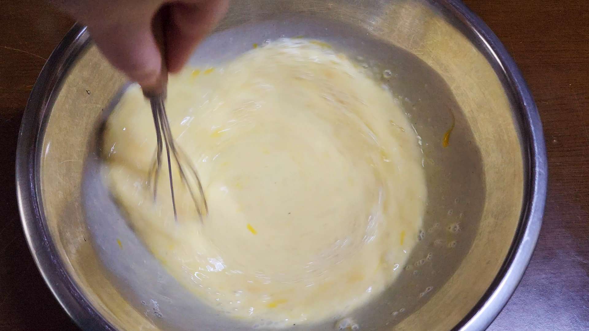 달걀 4개, 우유 100ml, 소금 한 꼬집, 설탕 1T, 후추를 넣고 섞어줍니다.