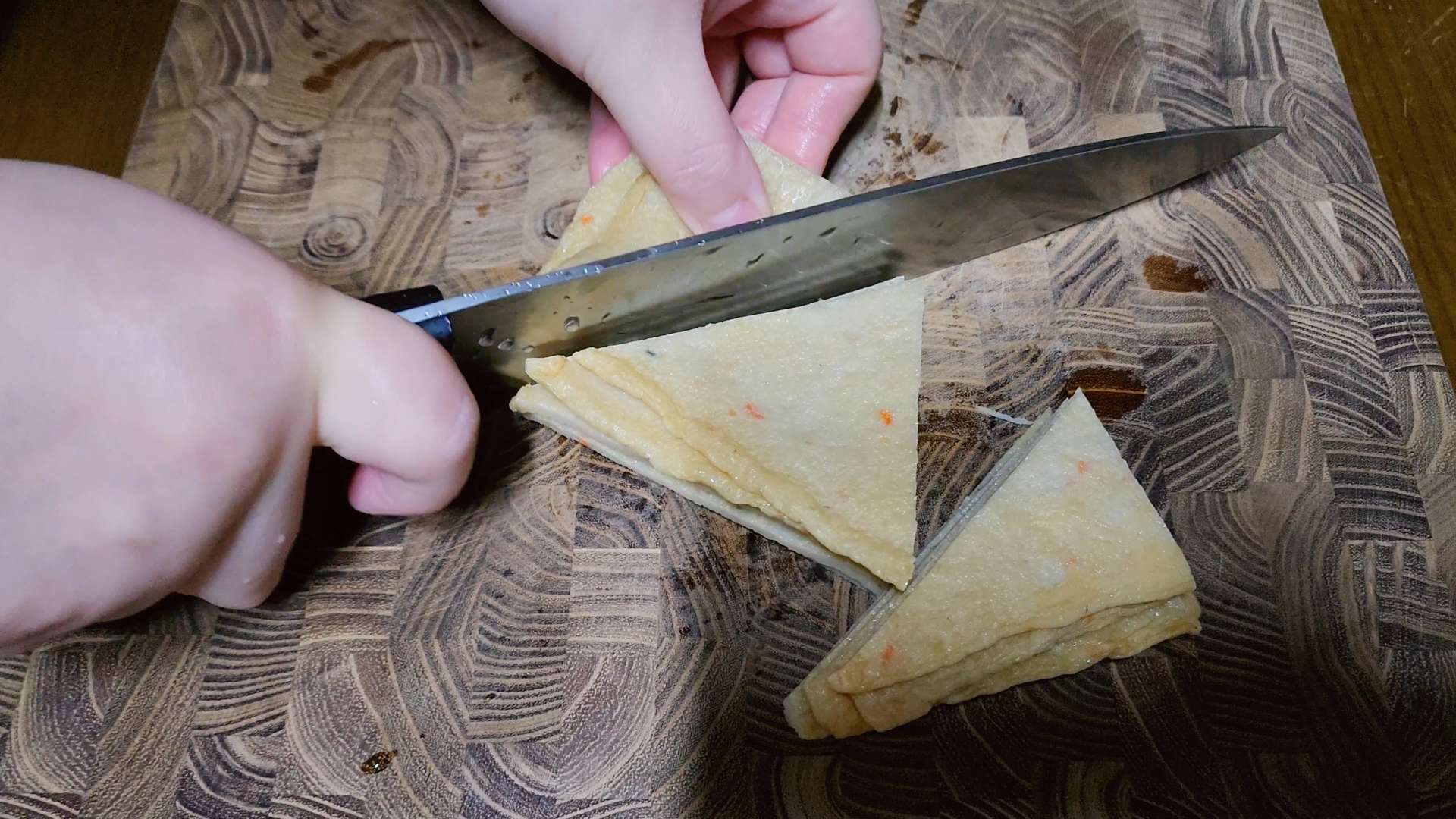 사각어묵 3장은 삼각형으로 잘라줍니다.