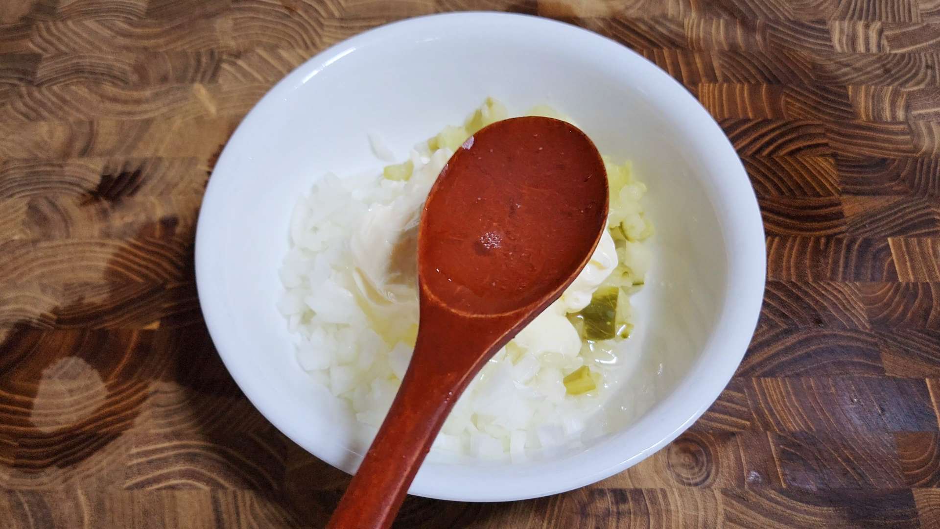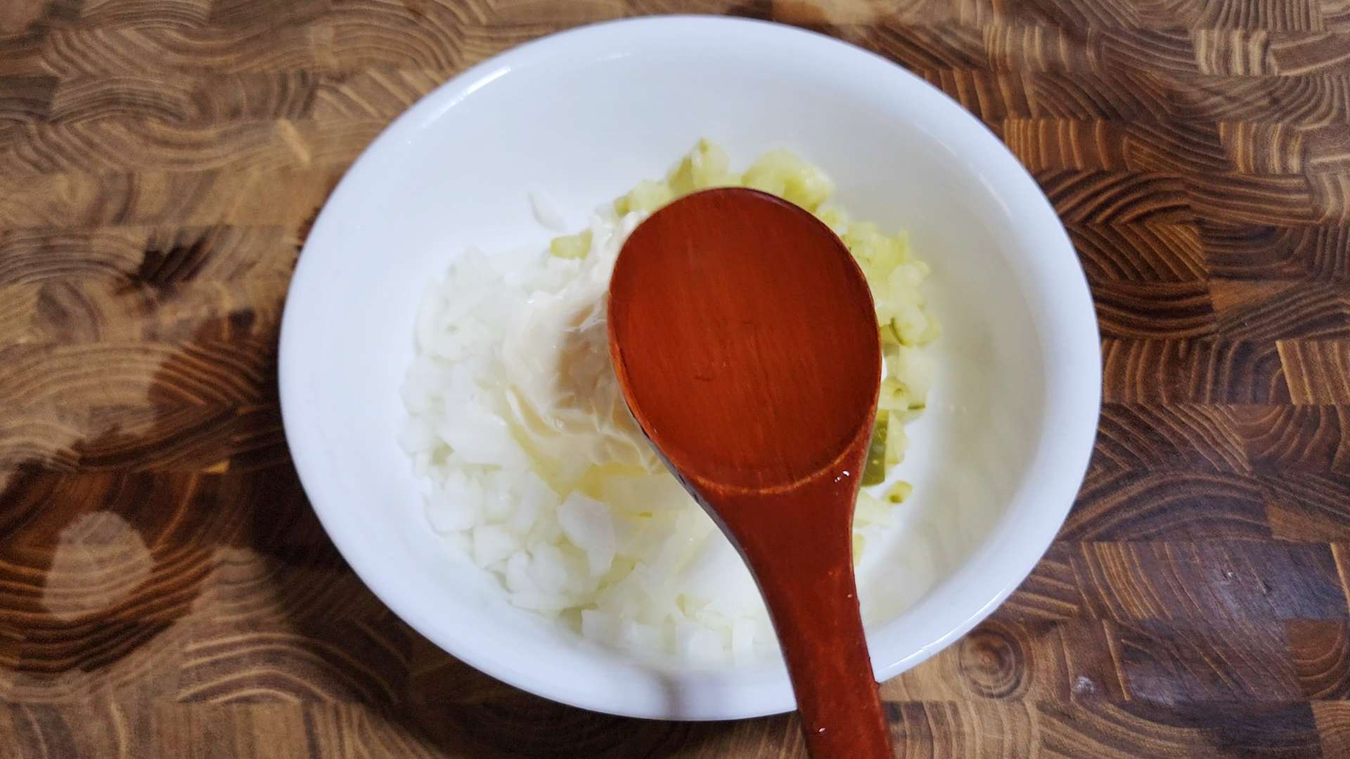 양파, 오이피클, 마요네즈 4T, 올리고당 1T,
