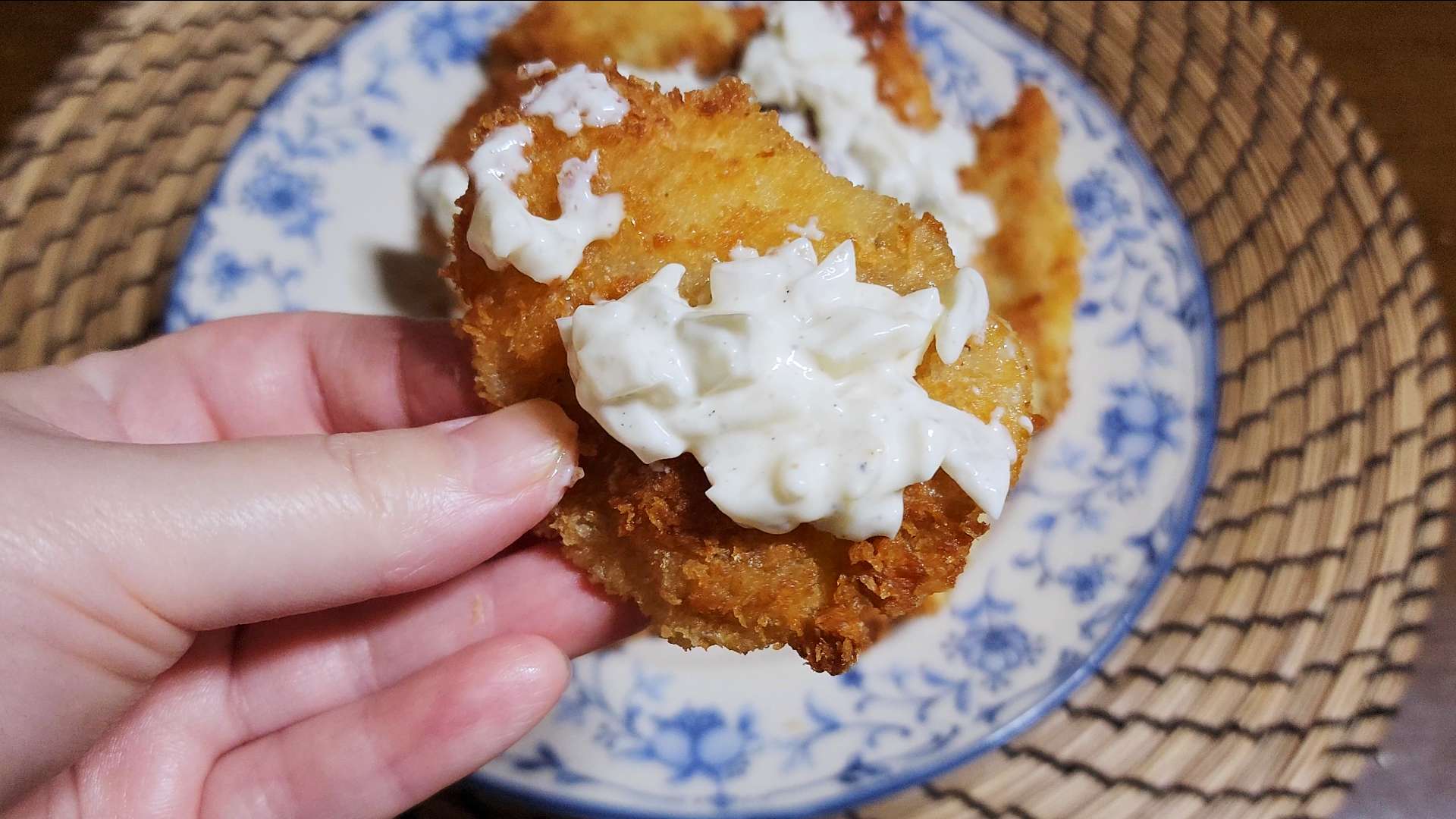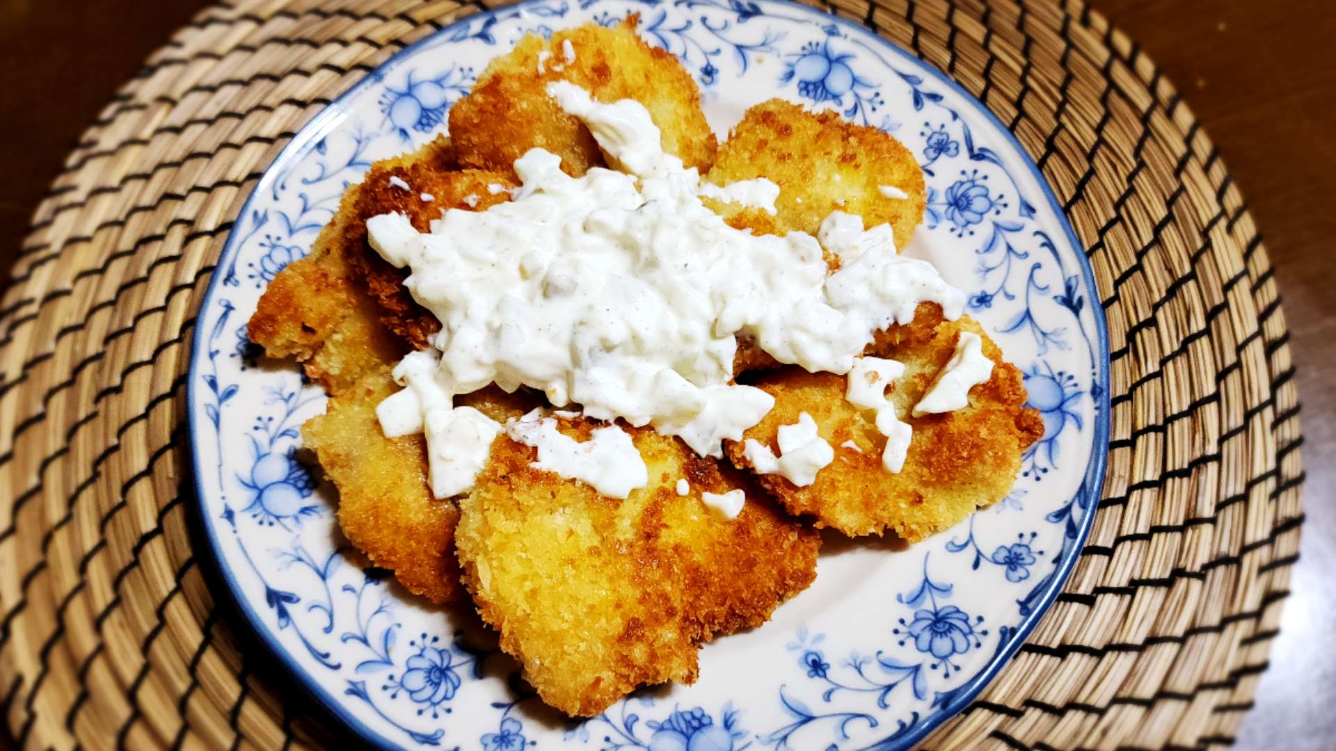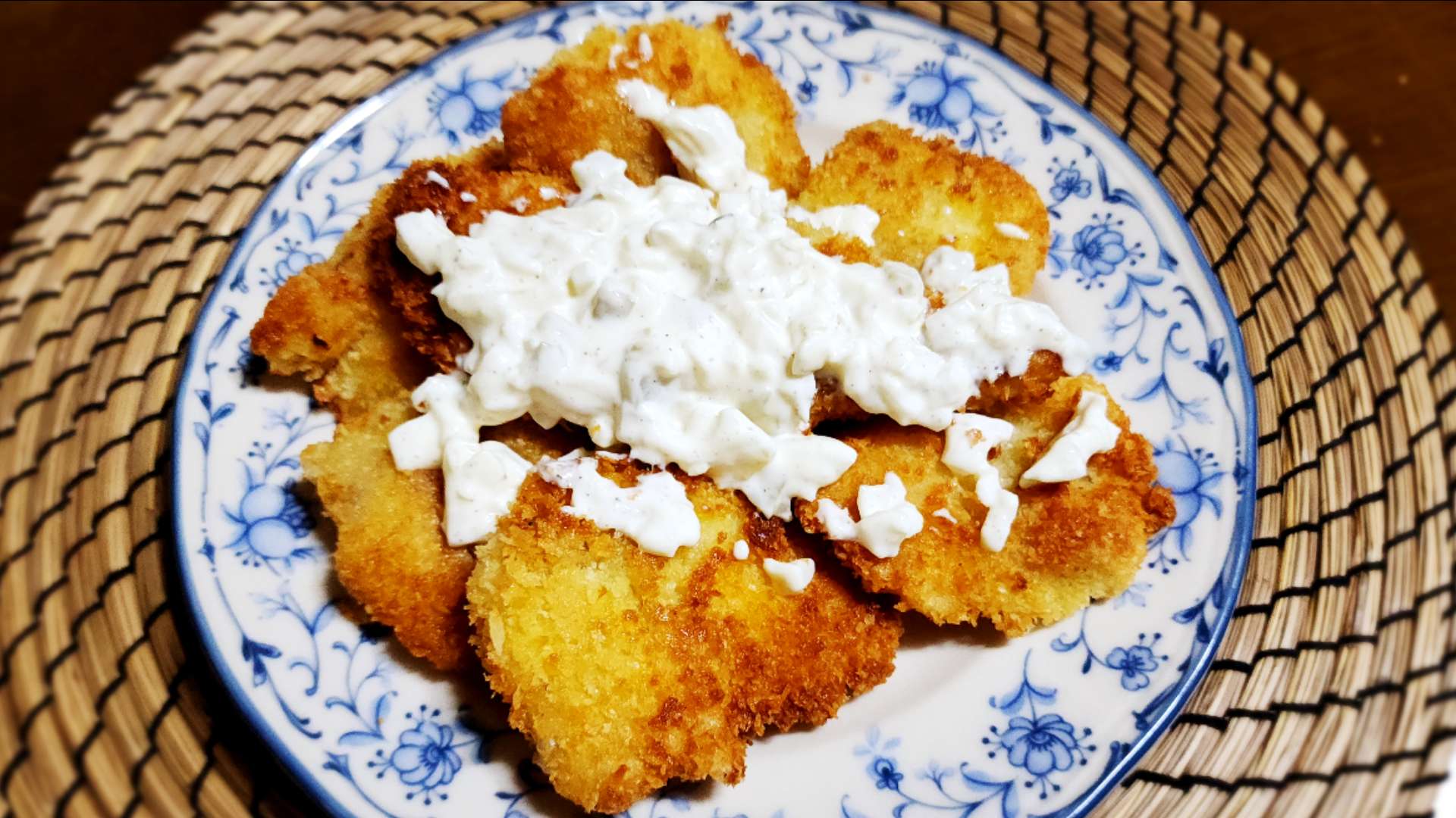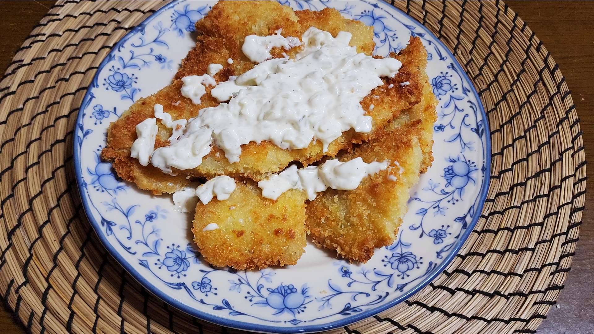 타르타르소스를 듬뿍 올려 먹으면 더 맛있답니다.