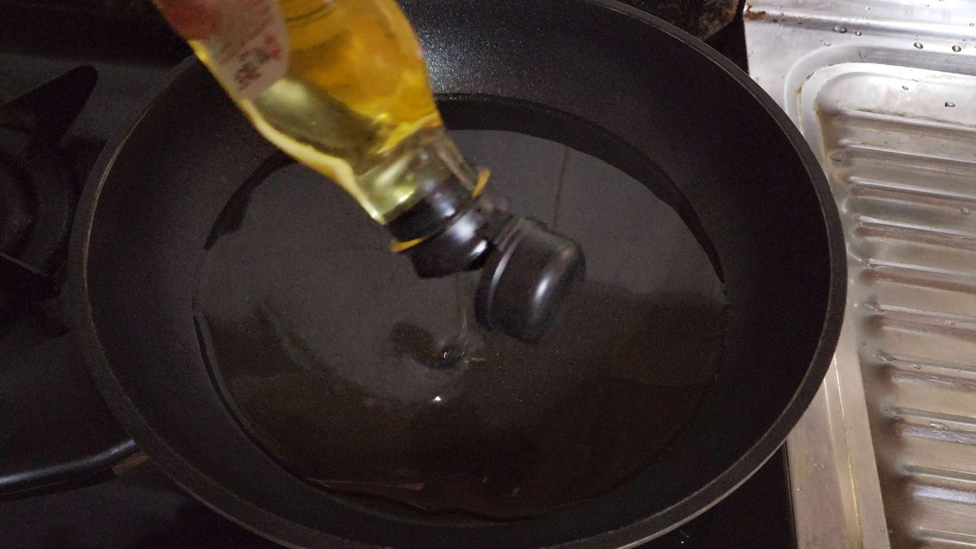 강불로 달군 팬에 식용유를 넉넉히 부어줍니다.