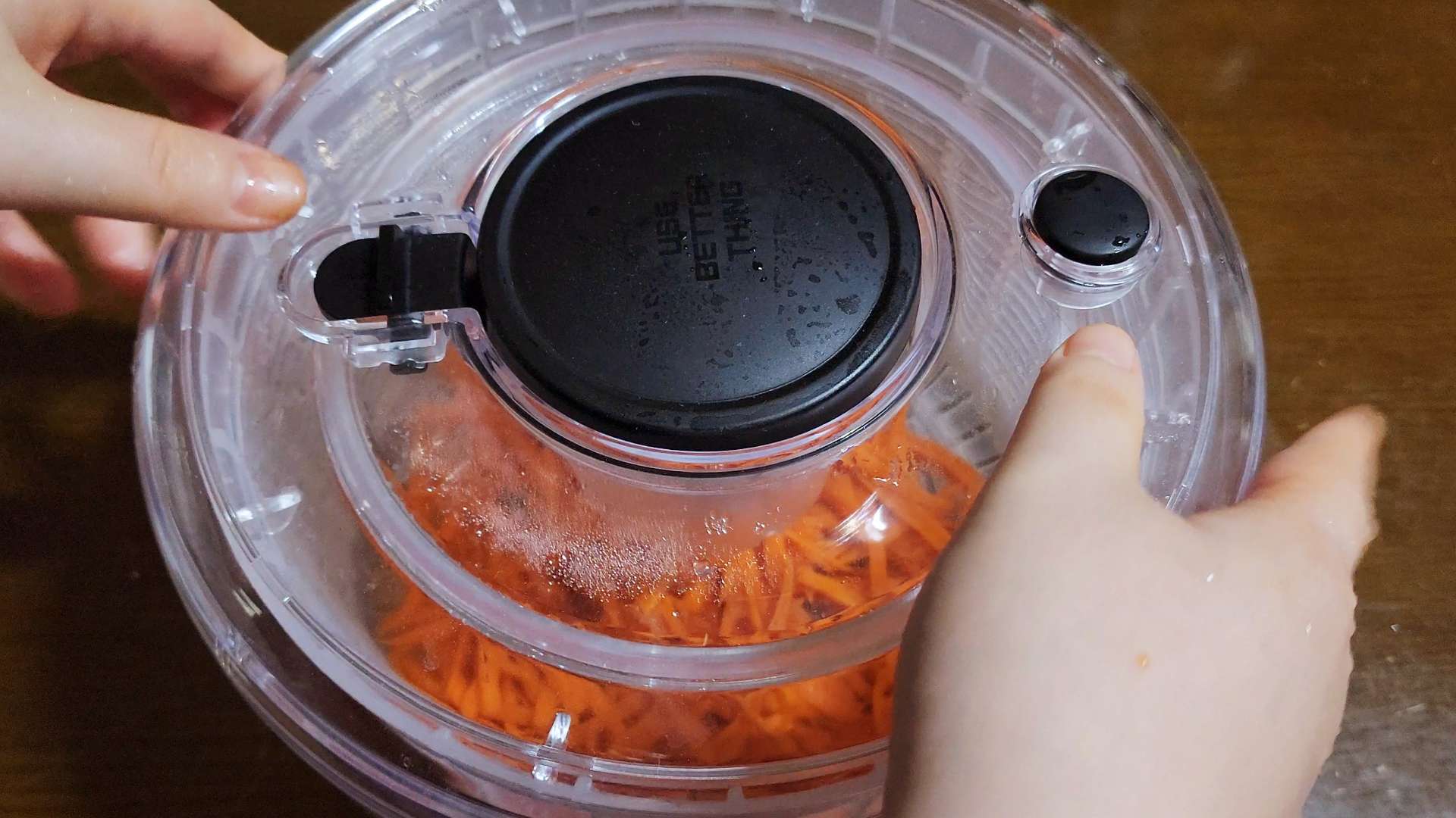 야채탈수기에 넣고 펌핑 해주면 물기를 쉽게 제거할수 있답니다.