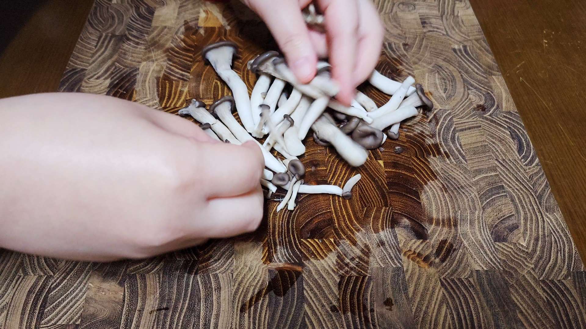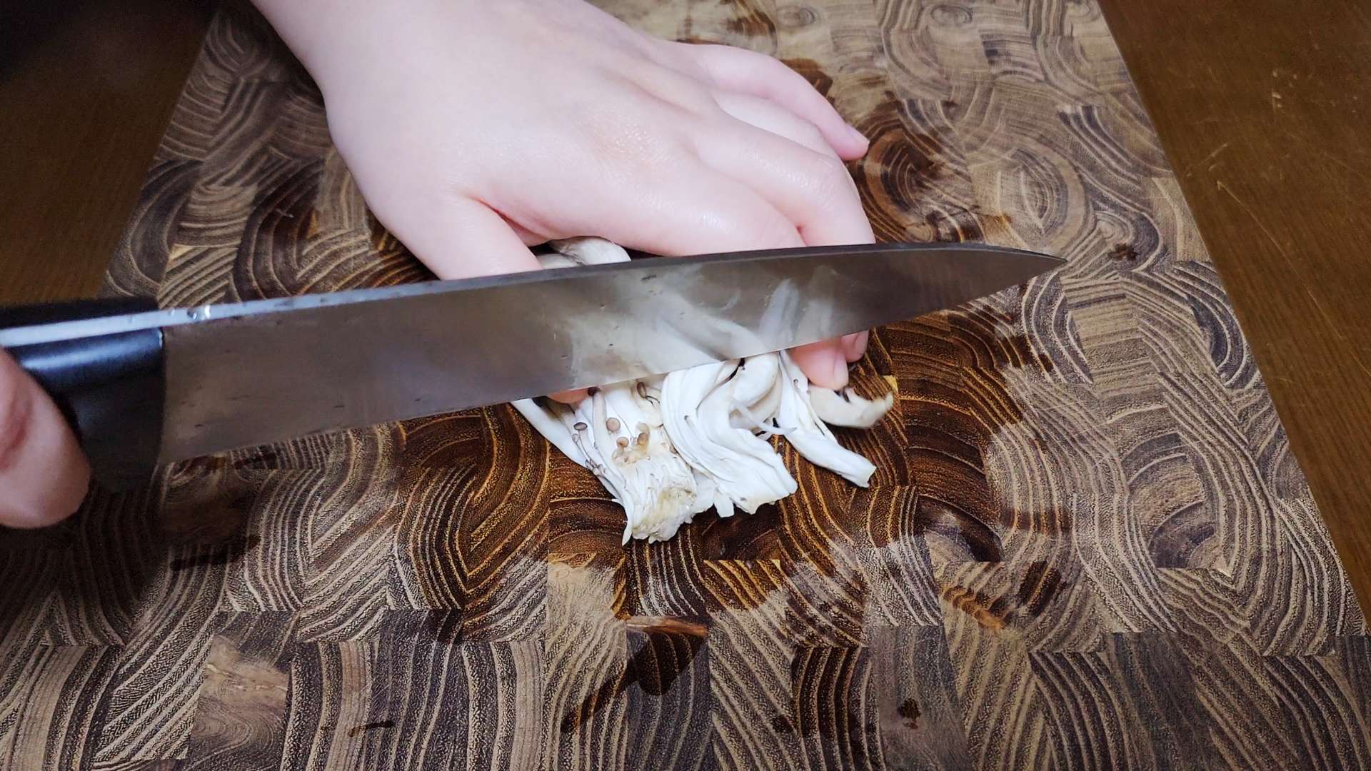 느타리버섯은 밑동을 자르고 찢어줍니다.