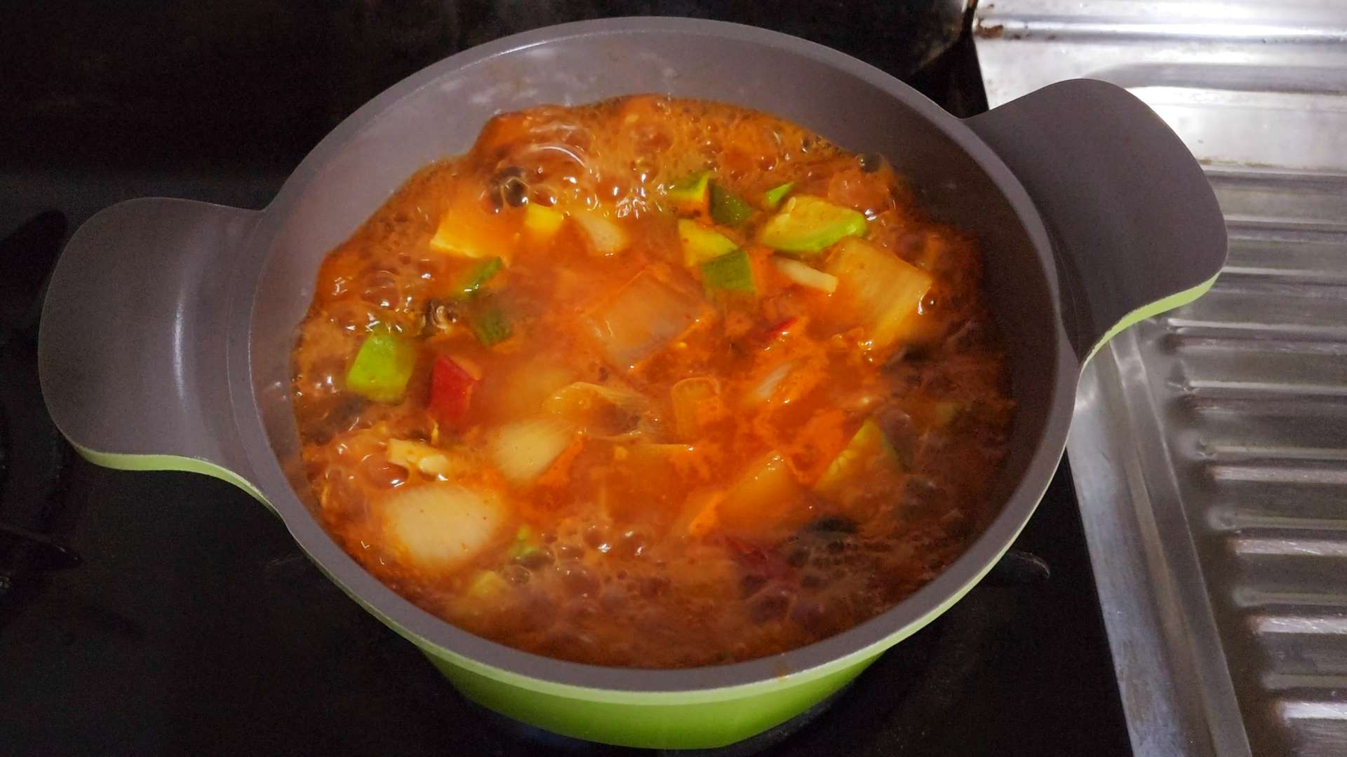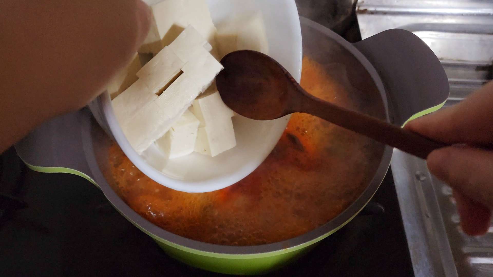 두부를 넣고 뚜껑을 덮고 10분 정도 끓여줍니다.