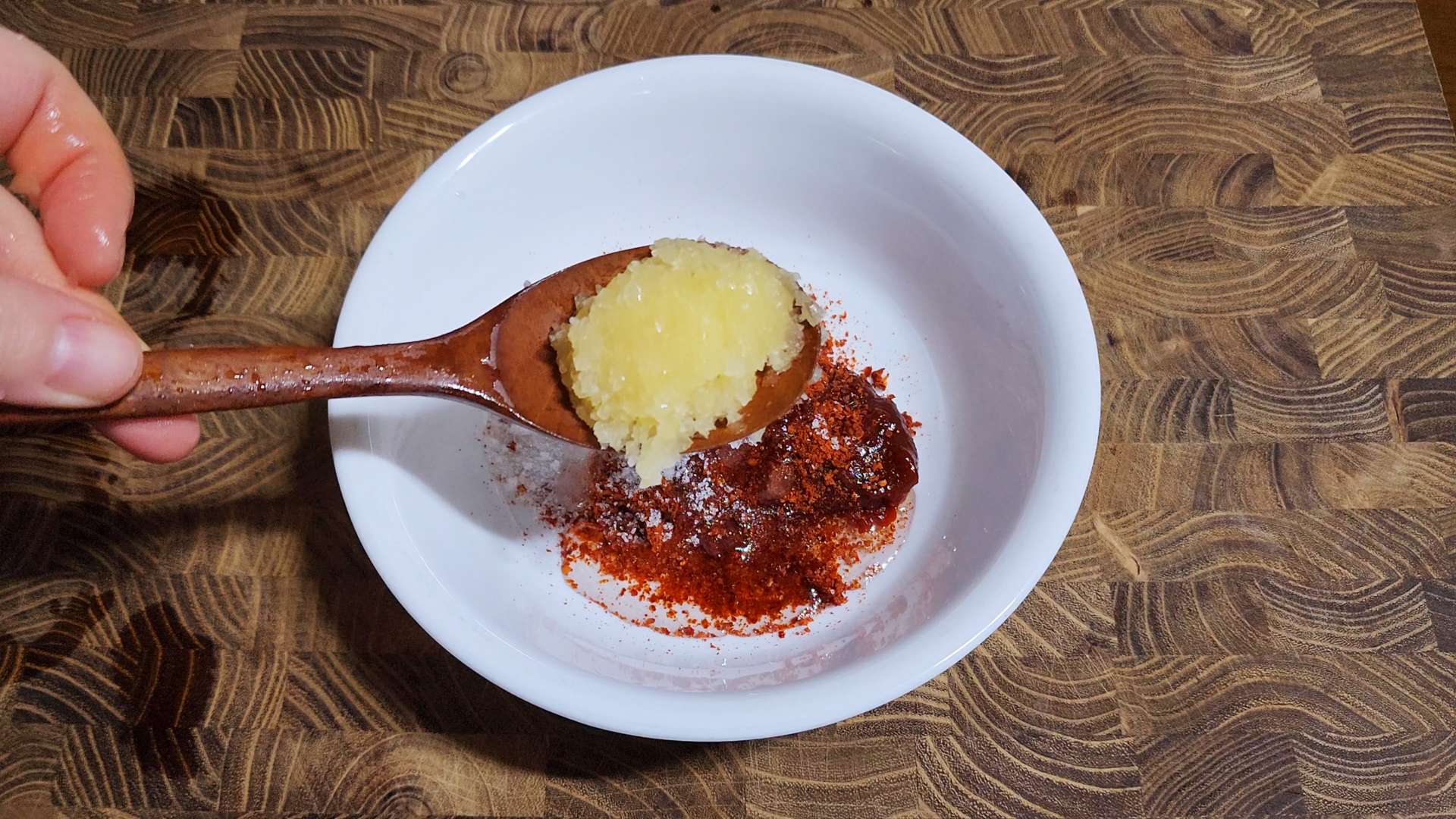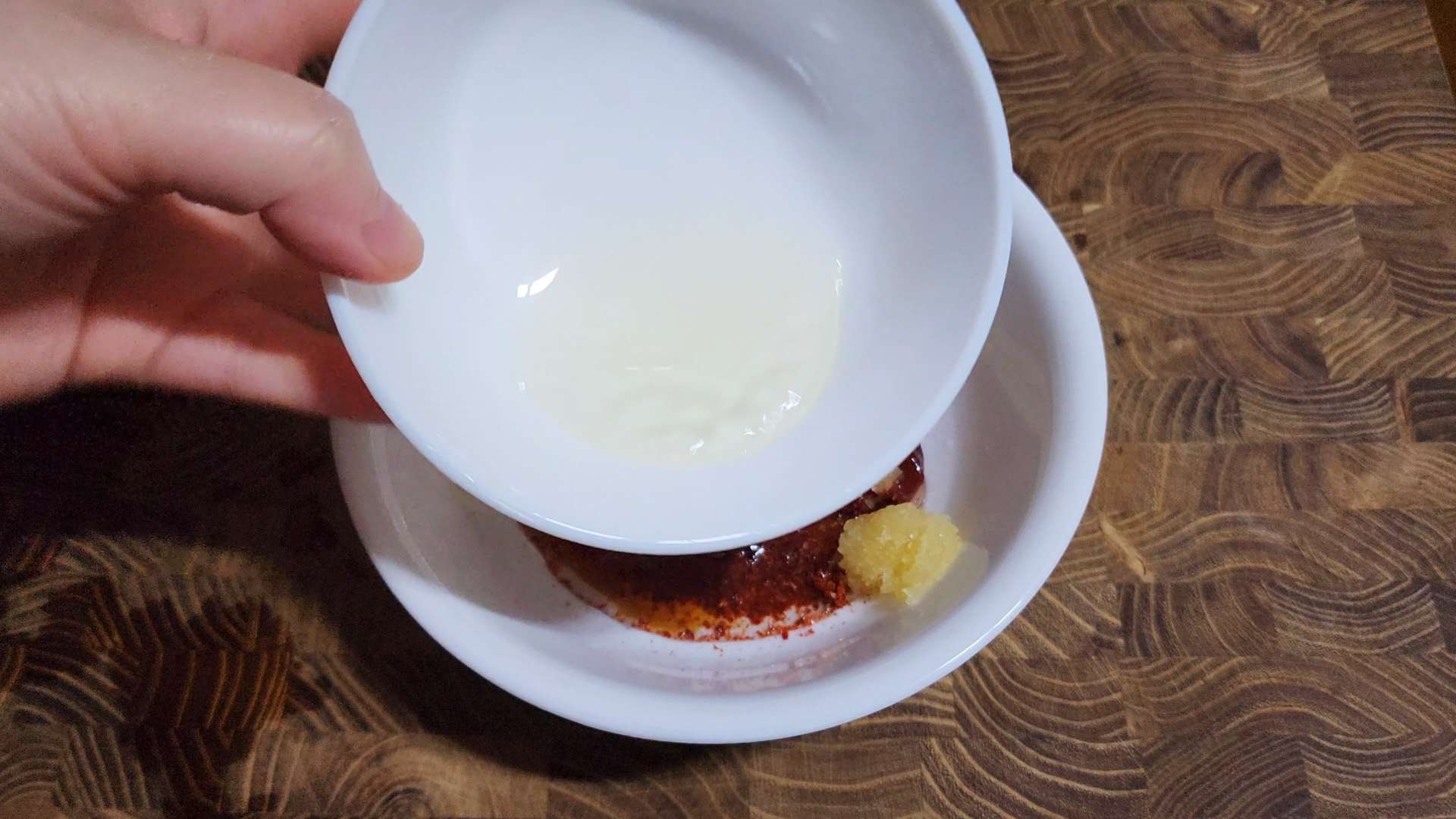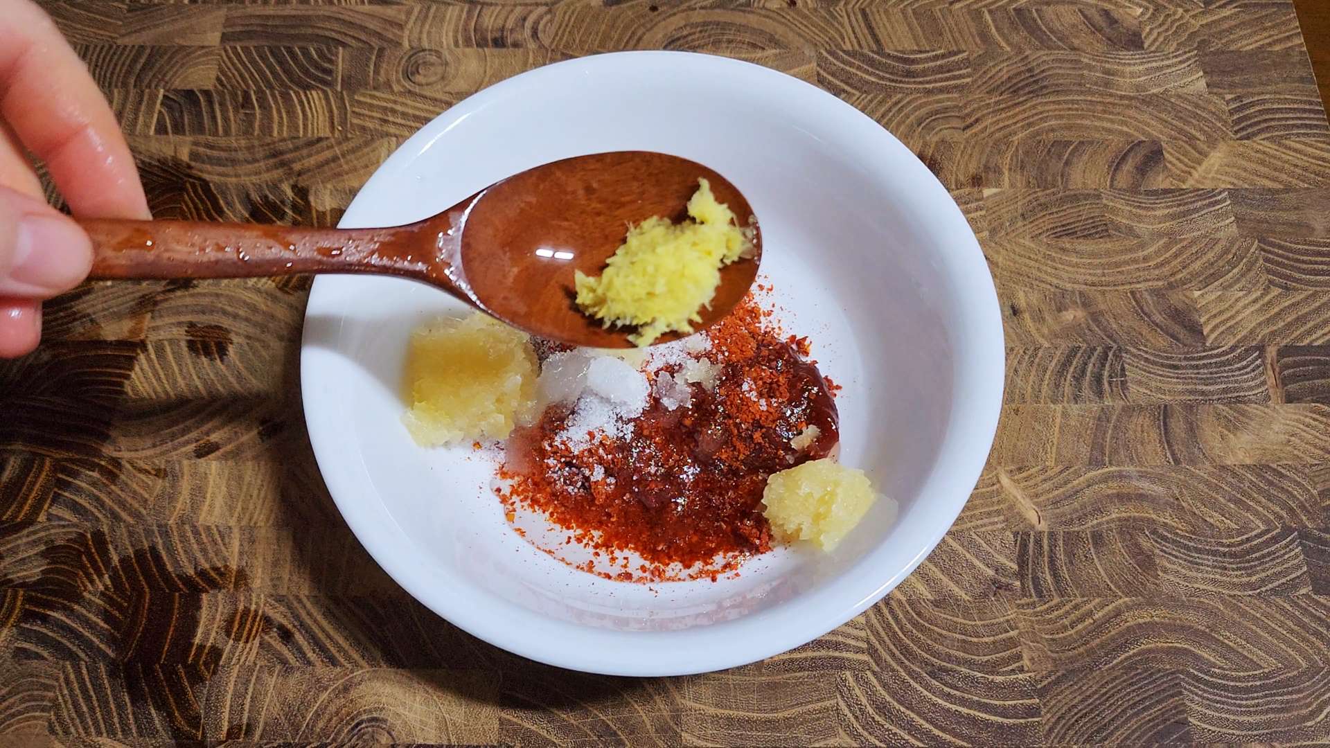 고추장 1T, 고춧가루 3T, 물엿 1T, 설탕 1T, 다진마늘 1T, 다진생강 1/3T, 간장 2T, 맛술 2T를 넣고 섞어줍니다.