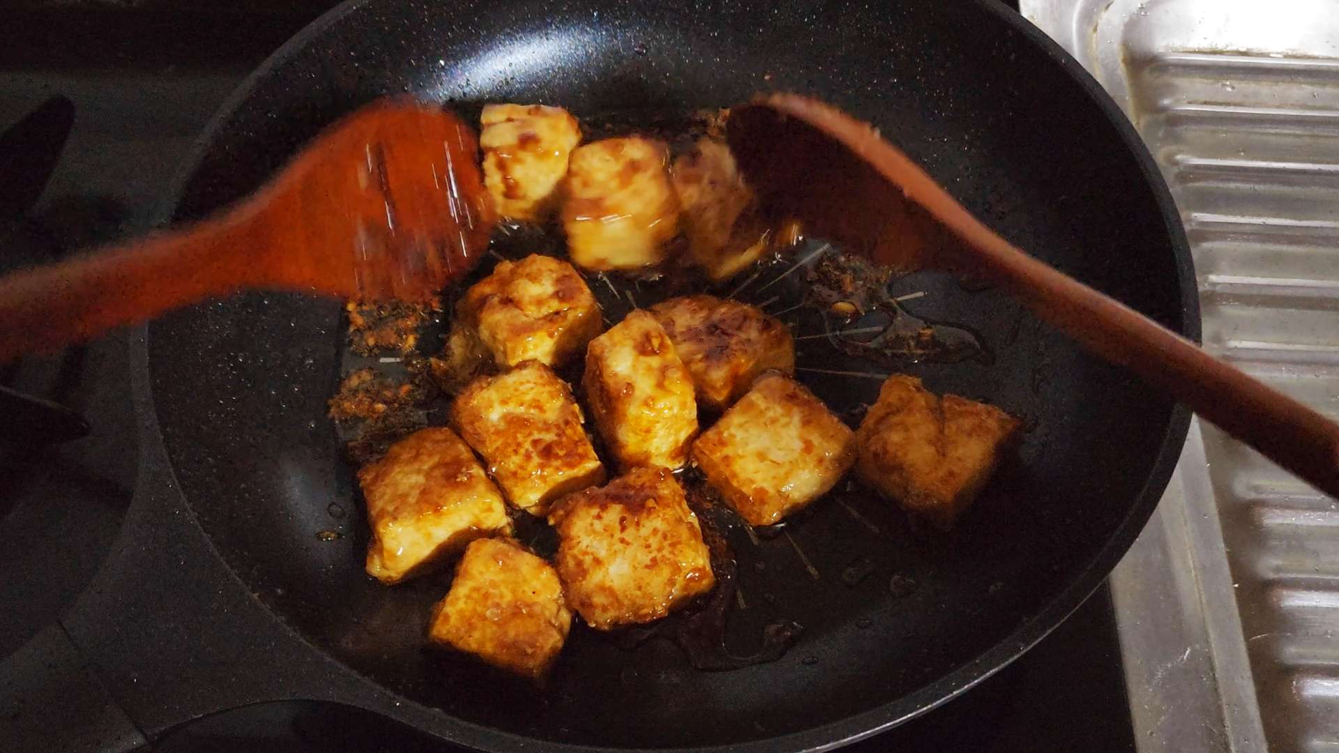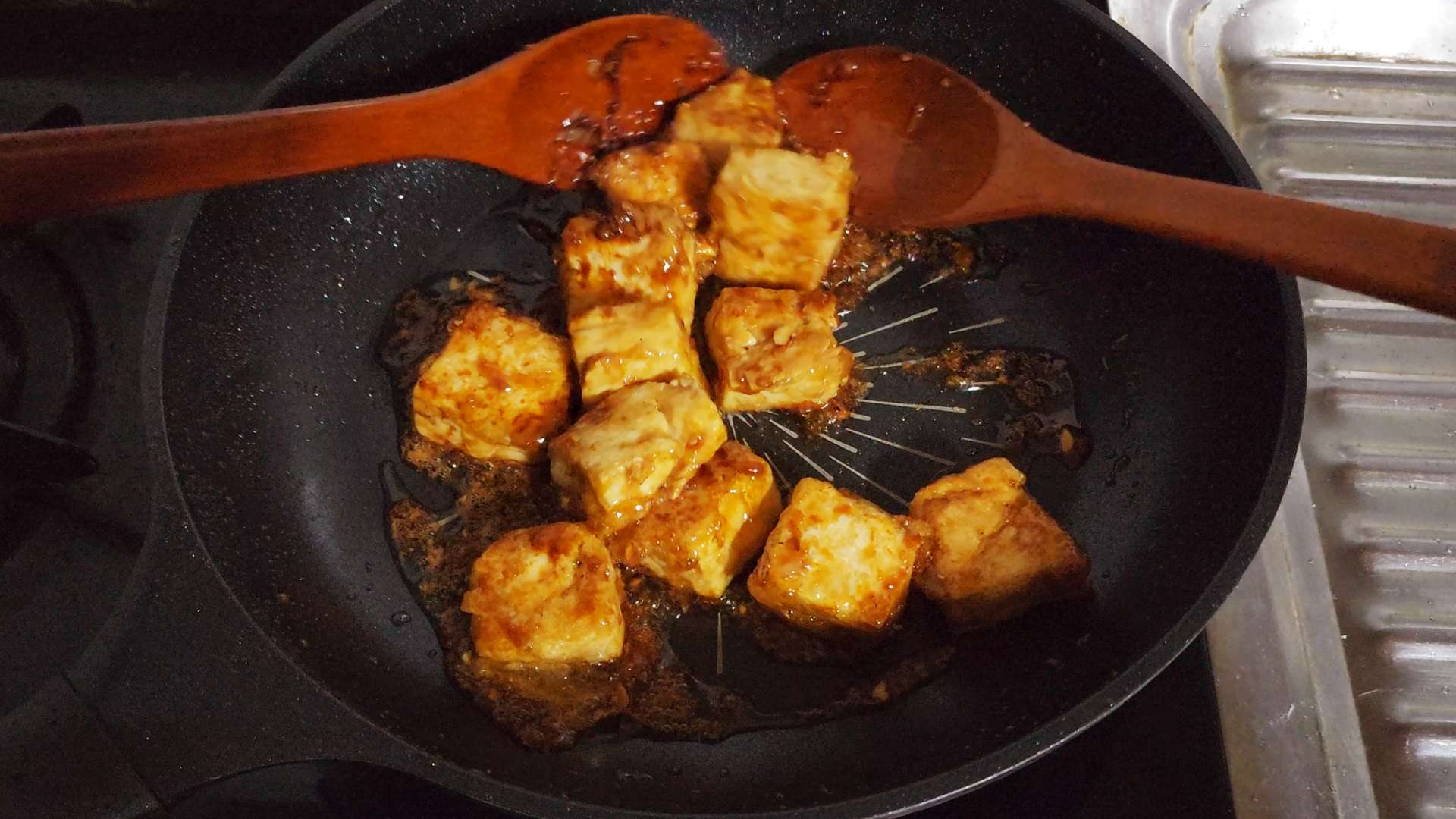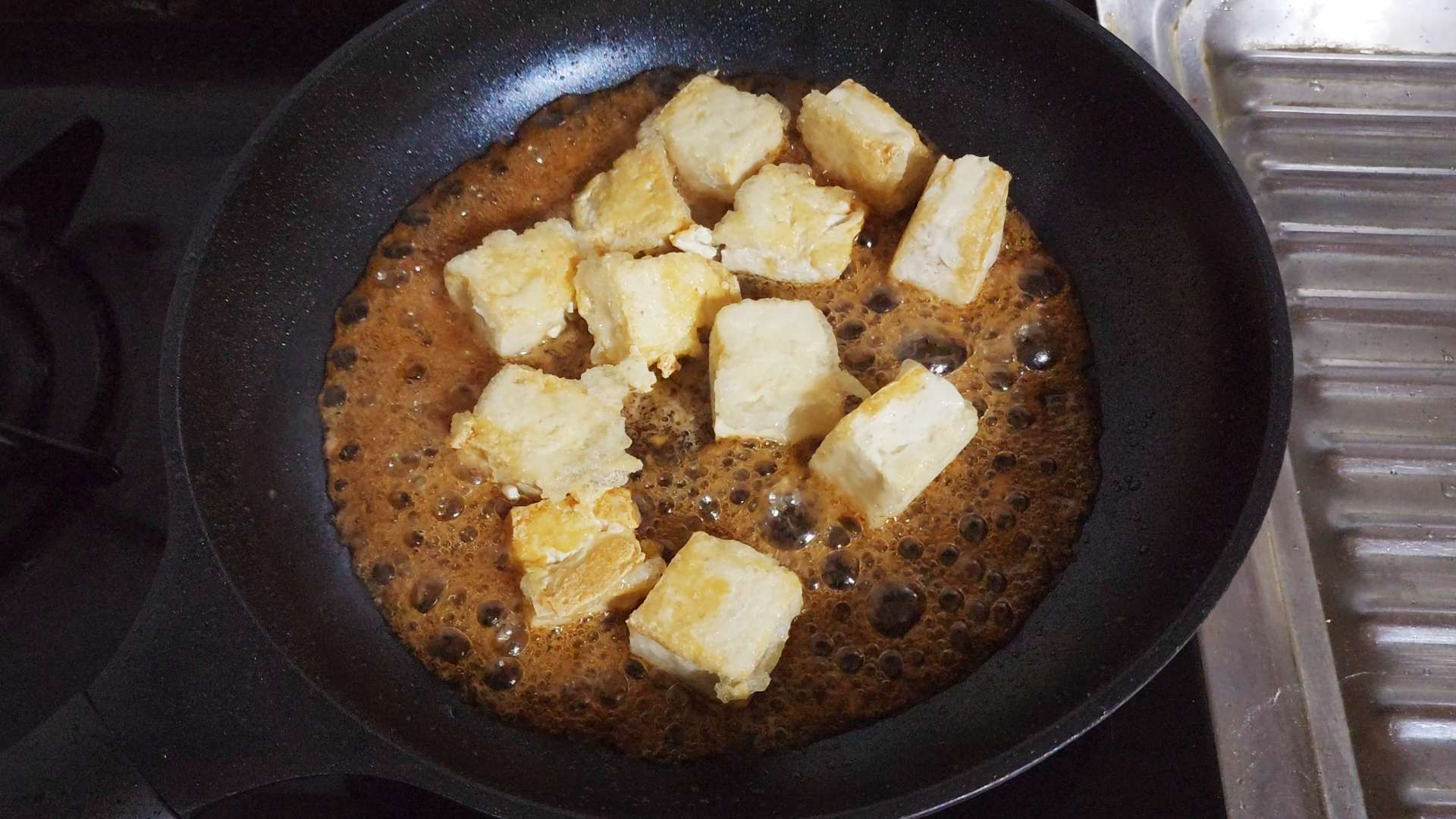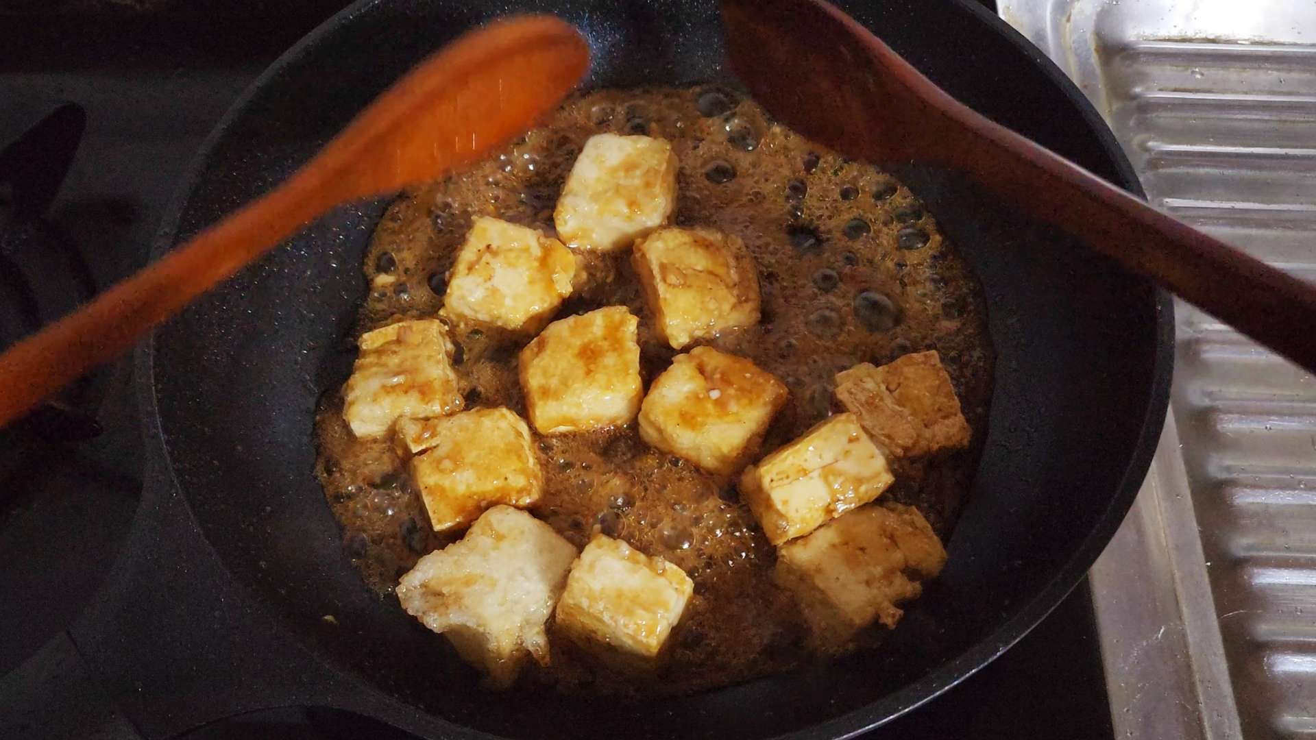 양념이 끓으면 튀긴 두부를 넣고 볶아줍니다.