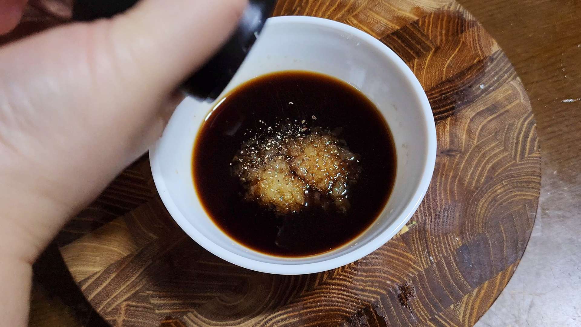 진간장 3T, 참치액 2T, 미림 2T, 물엿 3T, 설탕 2T, 다진마늘 1T, 후추를 섞어줍니다.